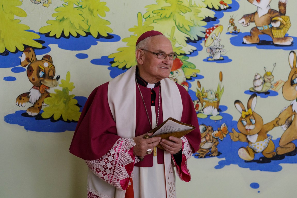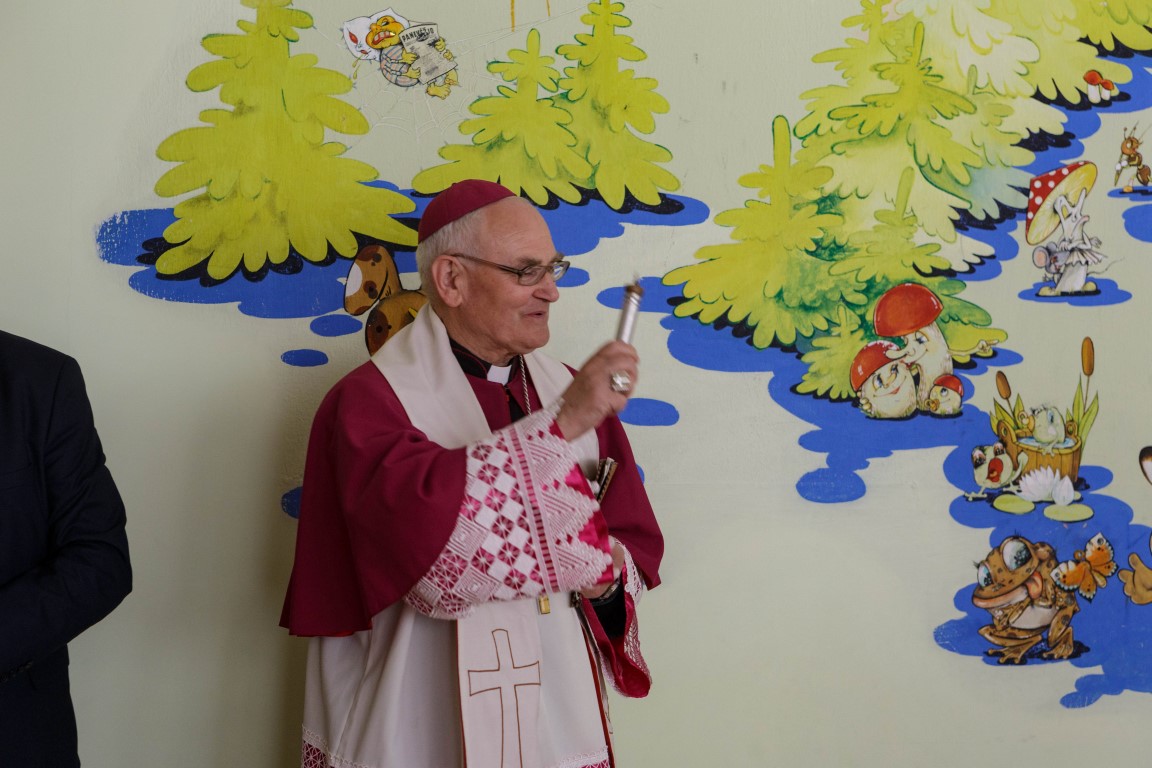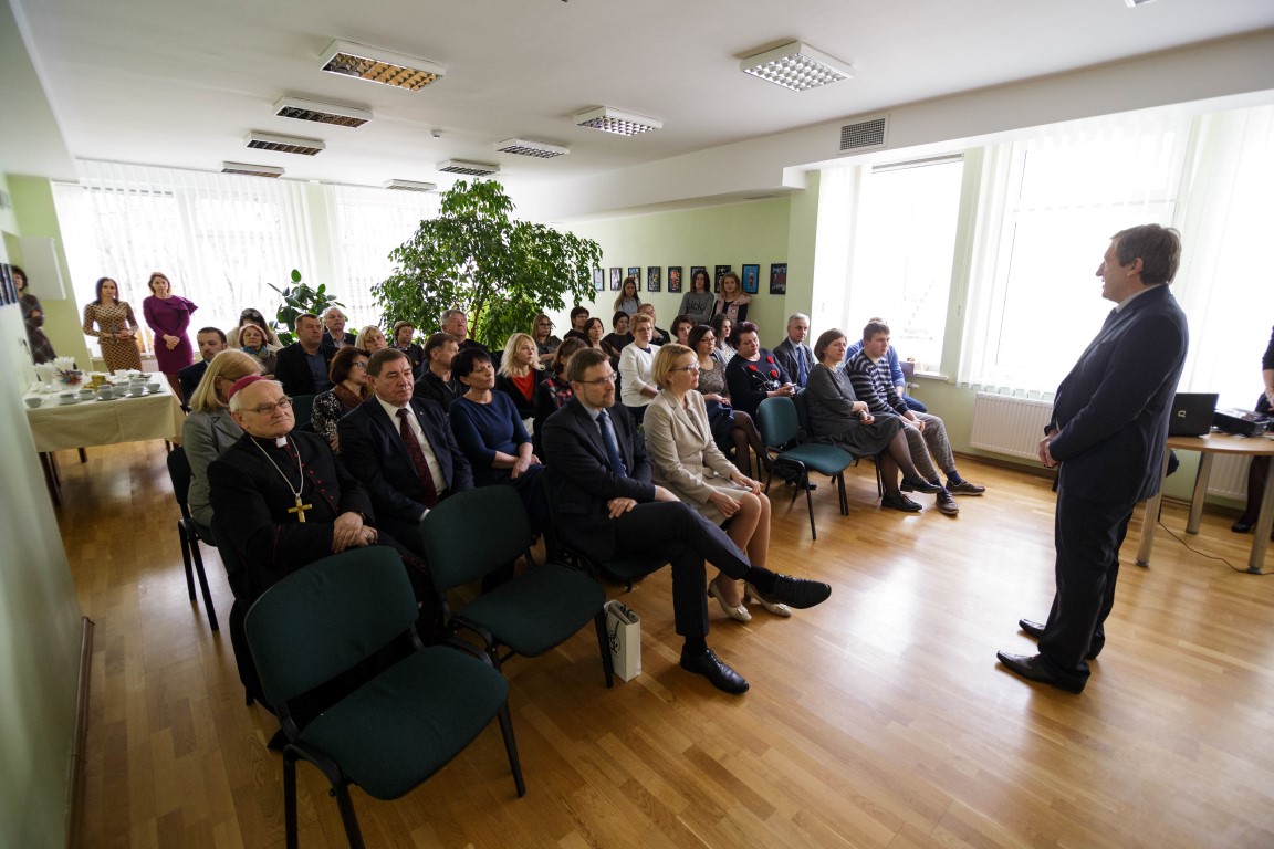 Vyskupas emeritas Jonas Kauneckas, atvykęs pašventinti patalpų ir žmonių, pasakojo neseniai klausęsis laidos apie autistus ir jų sugebėjimus.