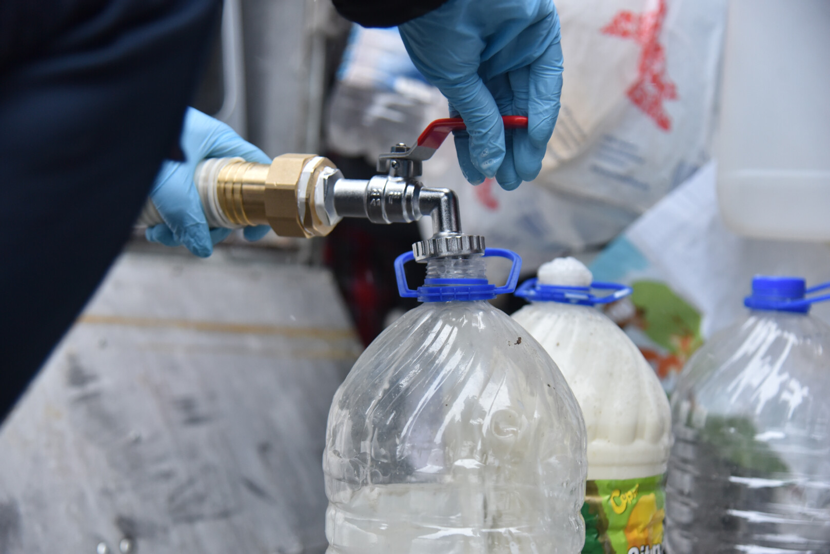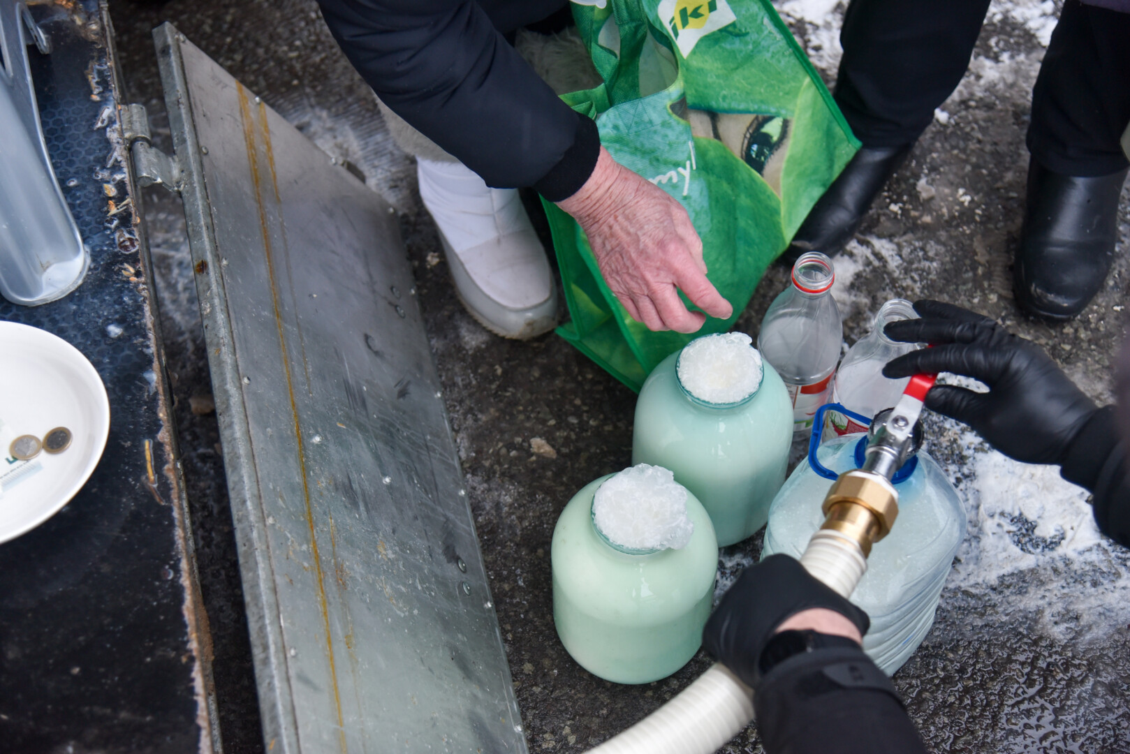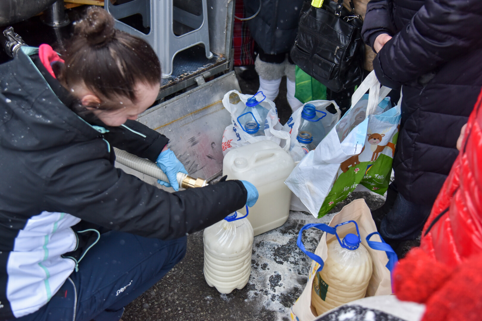 Panevėžiečiai naminio pieno atėjo atsinešę plastikinius butelius, net ir 5 litrų talpos, kai kas pieno laukė ir su 5 litrų kibirėliais.