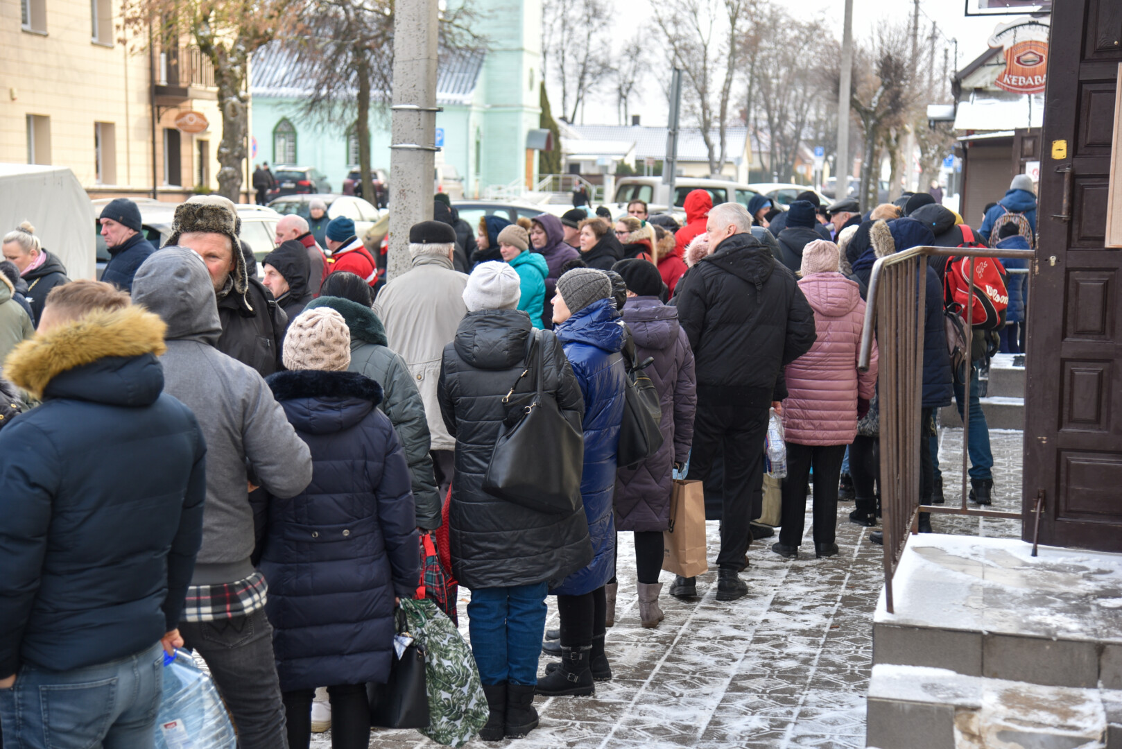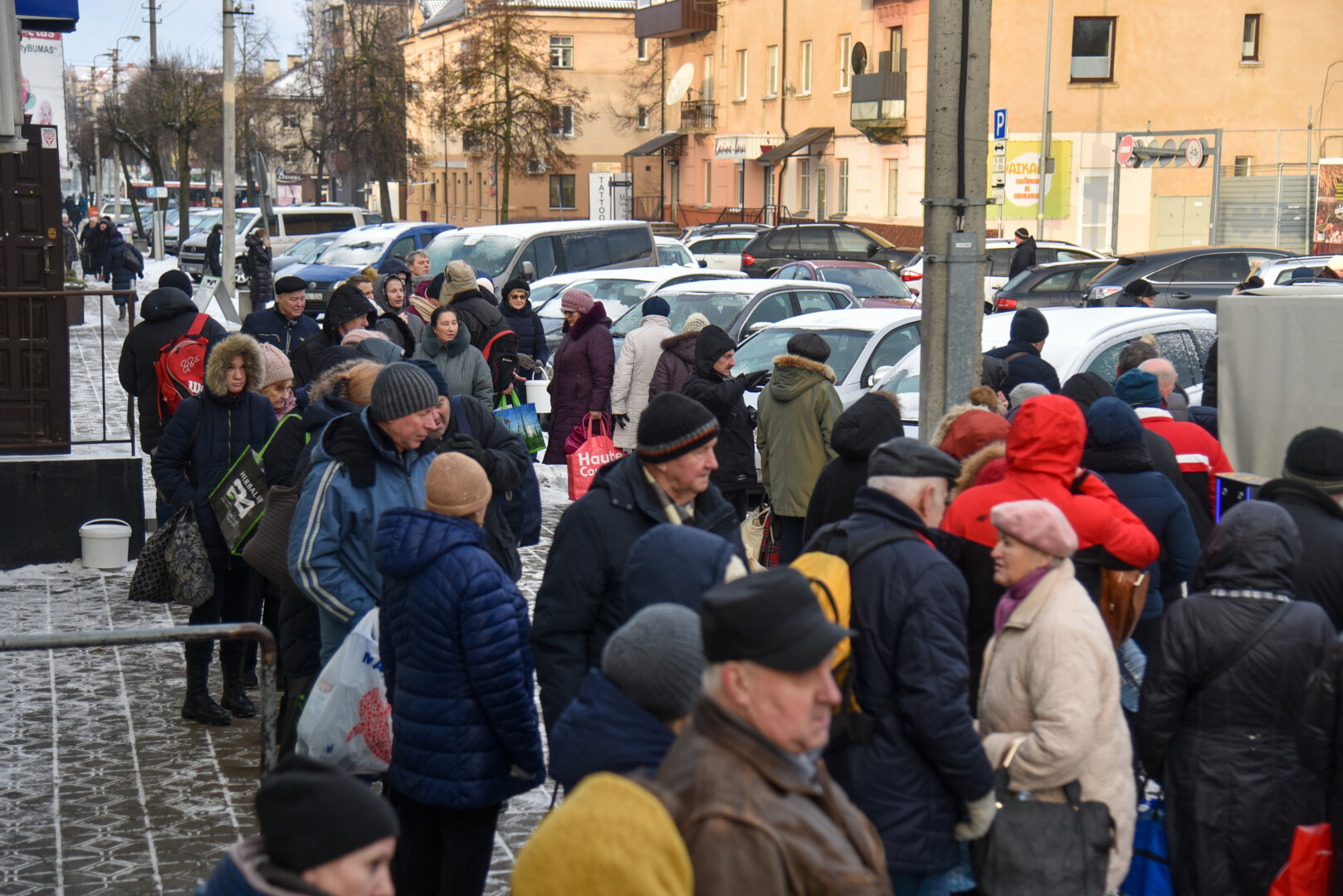 Ilga eilė panevėžiečių penktadienio rytą nusidriekė centrinės turgavietės prieigose prie ūkininkės Gabijos Kiaunienės nemokamai dalijamo pieno.