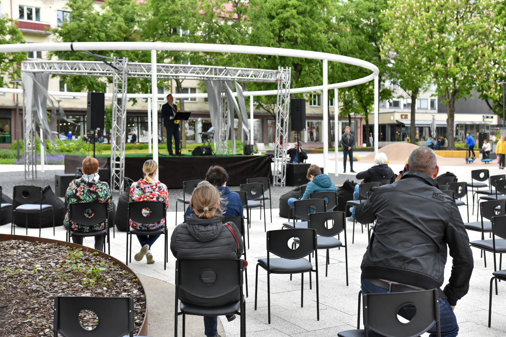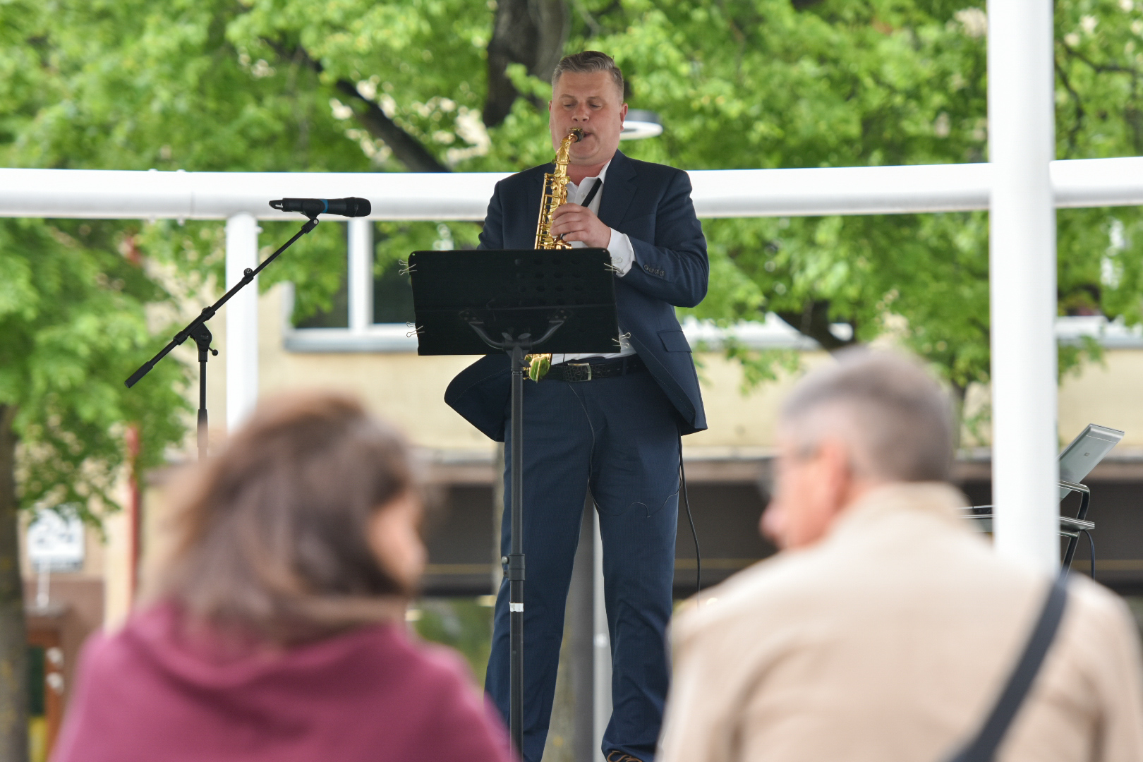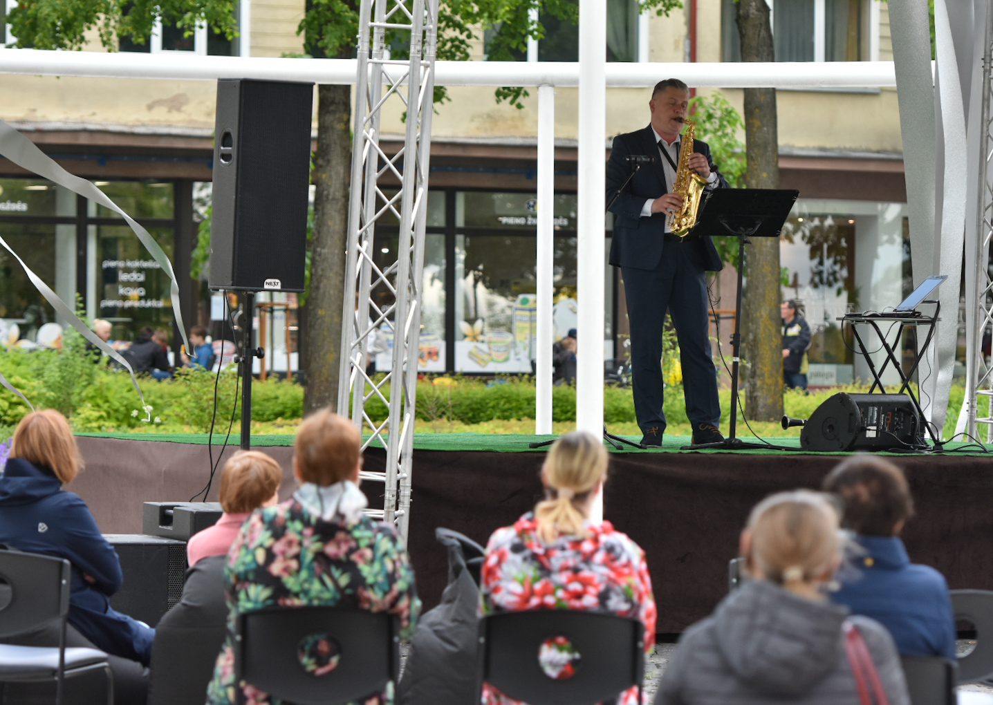 Birželio 3-iąją „Susitikime penktadienį“ pradėjo prie „Galerijos XX“ 12–13 val. pietūs su muzika – panevėžiečiams muzikavo saksofonininkas Renatas Bedalis.