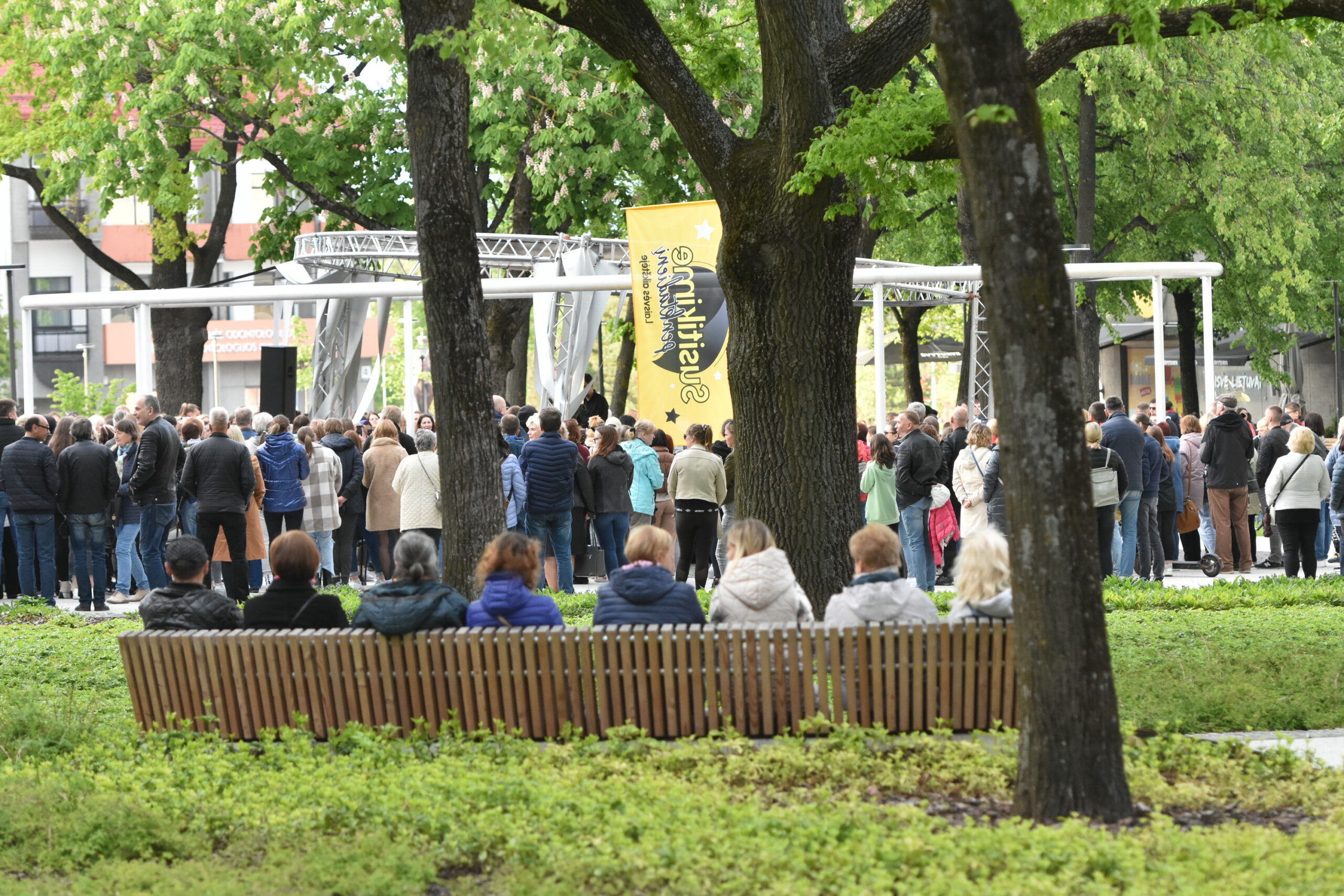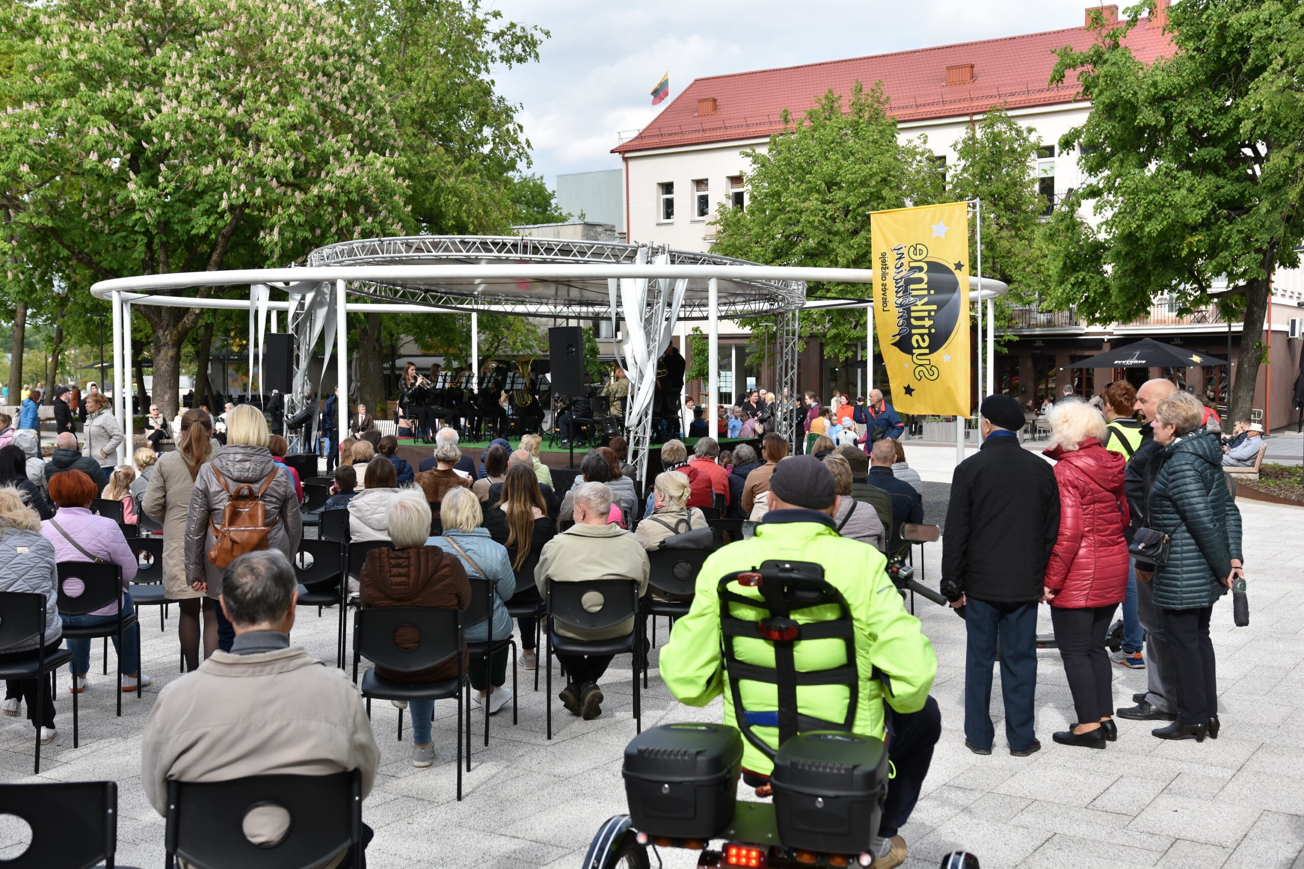 Vakare aikštėje koncertavo Vaikų ir jaunimo pučiamųjų orkestras, K. Paltaroko gimnazijos teatro studijos aktoriai pakvietė į spektaklį „Skruzdėlė atsiskyrėlė“.