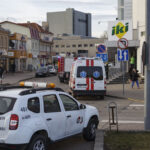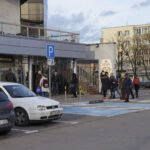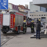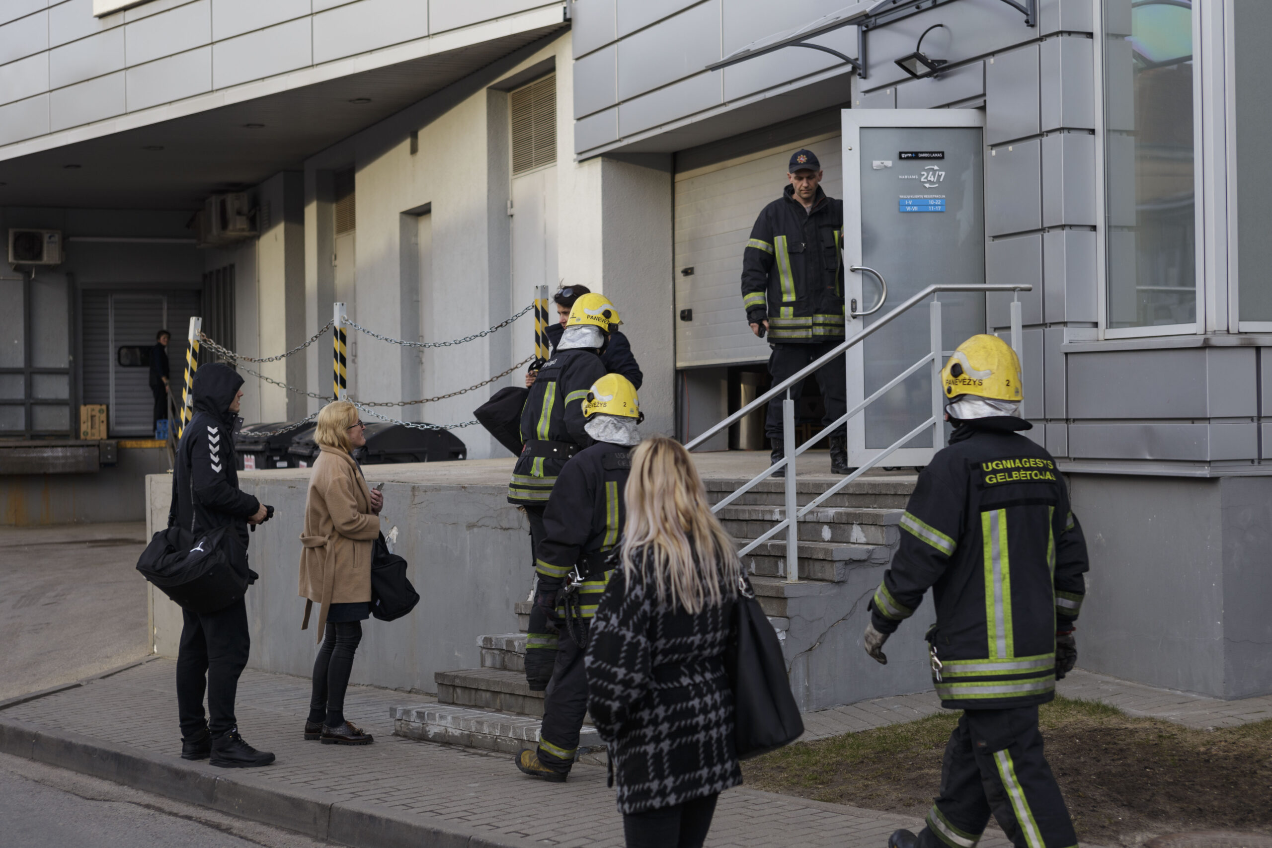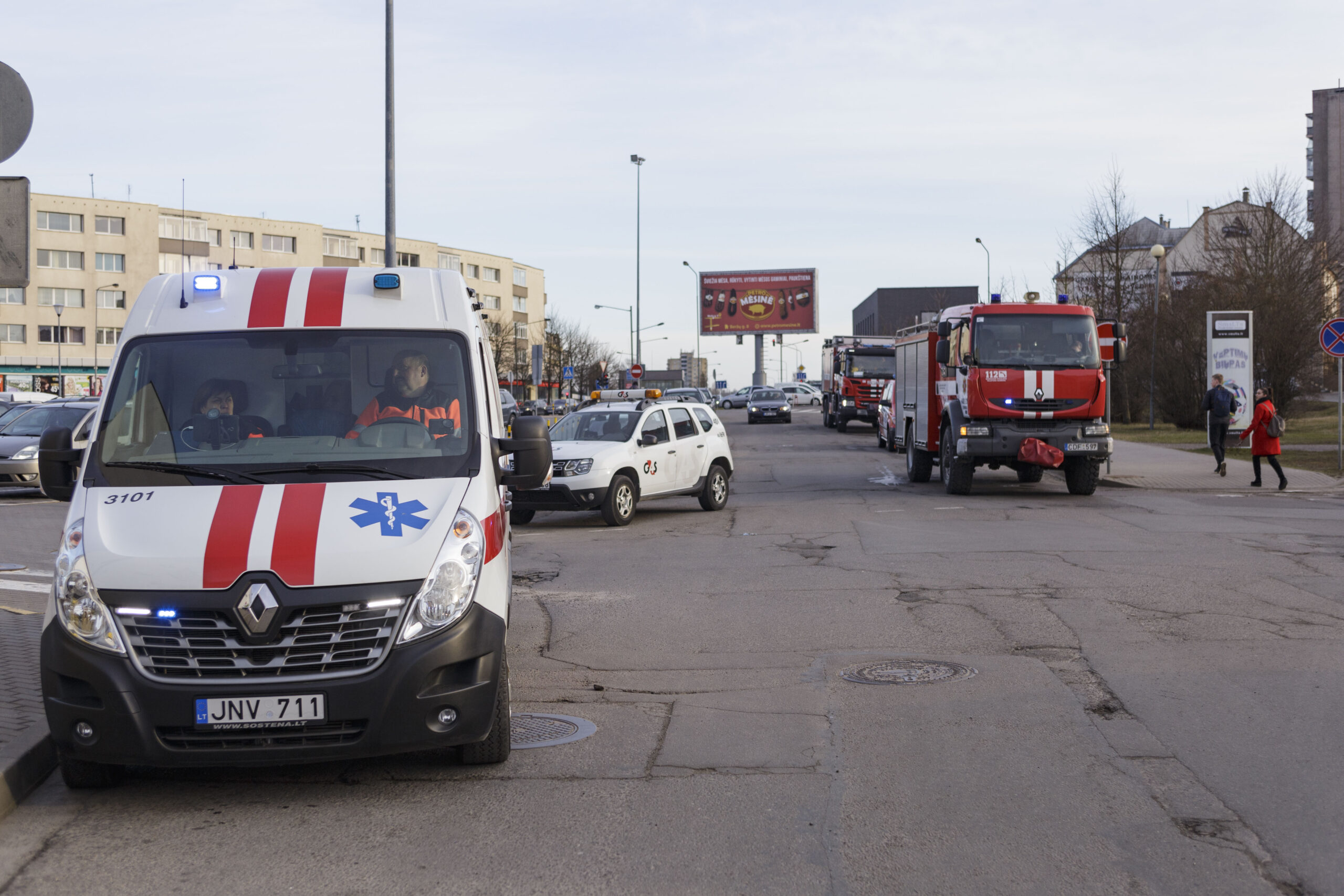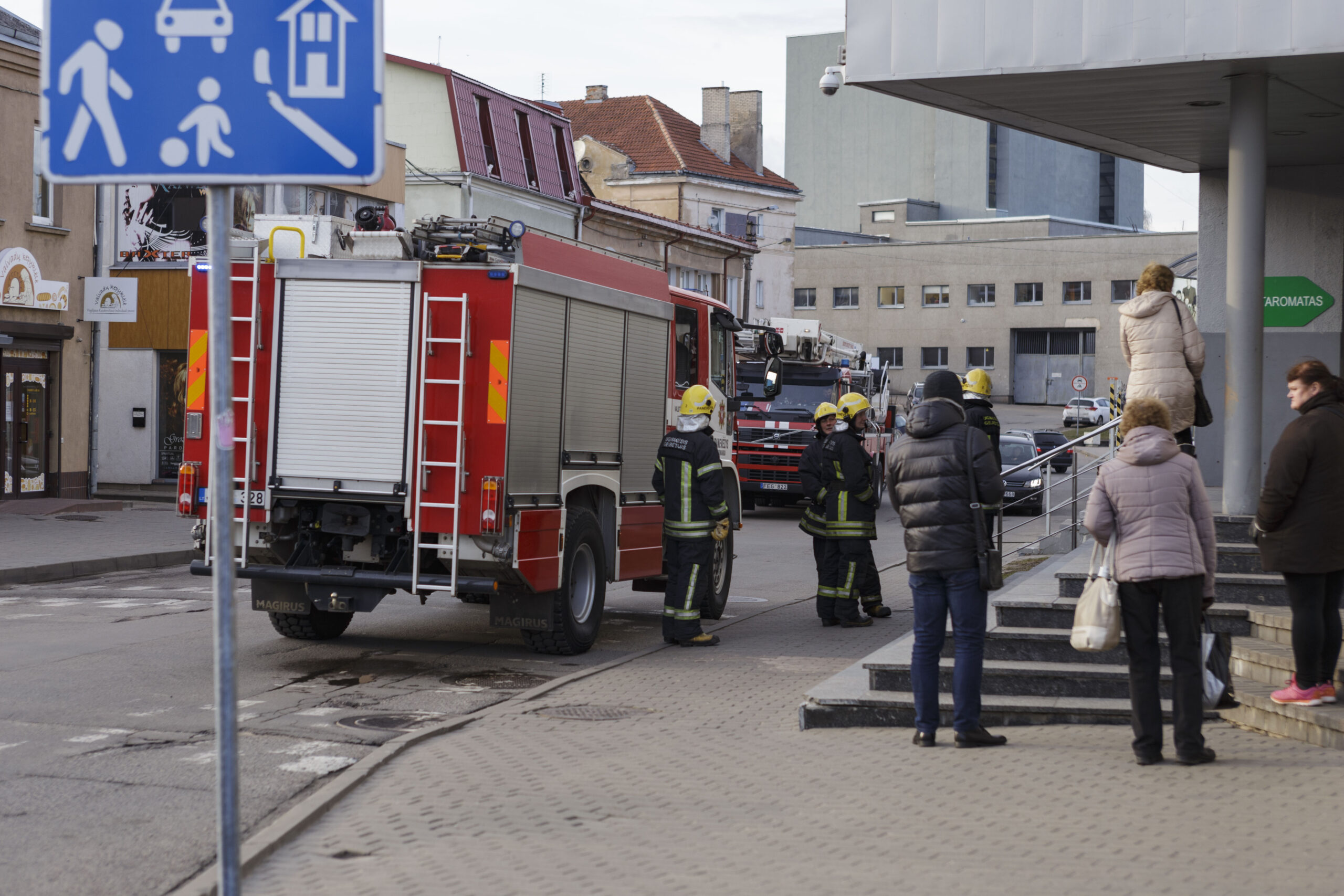 Pirkėjai į parduotuvę neįleidžiami, iš prekybos centro evakuojami žmonės.