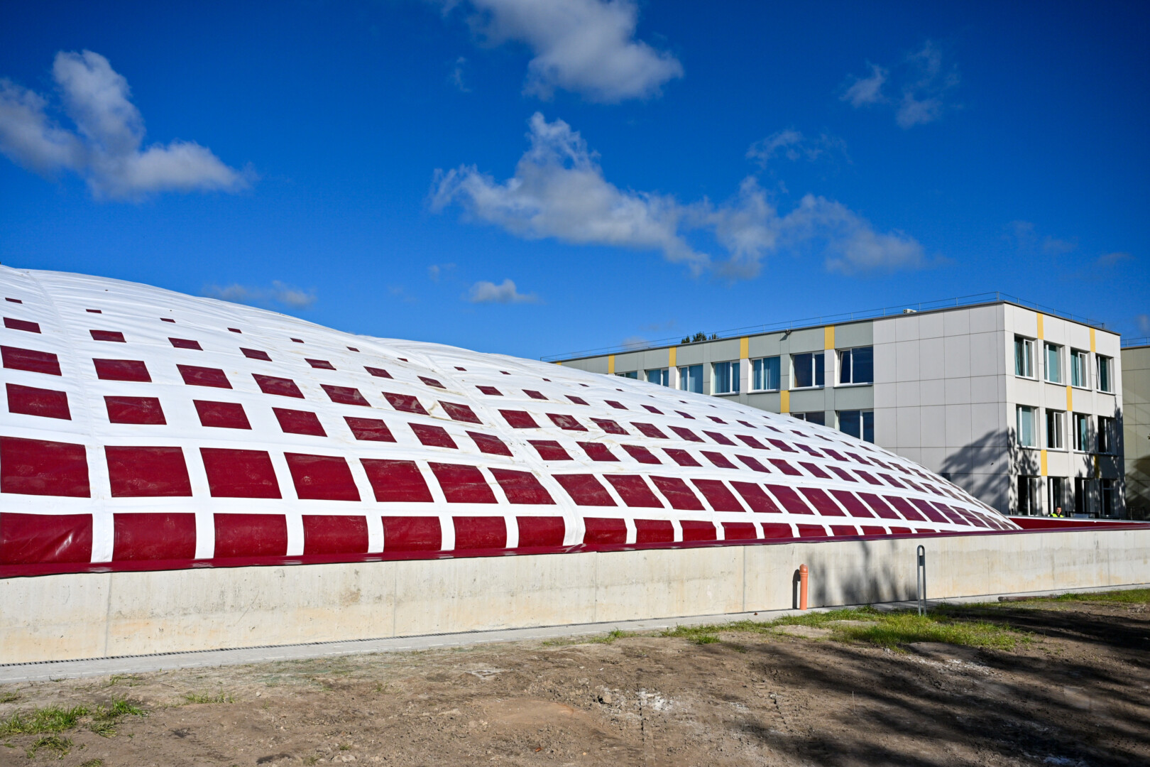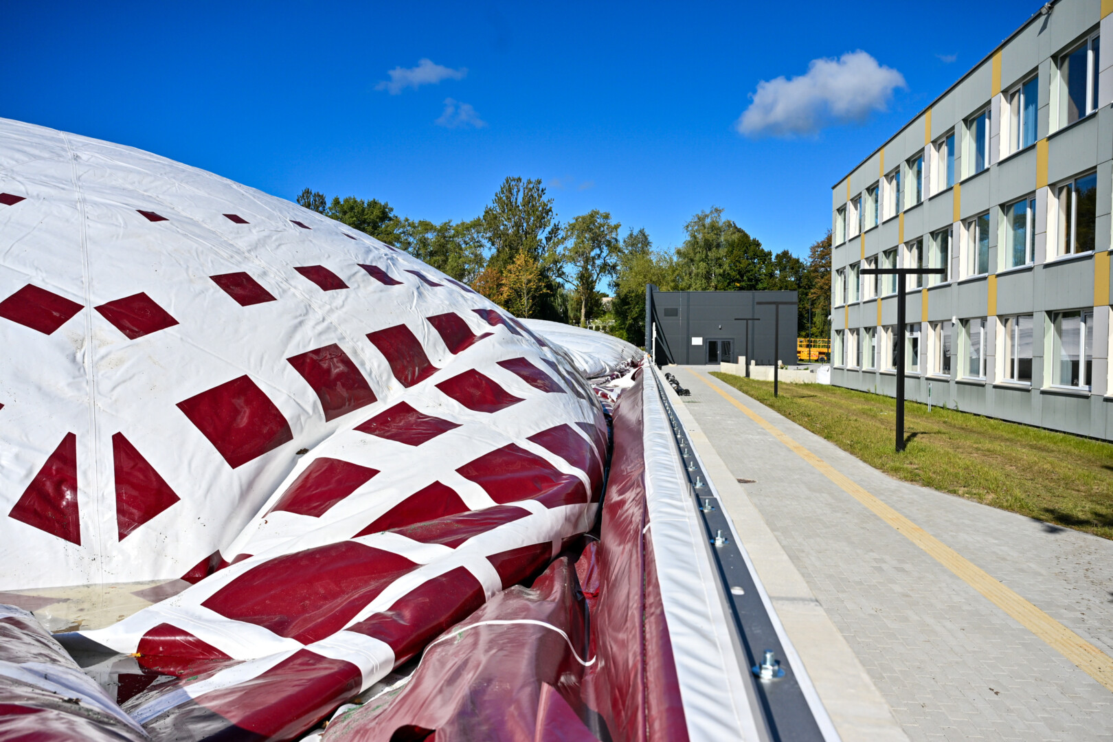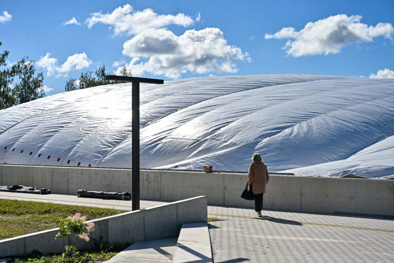 Pripūstas šildomas maniežas, kurio kupolas į viršų kils daugiau nei 20 metrų, lankytojams duris turėtų atverti dar šį rudenį.