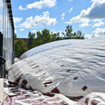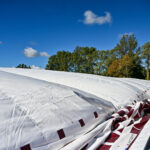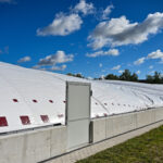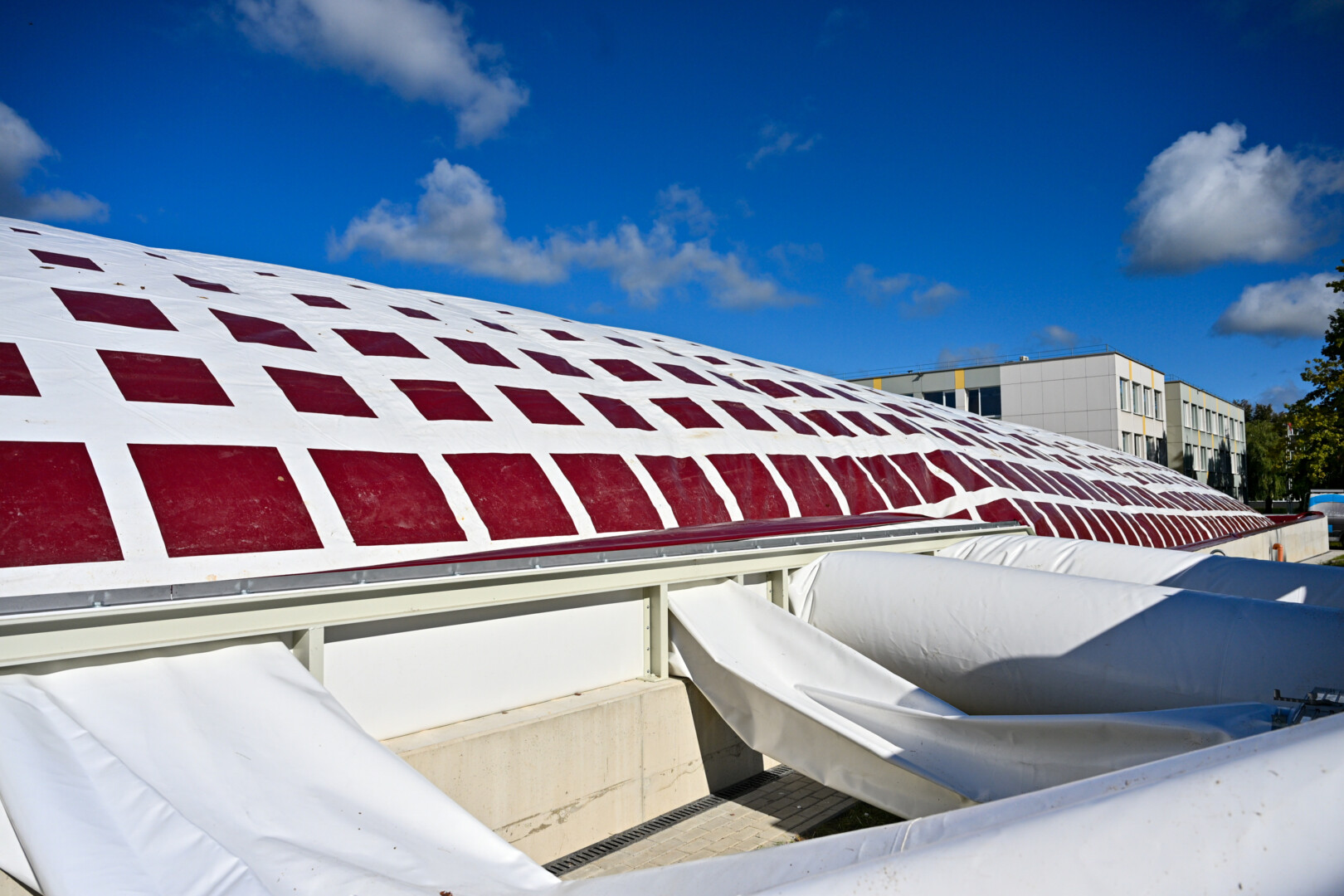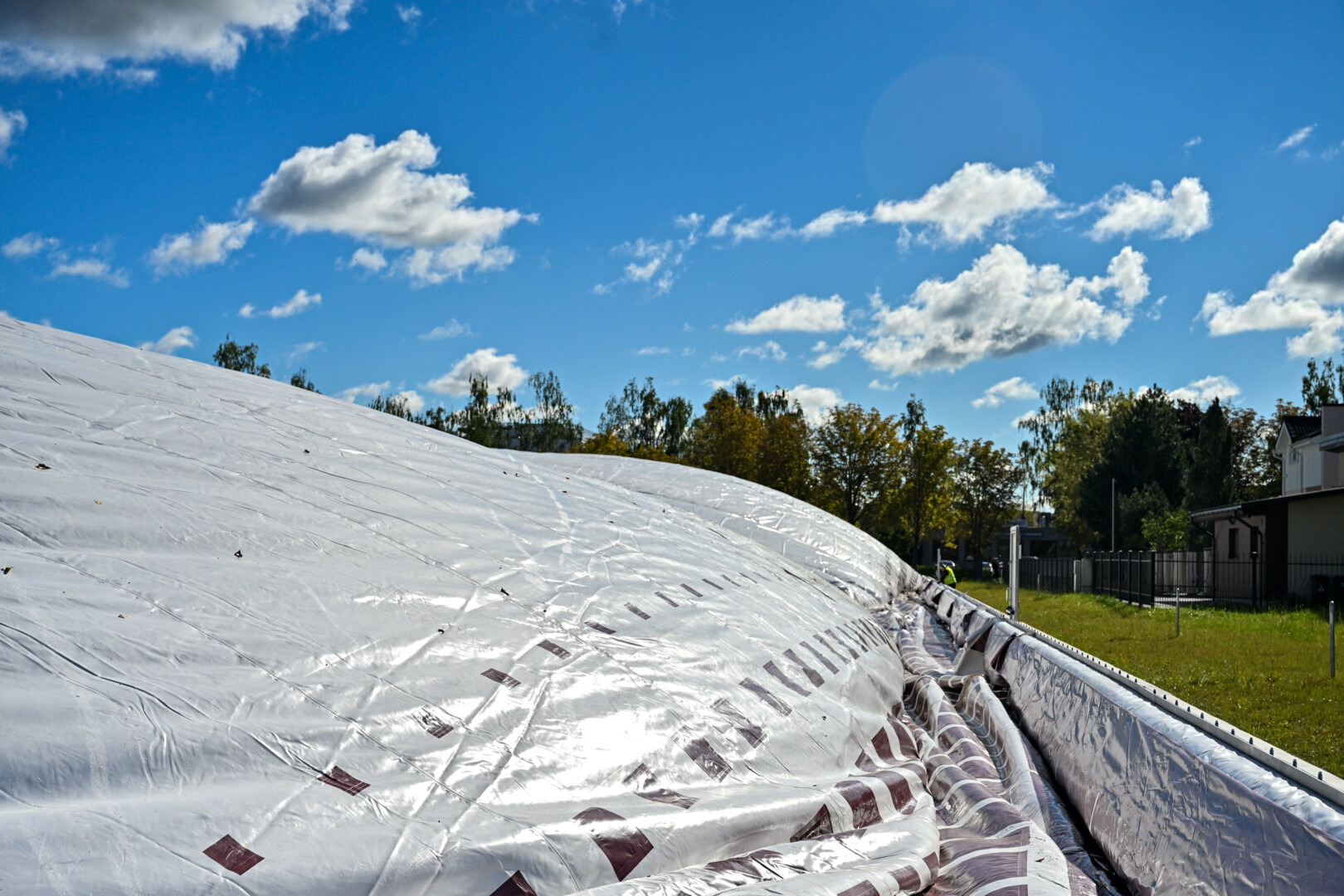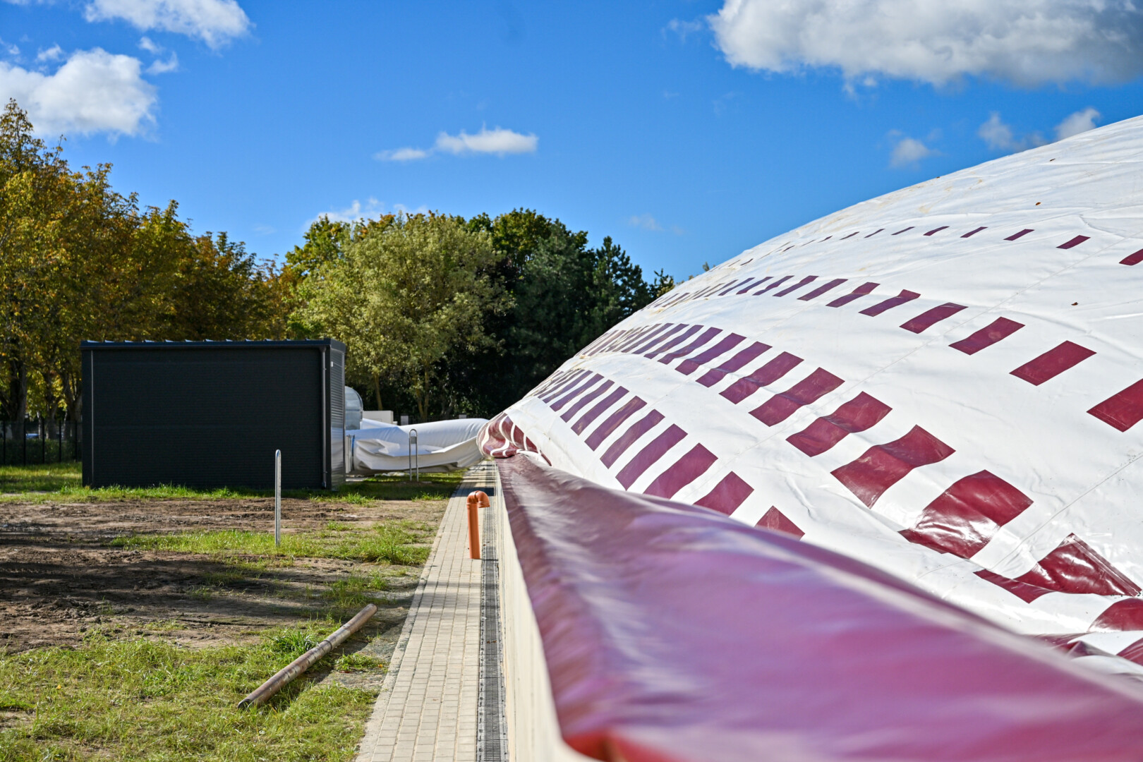 Pripūstas šildomas maniežas, kurio kupolas į viršų kils daugiau nei 20 metrų, lankytojams duris turėtų atverti dar šį rudenį.