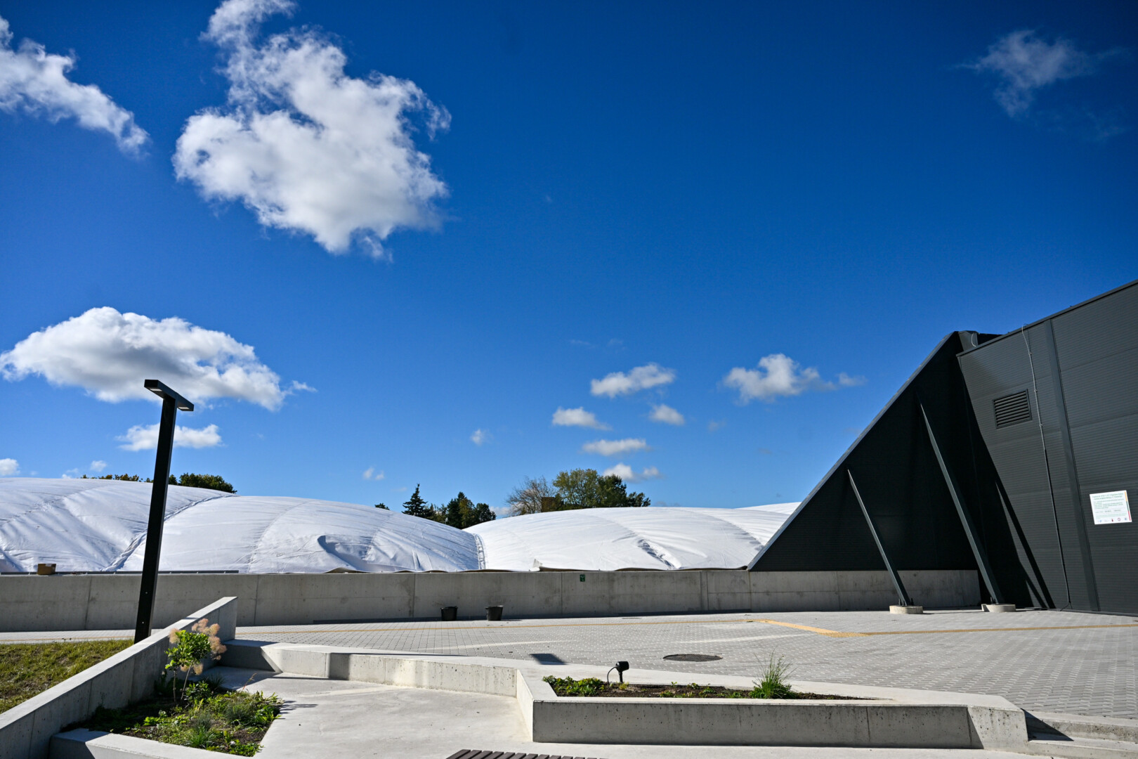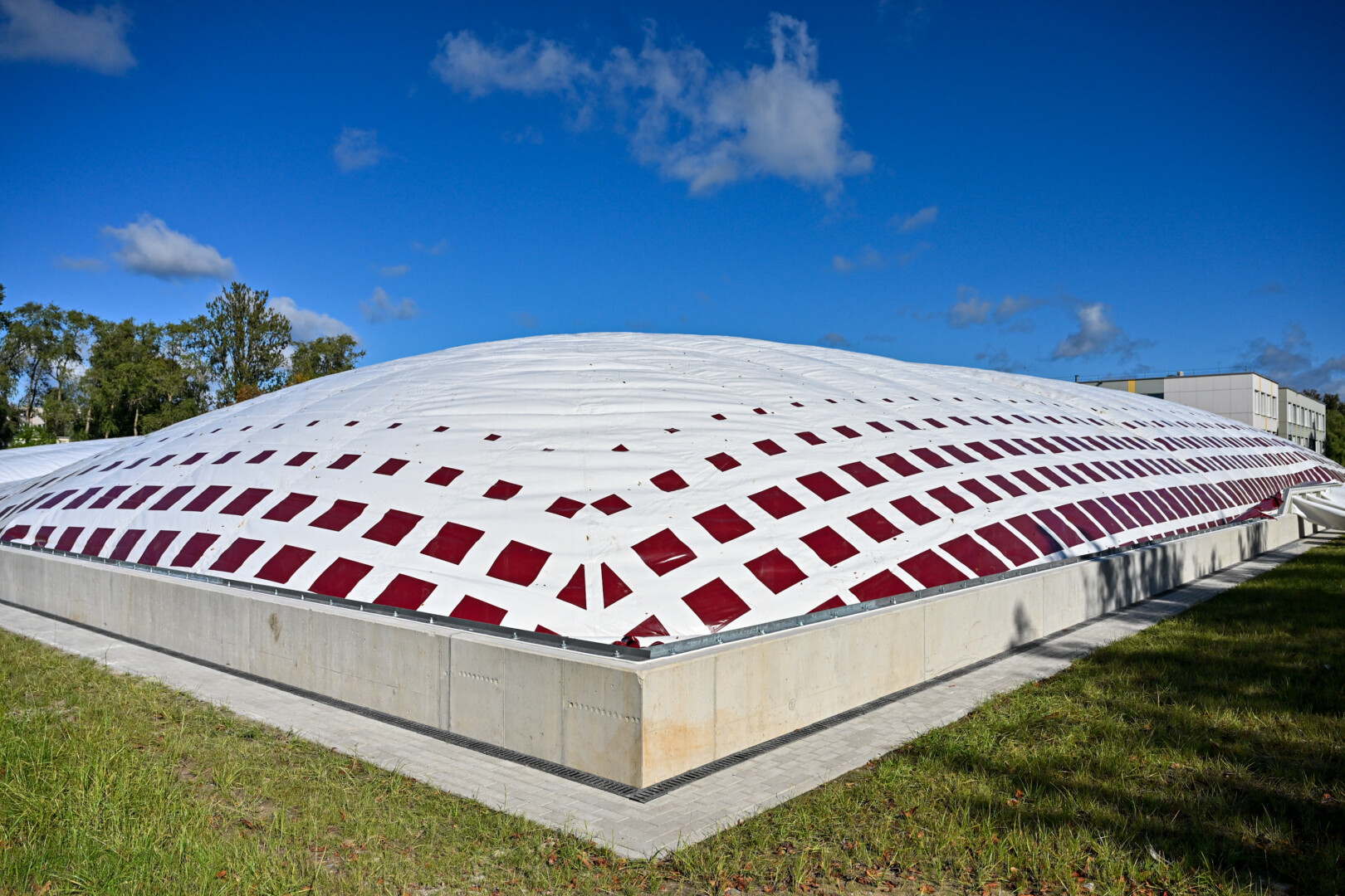 Pripūstas maniežo kupolas sieks maždaug 22 metrų aukščio, 115 metrų ilgio ir 77 metrų pločio. Teigiama, kad dideliu kupolo medžiagos privalumu bus jos skaidrumas – sklaidoma šviesa leis dieną nenaudoti dirbtinio apšvietimo.