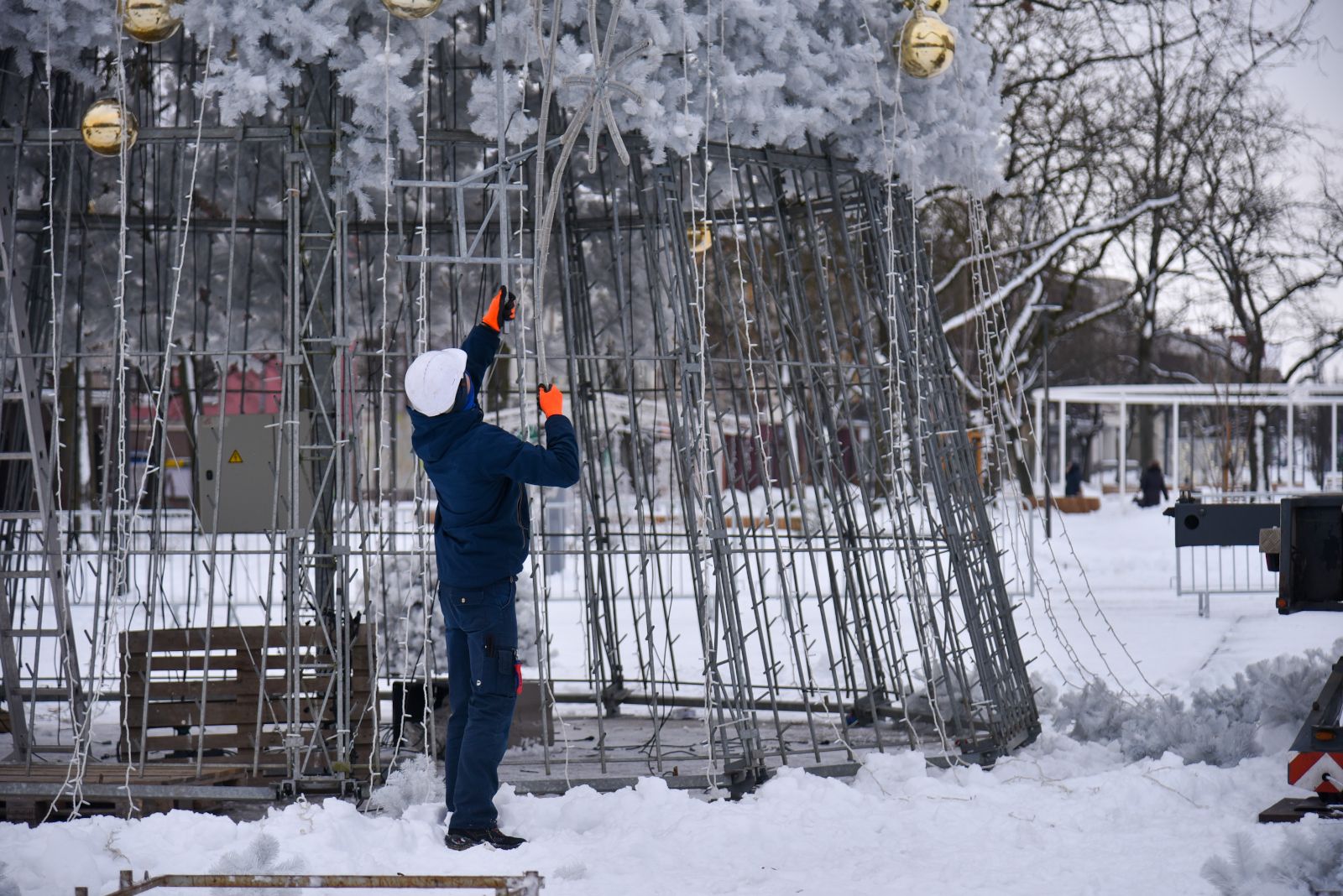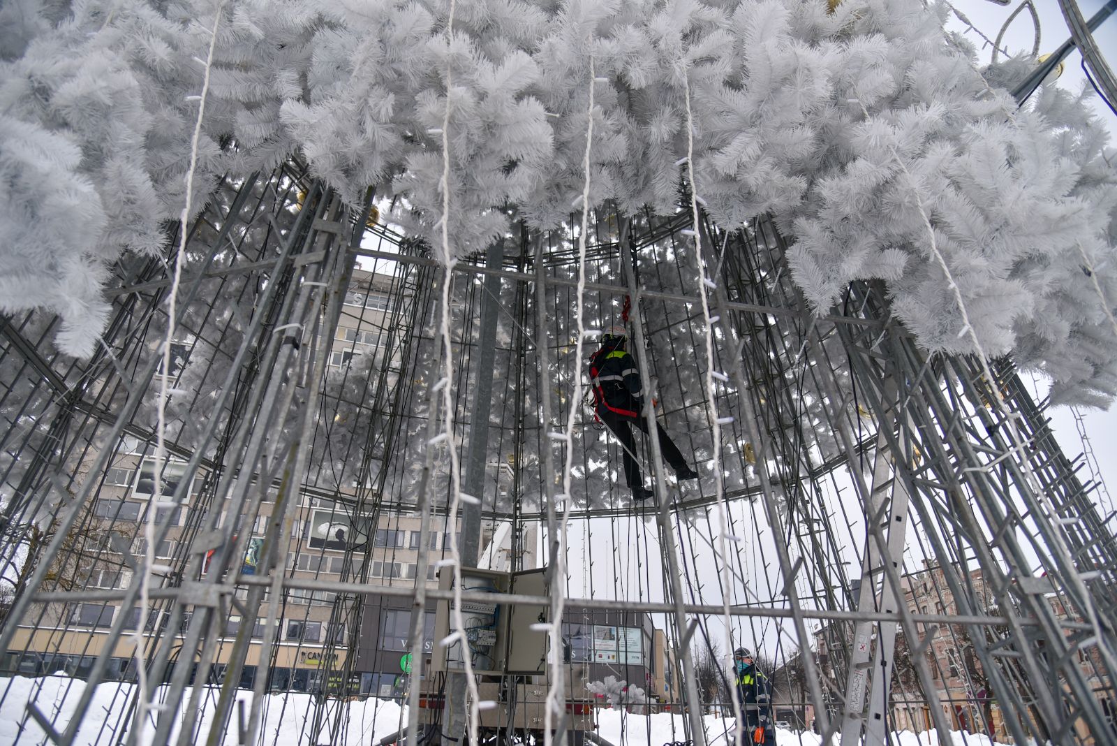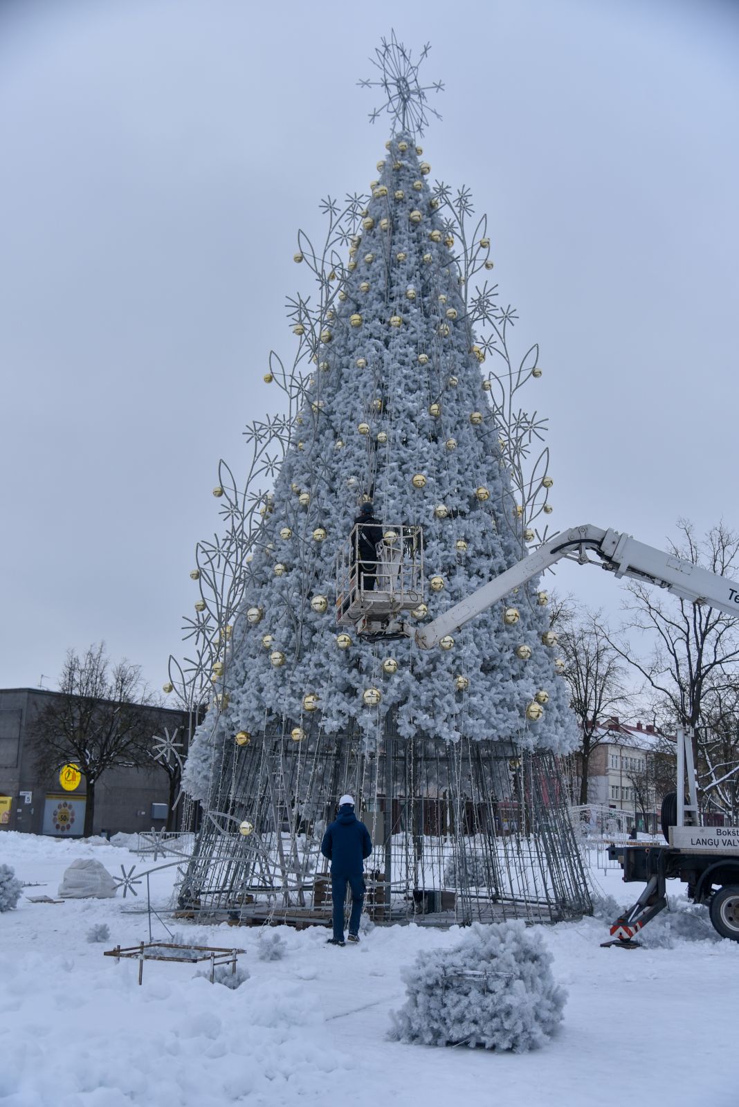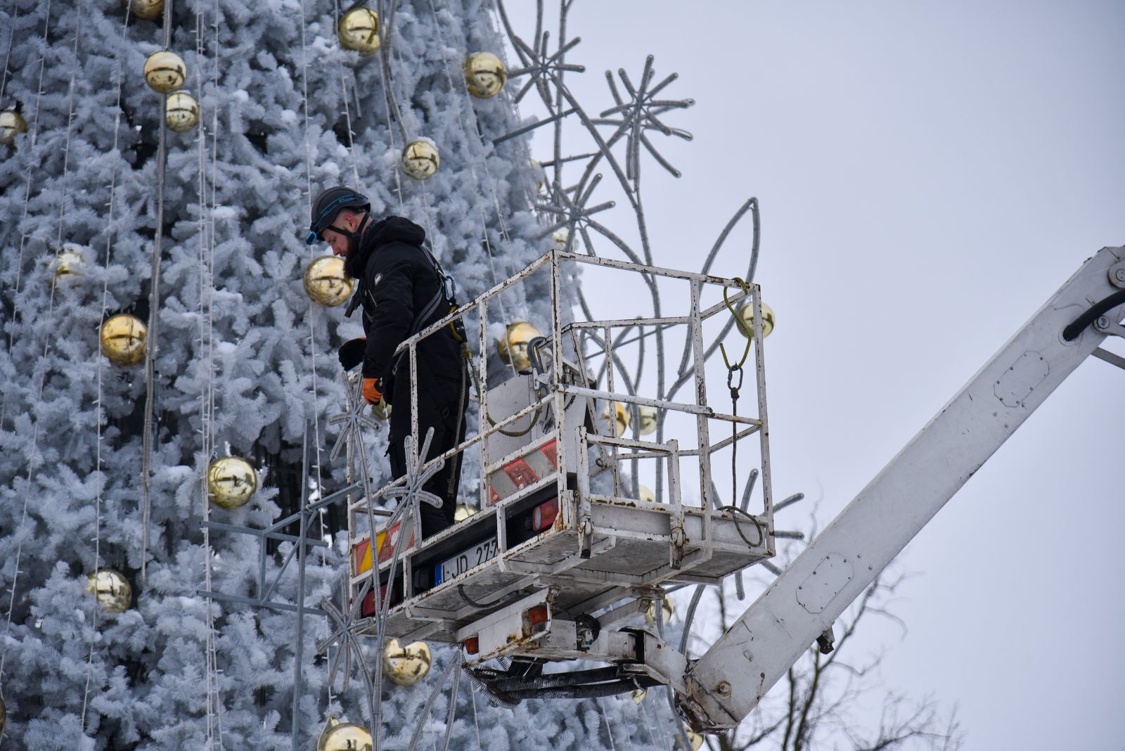 Įžiebta lapkričio 28-ąją, vasario pirmąją eglė pradėta nupuošti.