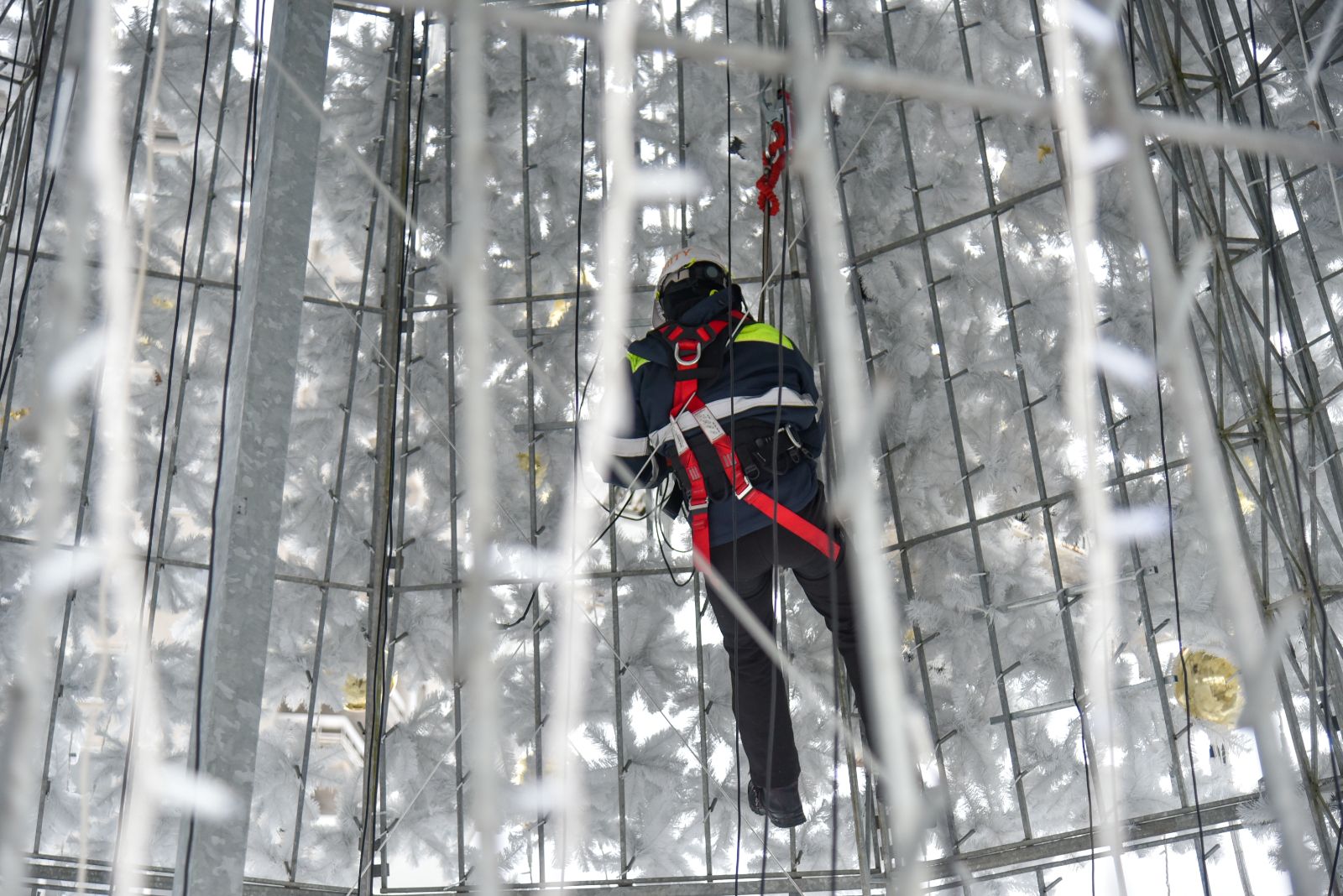 Su panevėžiečiais jau atsisveikinanti eglė siekė net 18 metrų aukščio, o jos skersmuo 9 m. Eglei papuošti prireikė per 66 tūkst. šviesos diodų, o metalinis karkasas apkaišytas 3500 baltų dirbtinių eglišakių.