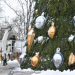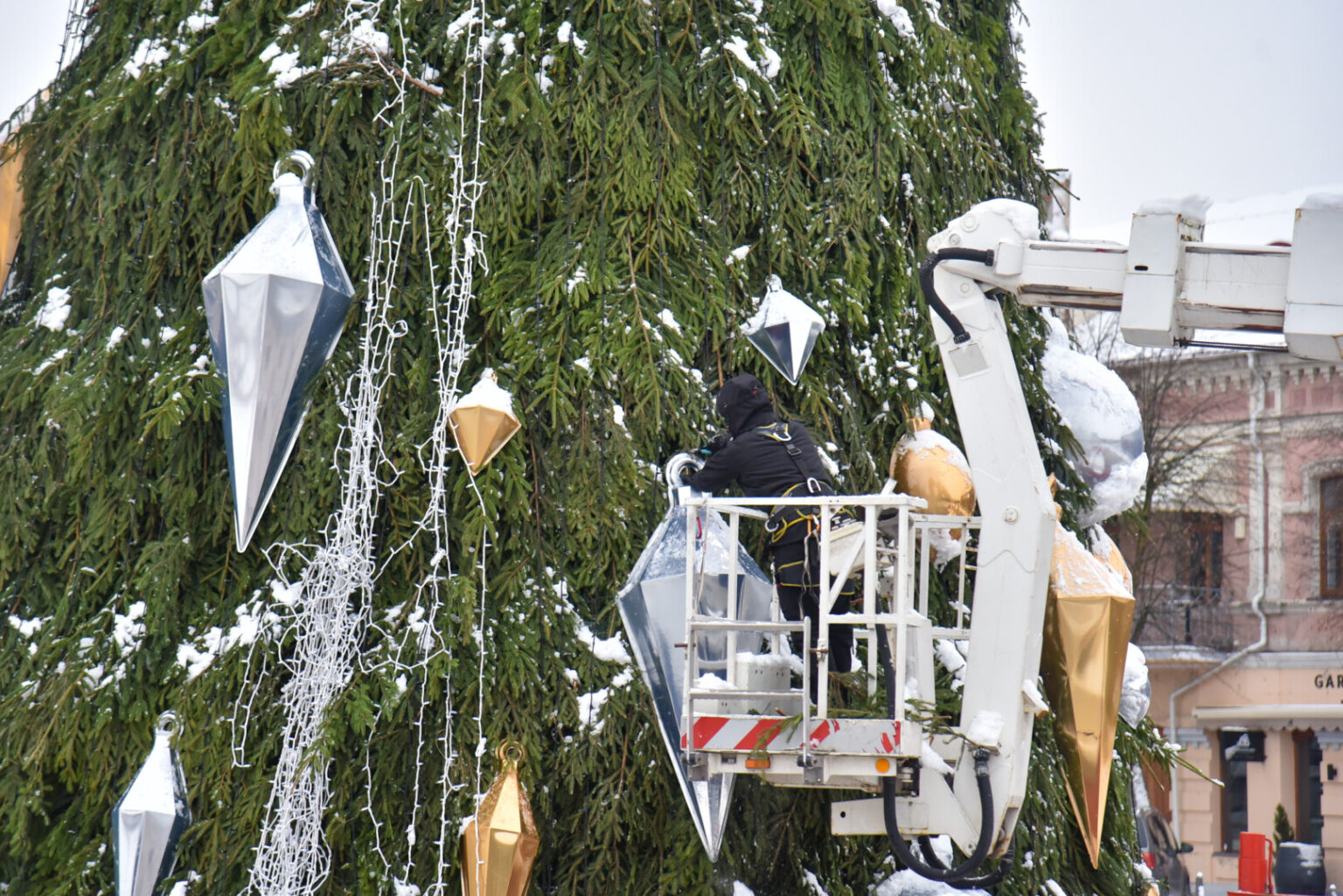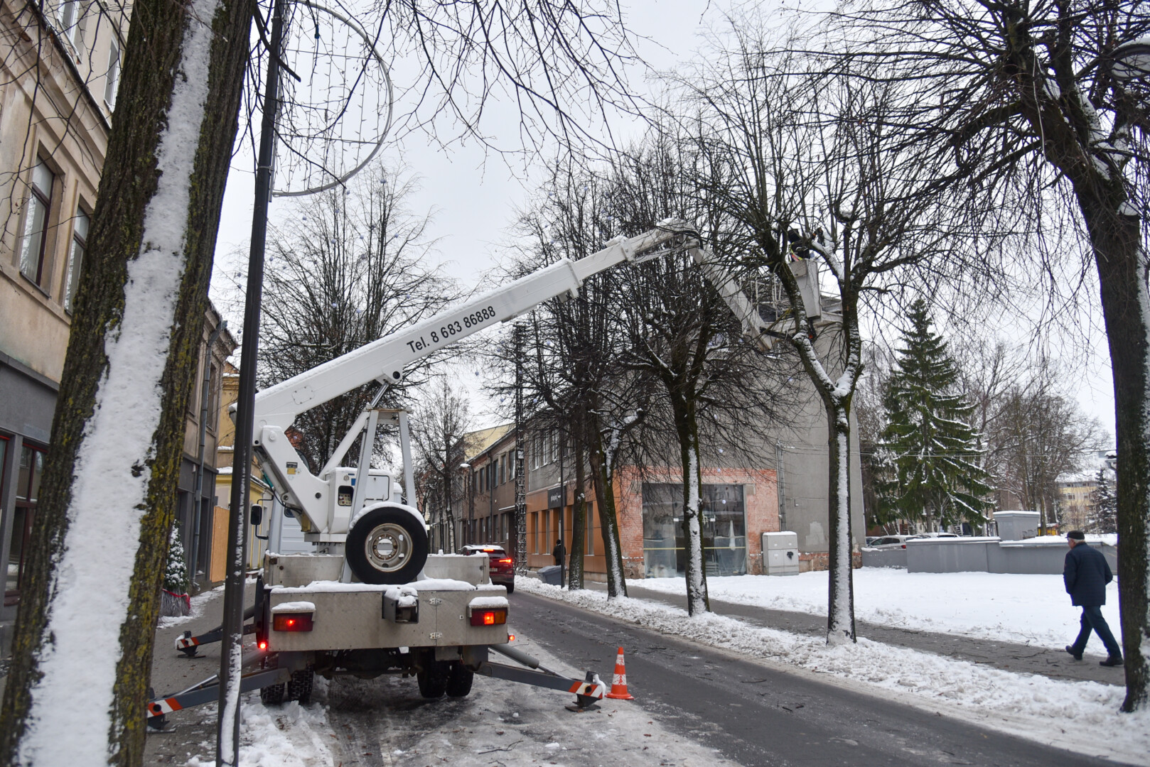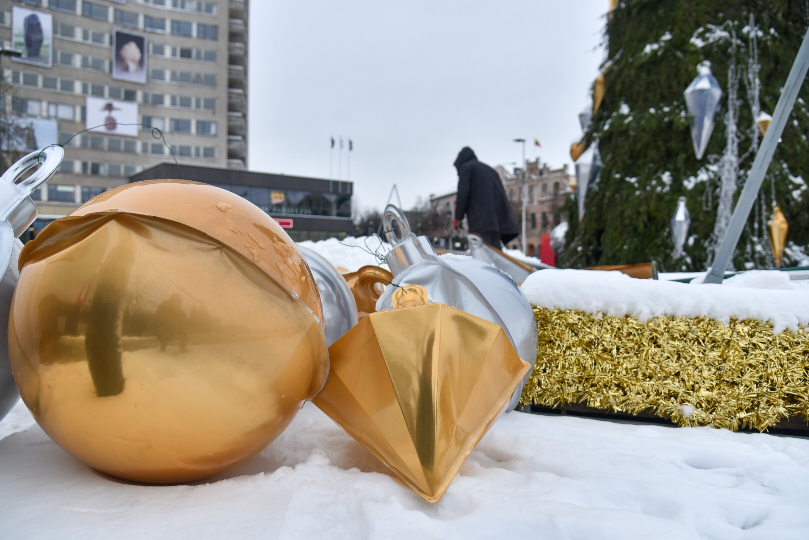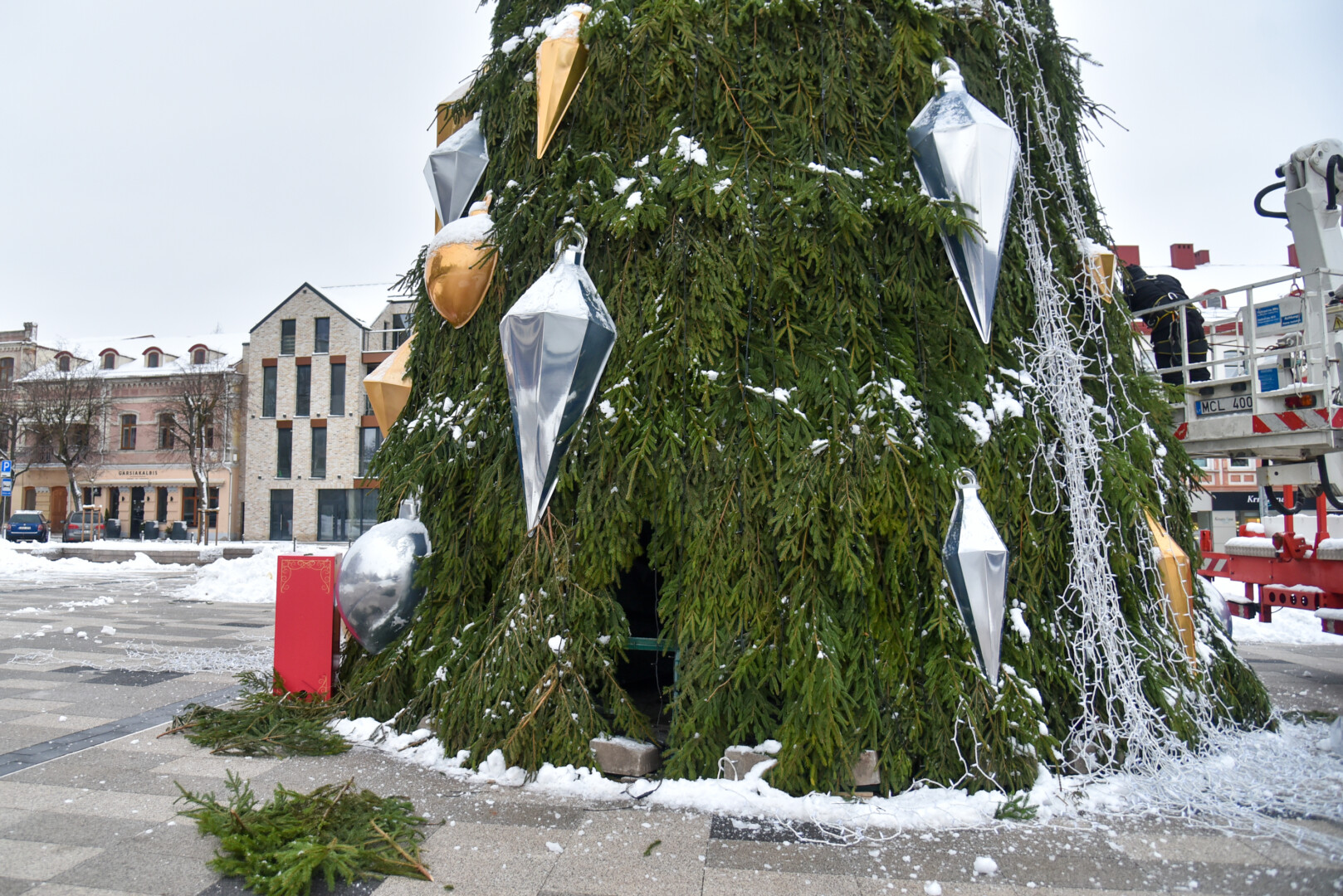 Panevėžys užbaigia švenčių maratoną – pirmadienį jau nupuošiama Laisvės aikštę puošusi eglė.