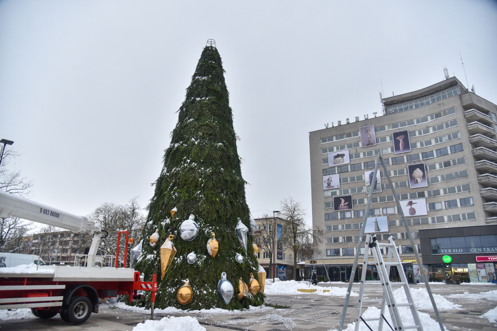 Kalėdinės eglės puošyba iš Savivaldybės biudžeto šįmet kainavo 40,9 tūkst. Eur, dar šiek tiek per 76 tūkst. Eur atsiėjo viešųjų miesto erdvių papuošimai.