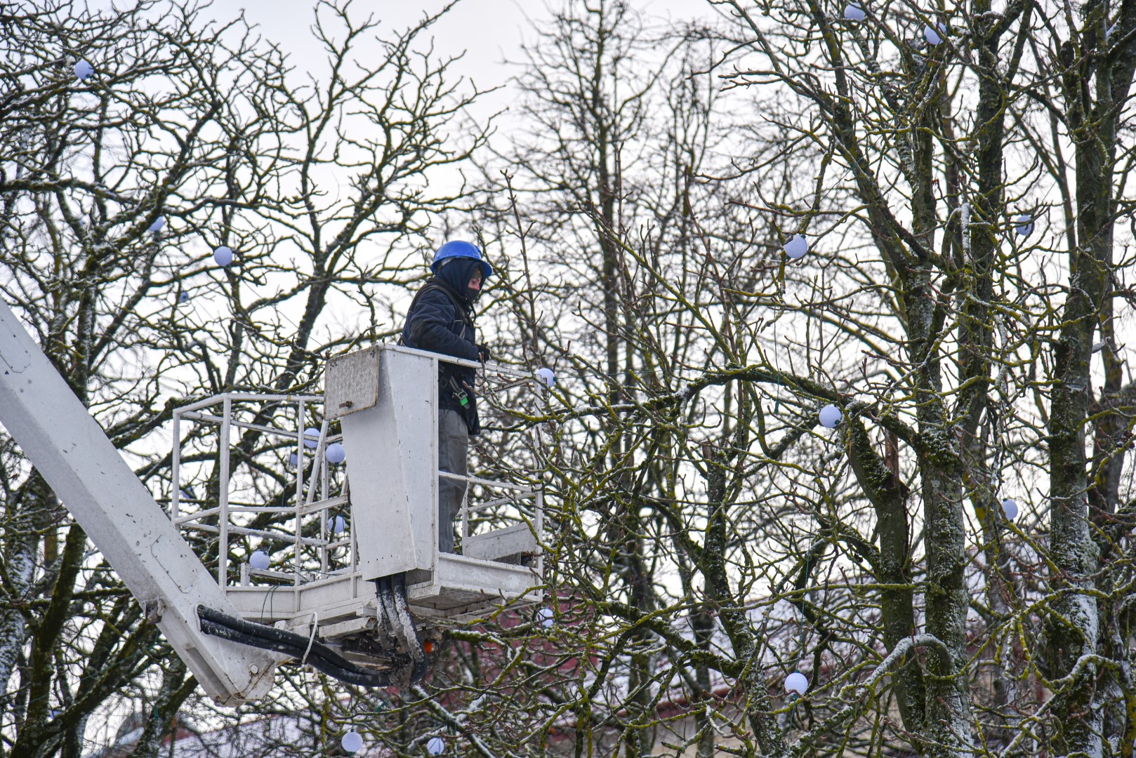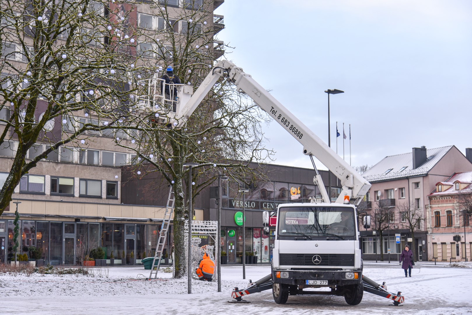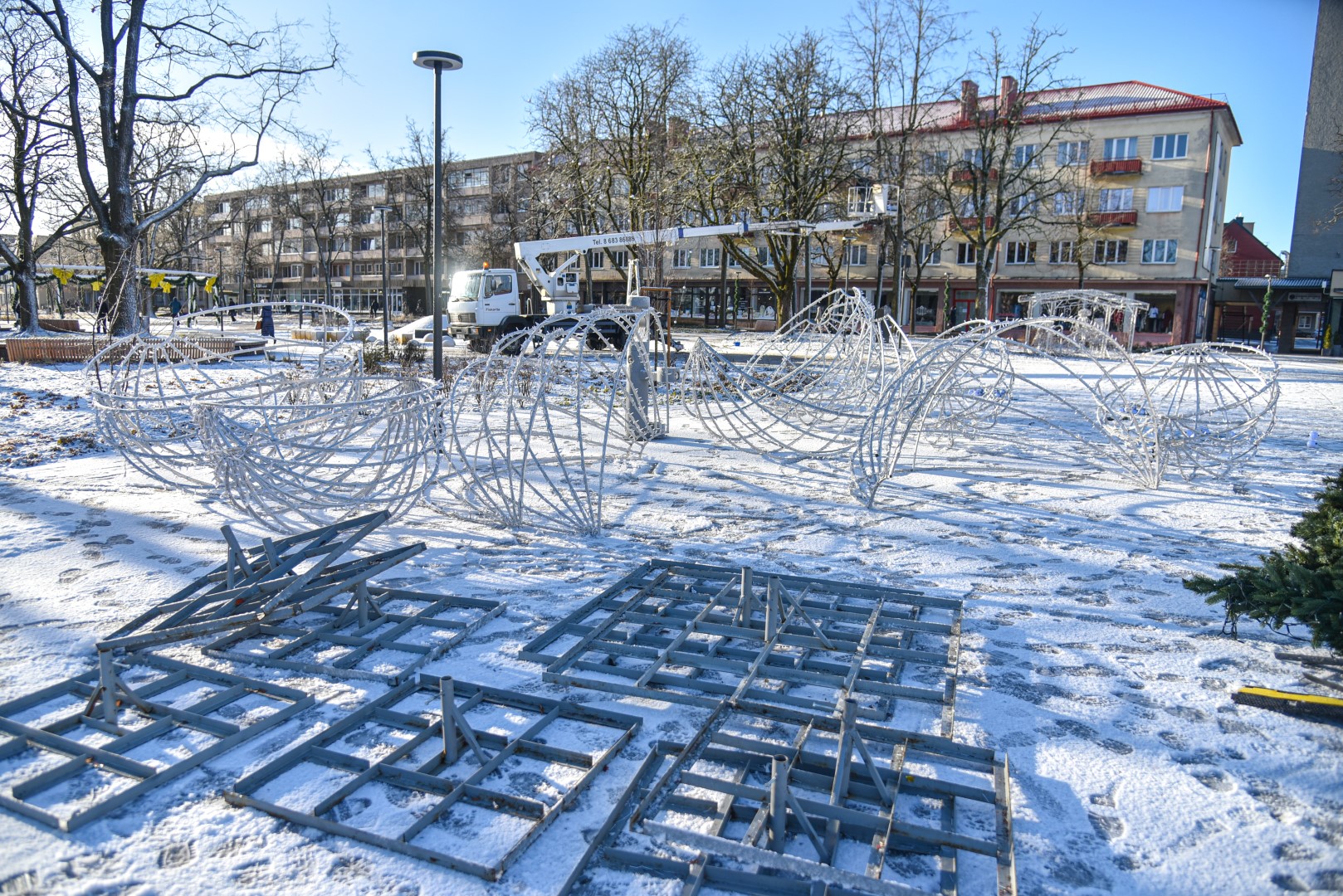 Aukštaitijos sostinė užbaigė šventinį laikotarpį. Pirmadienį nuo ryto Laisvės aikštėje pradėti nupuošti medžiai, nebeliks ir dekoracijų ant šviestuvų.