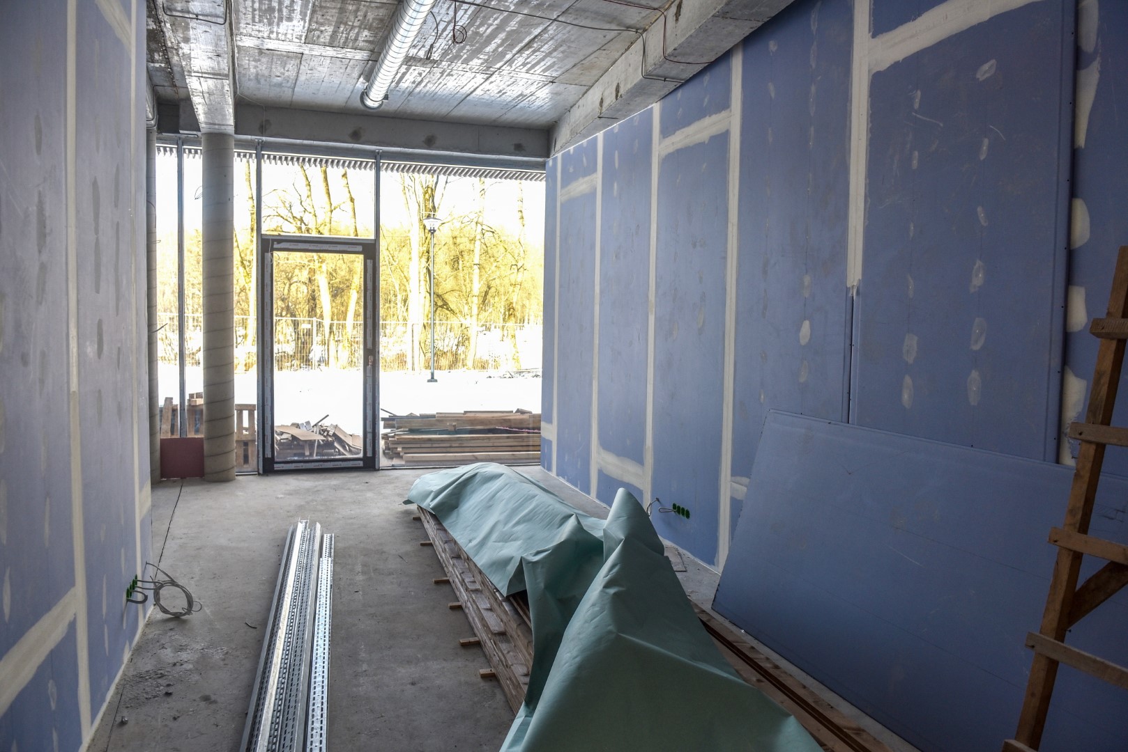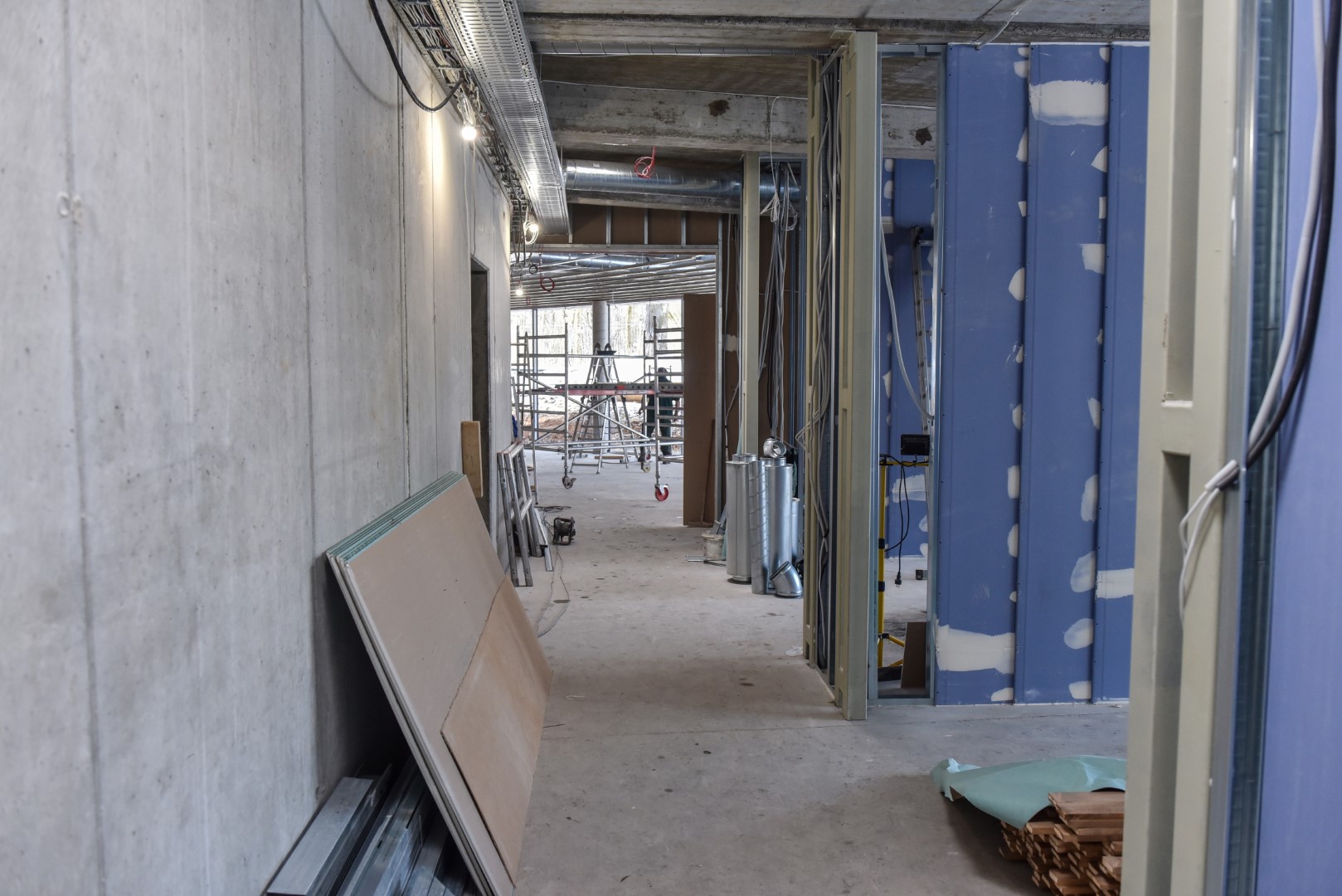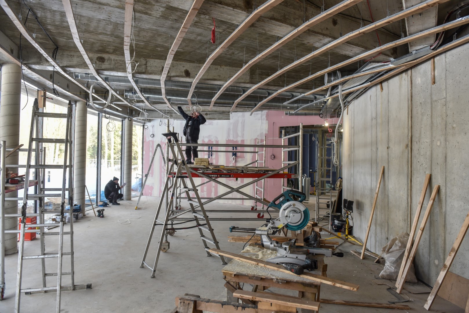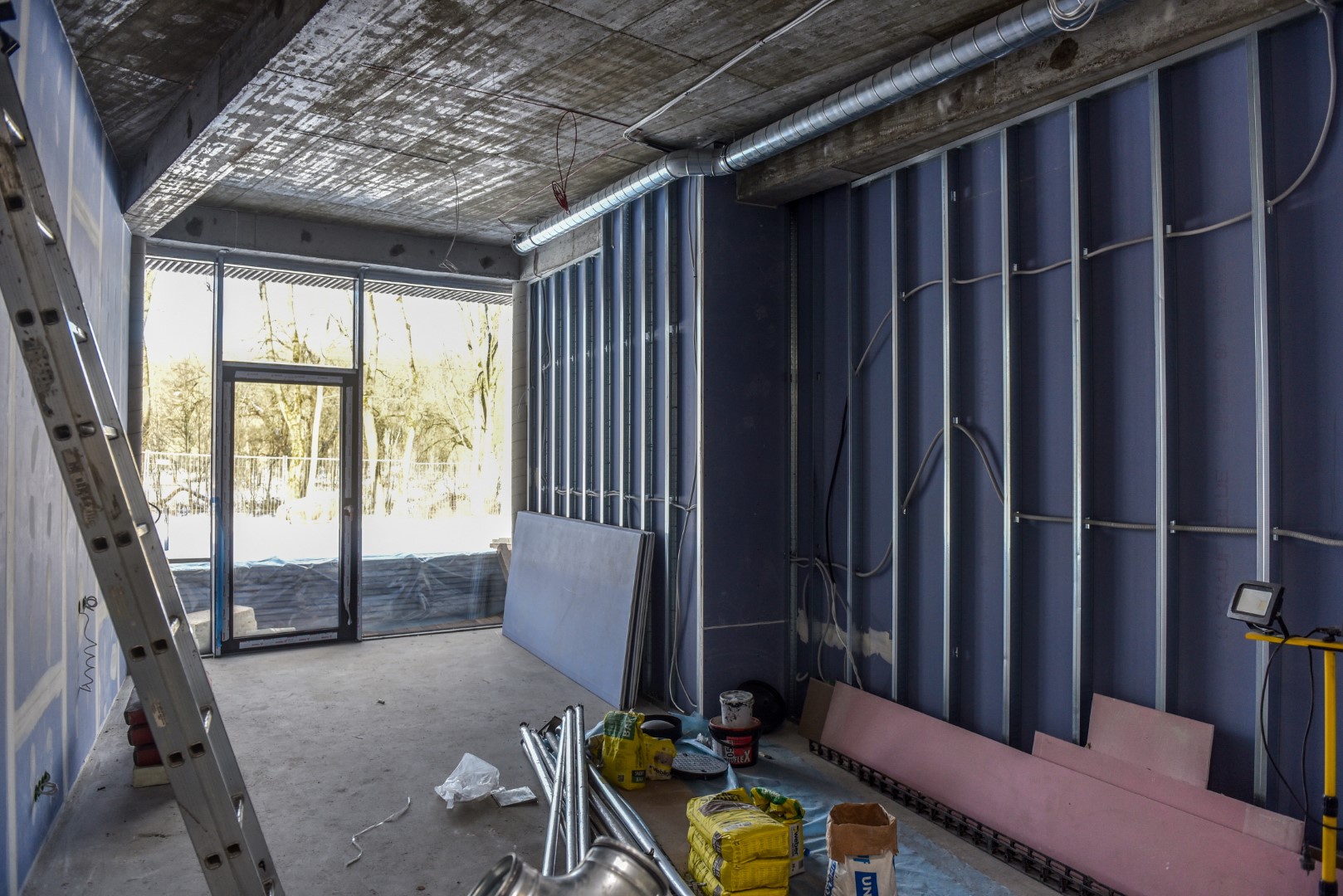 Pasak S. Biveinienės, išorės darbai baigti, statybininkai persikėlė į vidų: baigiamos montuoti pertvaros, vedama elektros instaliacija, atliekami kiti vidaus patalpų įrengimo darbai. Šiuo metu rengiami dokumentai skelbti viešiesiems pirkimams baldams, vaizdo įrangai įsigyti.