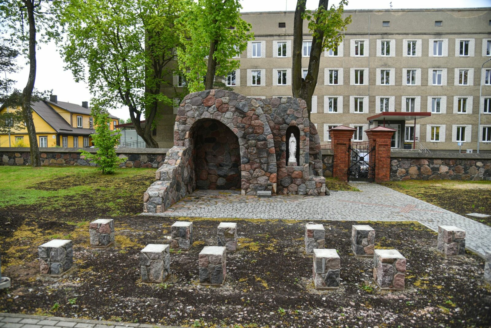Prie Lurdo rožinį bus galima kalbėti ir žengiant per akmenines stotis, ir sėdint ant suoliukų, kurių akmeninius stovus meistras jau pastatė, beliko juos uždengti medžio lentomis.
