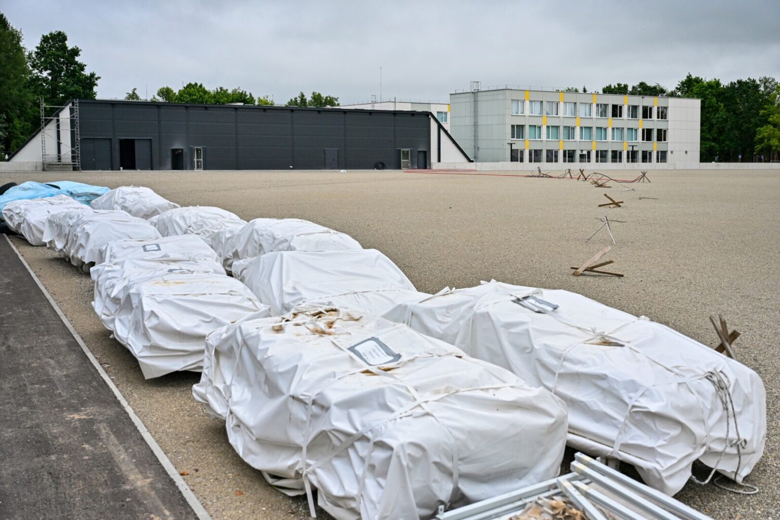 Anot jo, atlikti visi lauko darbai ir šiuo metu laukiama atvykstant užsakytos sintetinės dangos, ant kurios iškils maždaug 22 metrų aukščio, 115 metrų ilgio ir 77 metrų pločio pripučiamas kupolas.