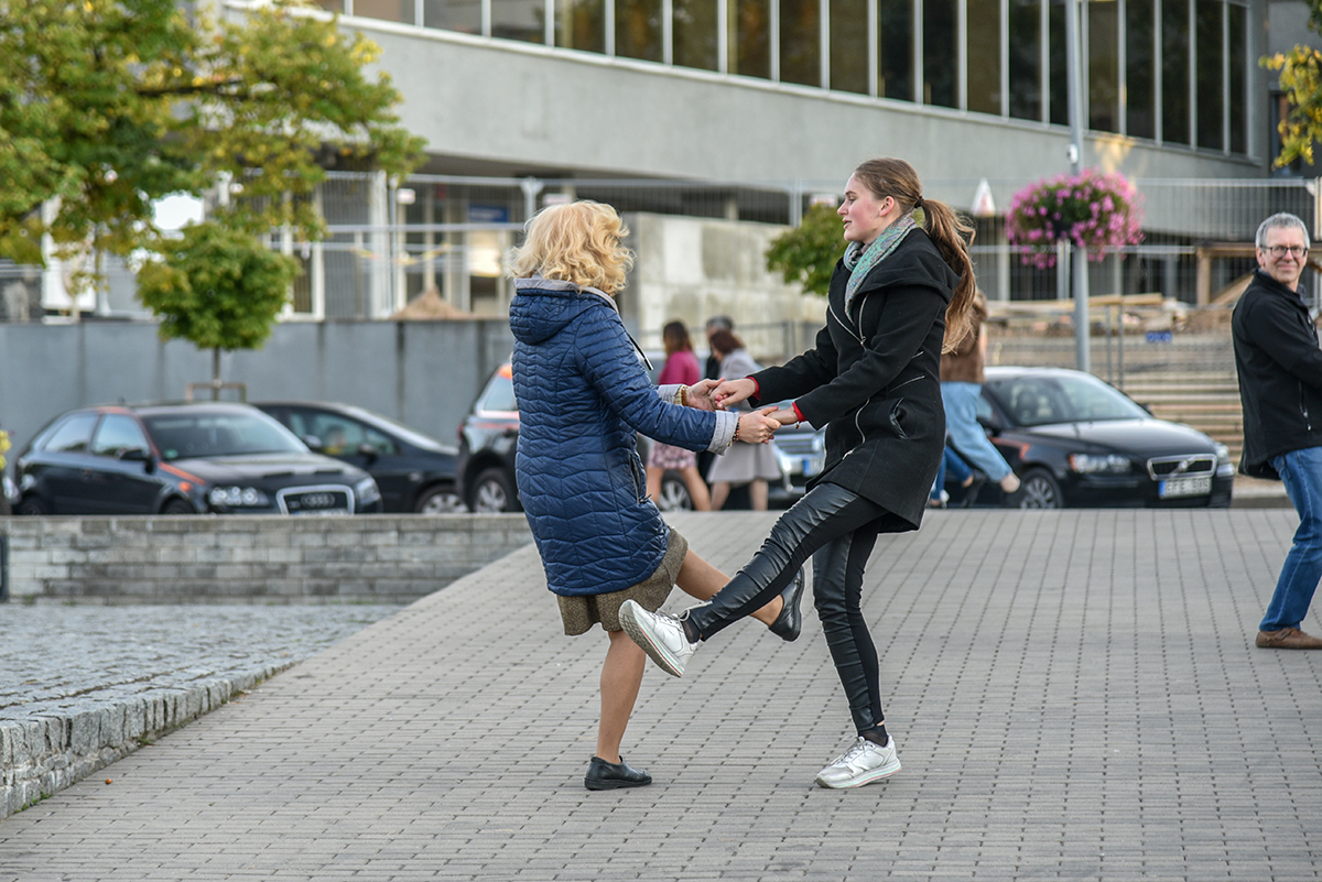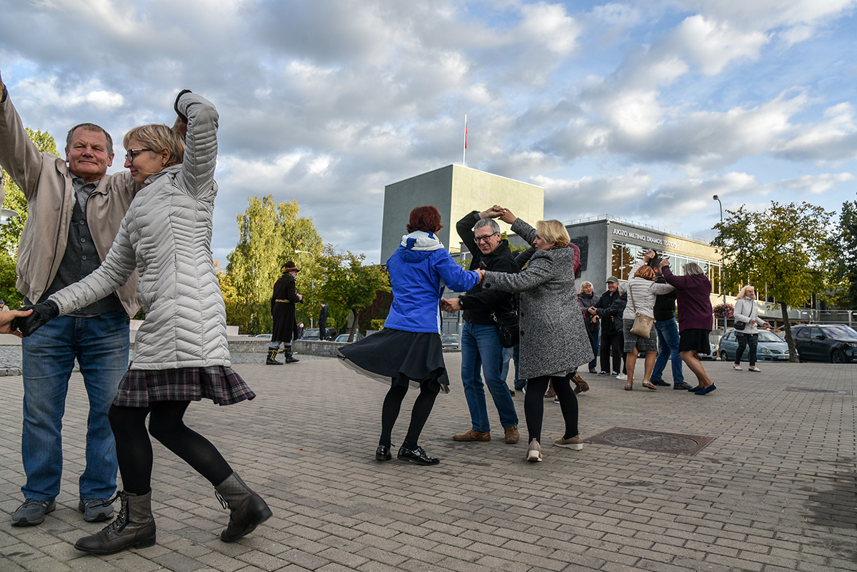 Jau tradicinė, penktoji unikali akcija „Visa Lietuva šoka“ šį penktadienį pakvietė panevėžiečius įsisukti į bendrą tradicinių tautinių šokių sūkurį. Ne tik patirti puikių emocijų šokio siautuly, bet ir pažinti tautos kultūrą bei tradicijas per šokį.