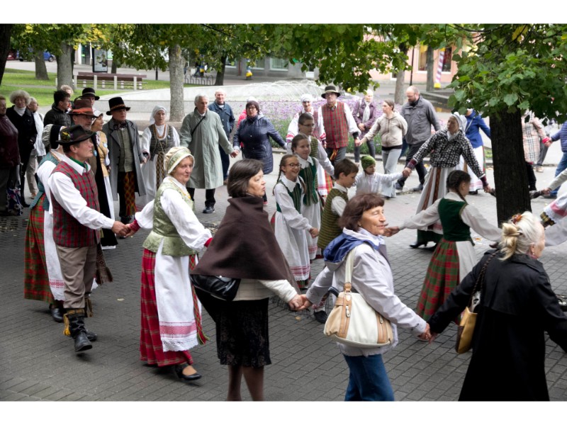 Penktadienio pavakarę Panevėžio centras sumirguliavo tautiniais drabužiais, suskambėjo muzikos garsais. Laisvės aikštėje sukosi šokėjų poros. Taip panevėžiečiai prisijungė prie Lietuvos liaudies kultūros centro organizuotos akcijos „Visa Lietuva šoka“.