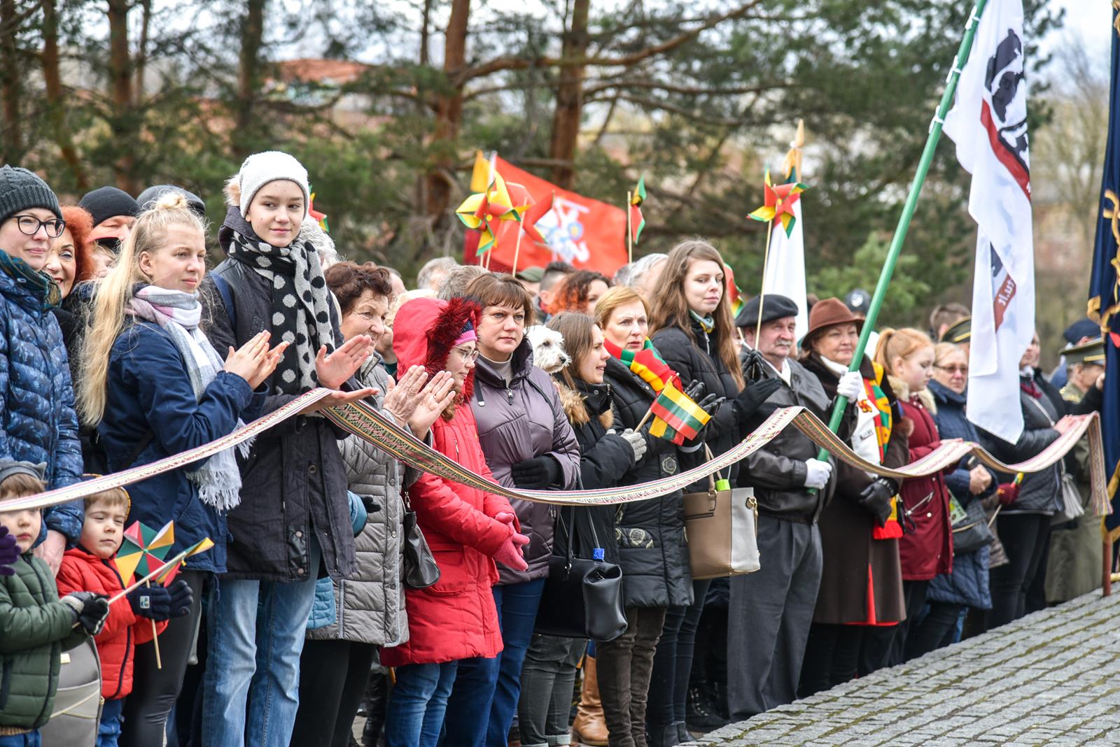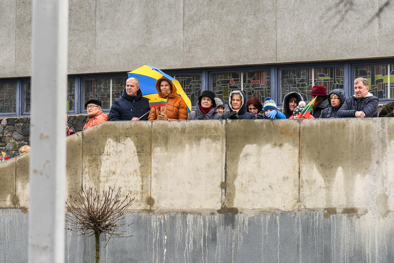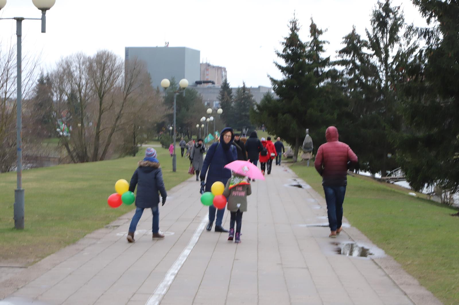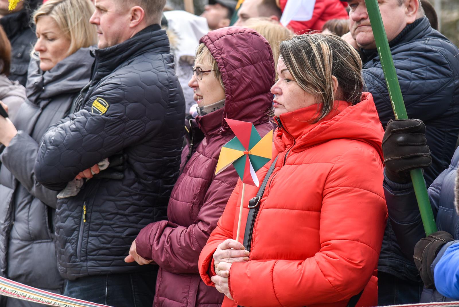 Nepaisydamos vėjuoto, lietingo oro ir virusų grėsmės, į Kovo 11-osios renginius Panevėžyje rinkosi minios.