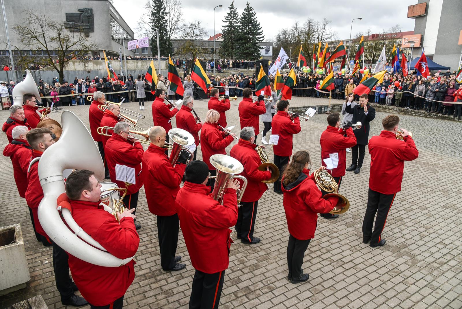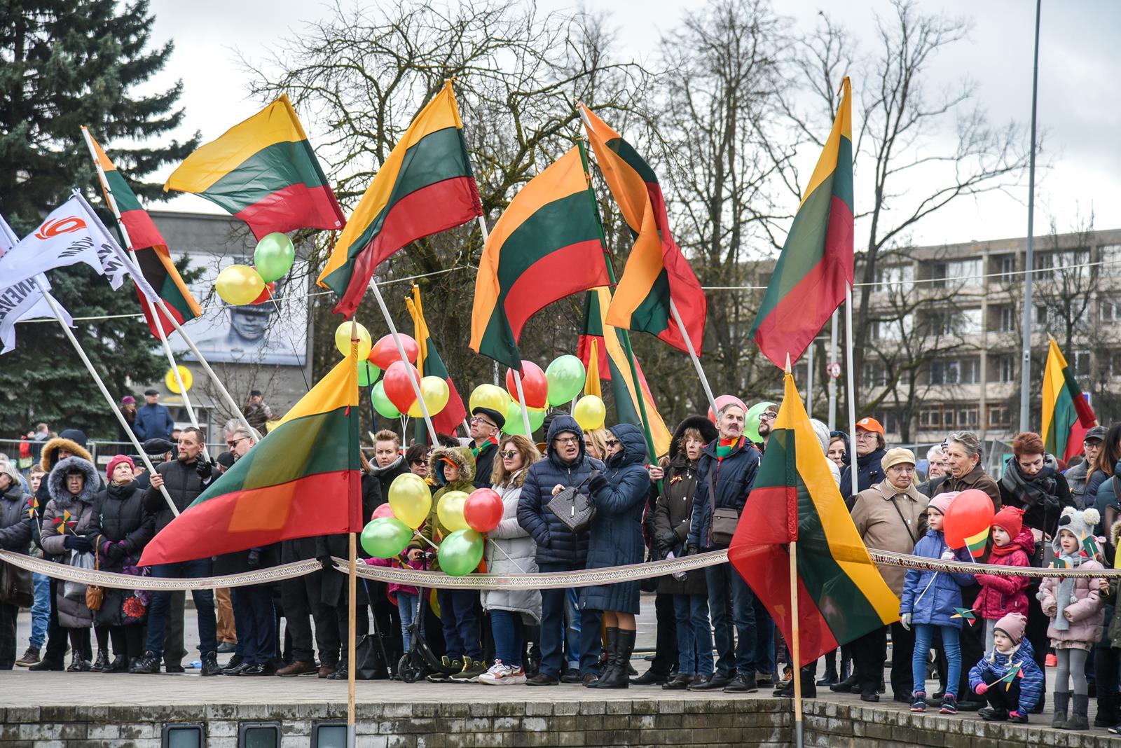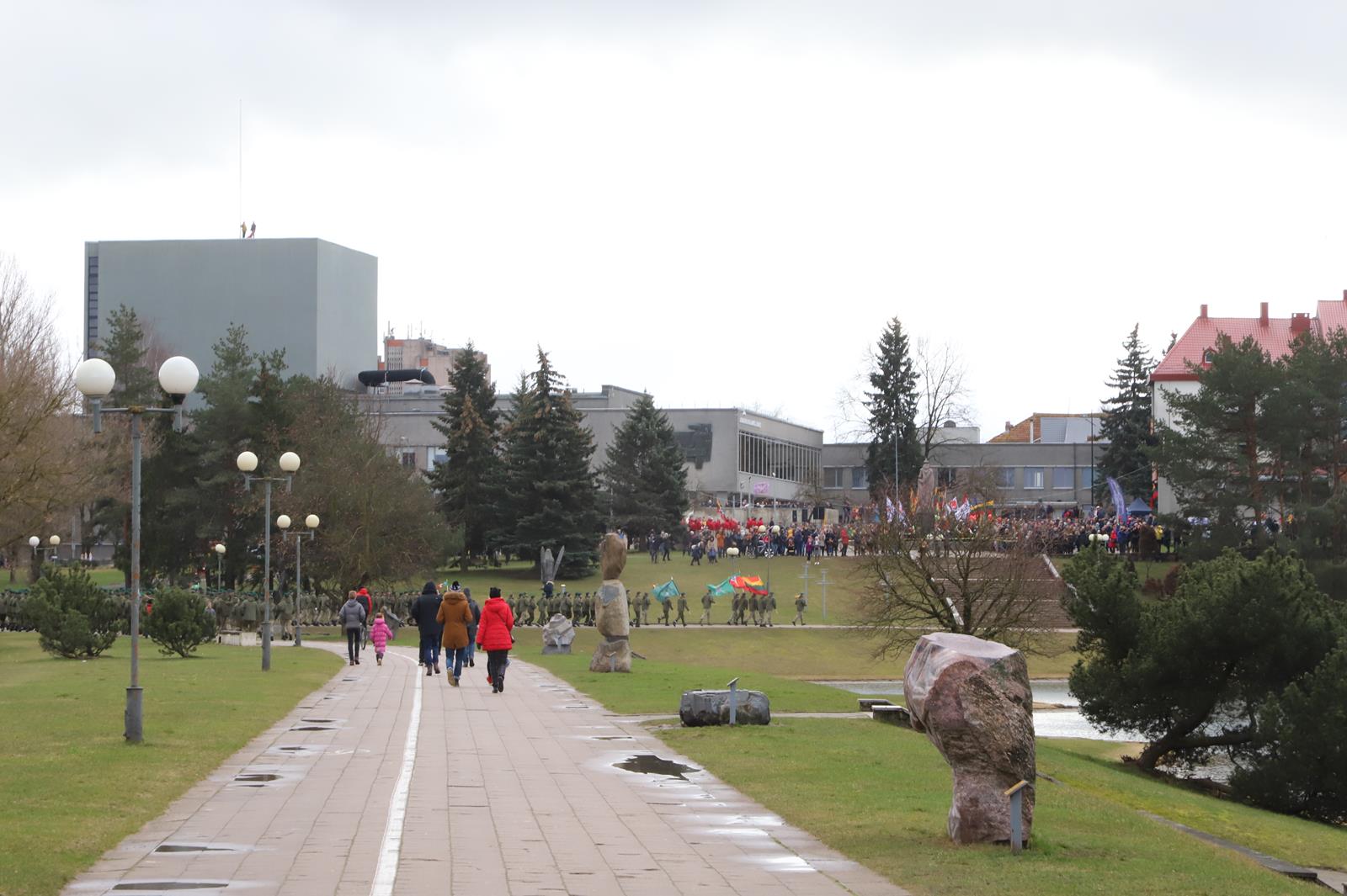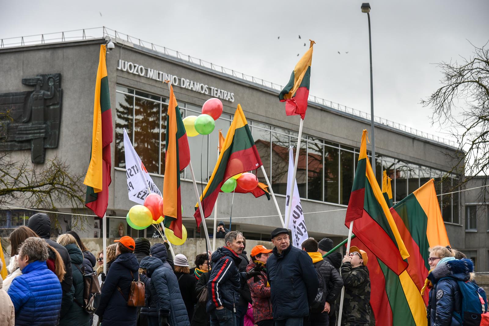 Nepaisydamos vėjuoto, lietingo oro ir virusų grėsmės, į Kovo 11-osios renginius Panevėžyje rinkosi minios.