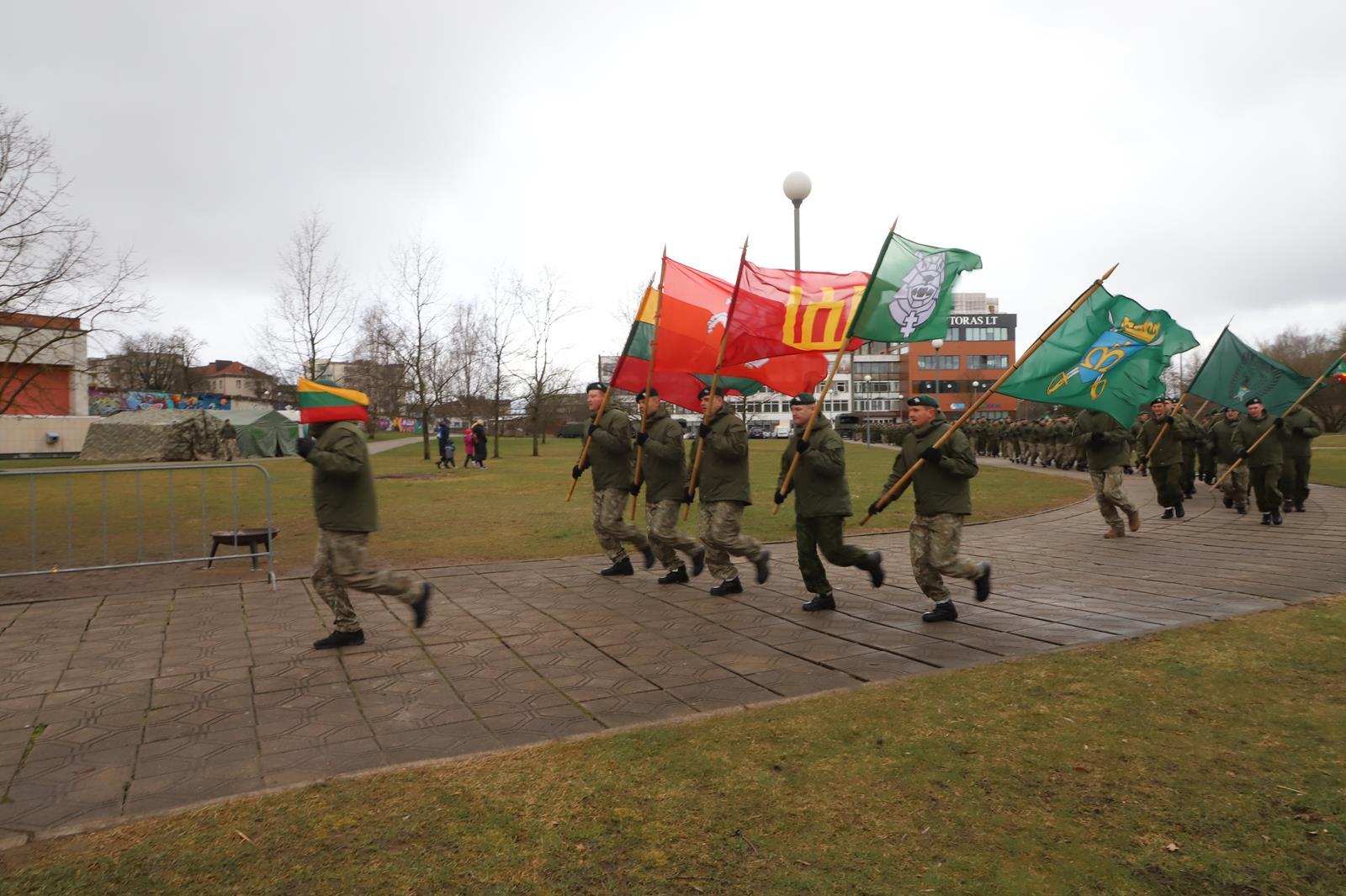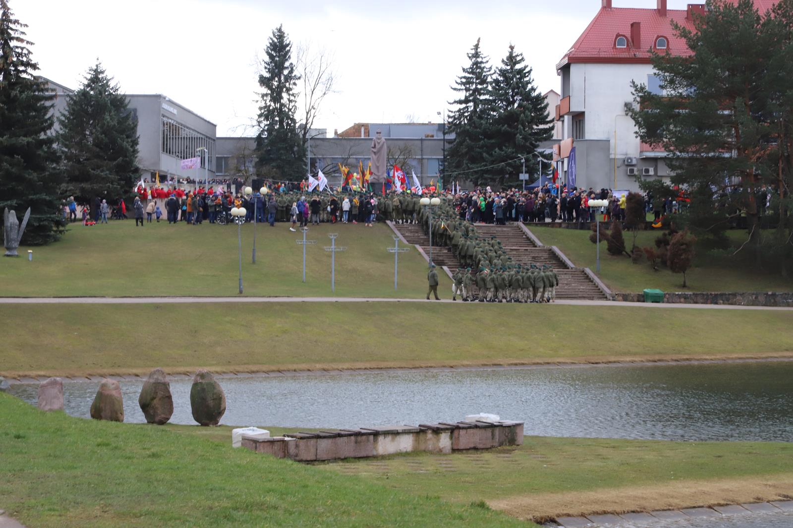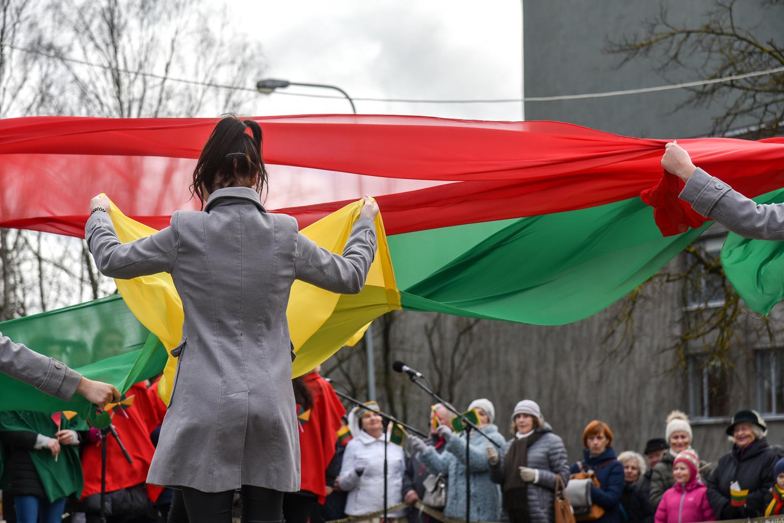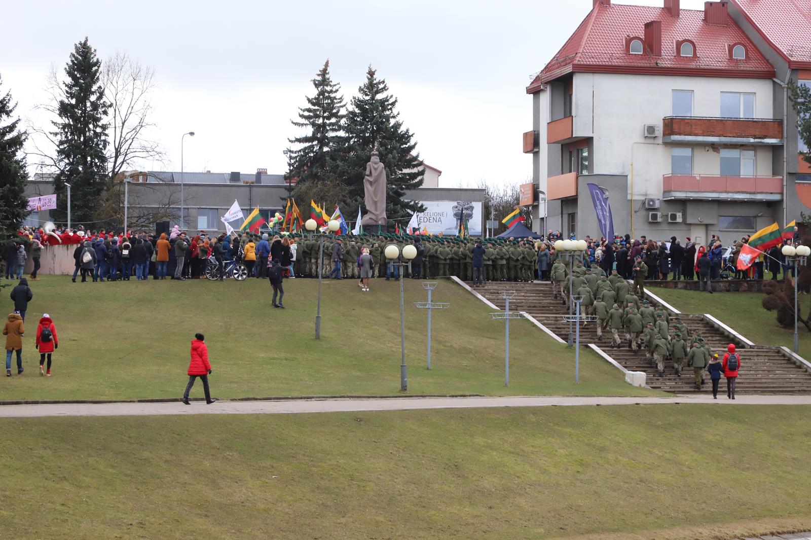 Nepaisydamos vėjuoto, lietingo oro ir virusų grėsmės, į Kovo 11-osios renginius Panevėžyje rinkosi minios.