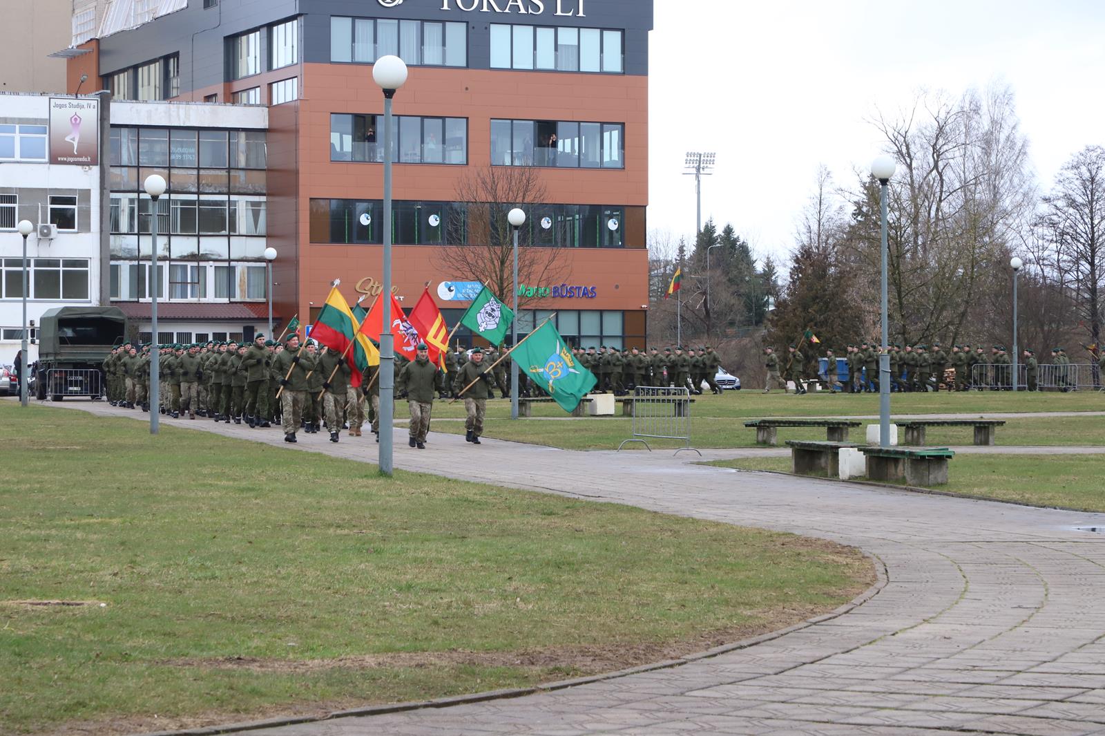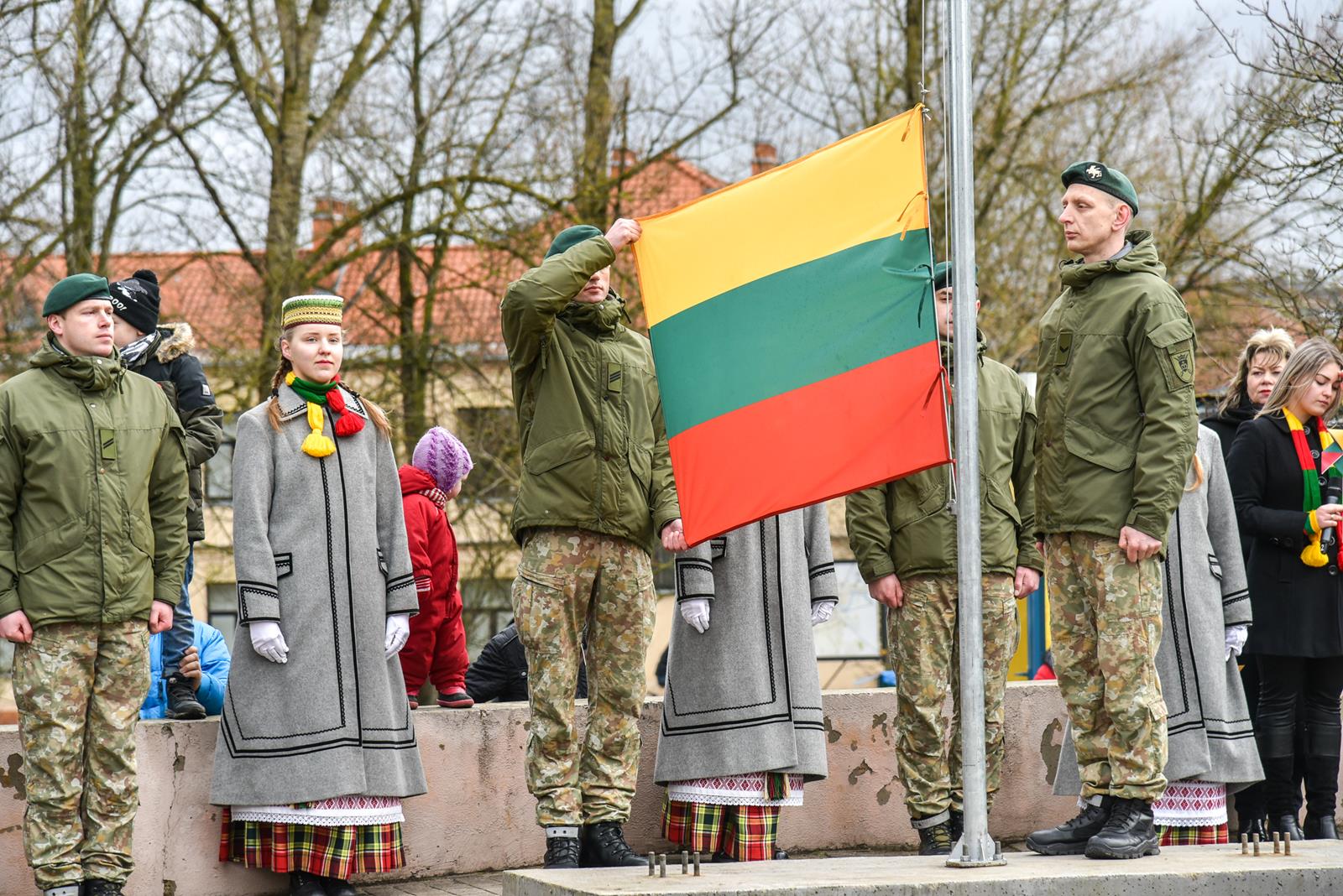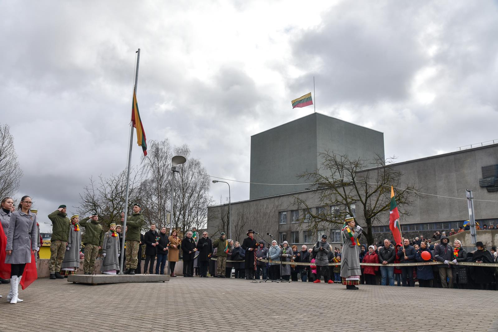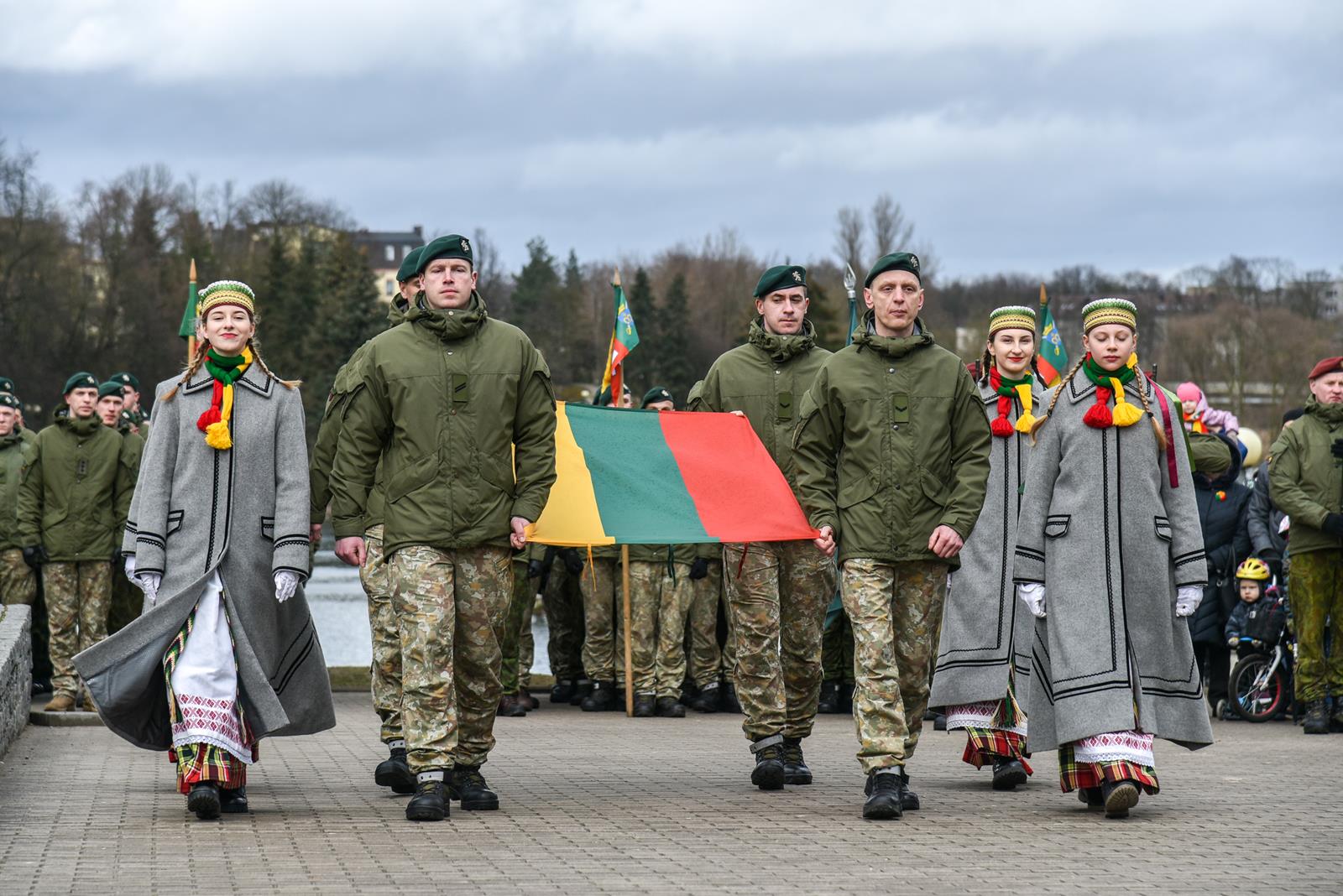 Nepaisydamos vėjuoto, lietingo oro ir virusų grėsmės, į Kovo 11-osios renginius Panevėžyje rinkosi minios.