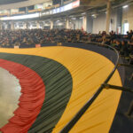 Prieš pat iškilmingą vėliavos pakėlimo ceremoniją baigėsi antradienio ankstų rytą prie Bendruomenių rūmų prasidėjęs tradicinis estafečių bėgimas. Šiųmečiame 30 valandų trukusiame maratone bėgo net 1 001 dalyvis, vyriausiam – 76-eri, o jauniausiam – 3 metai. Dalyviai iš viso nubėgo 400 kilometrų ir 400 metrų, o tai reiškia, kad Panevėžyje pasiektas dar vienas rekordas.