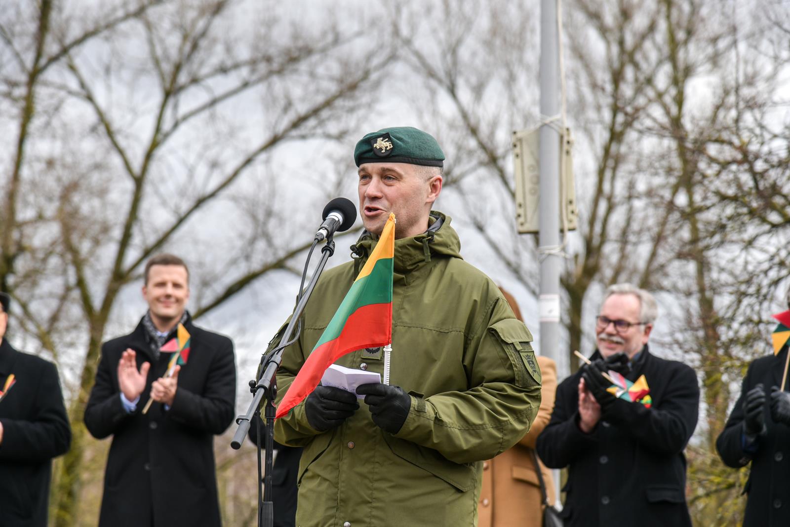 Šventinėje ceremonijoje dalyvavęs Panevėžio vyskupas emeritas Jonas Kauneckas pabrėžė Lietuvą turint kuo didžiuotis – 1990 metų kovo 11-ąją pirmoji pasitraukė iš Sovietų Sąjungos, kaip ir 1918 metų vasario 16-ąją pirmoji pasitraukė iš carinės Rusijos imperijos, o XV a. lietuviai pirmieji pasipriešino mongolams, kad neužkariautų Europos.