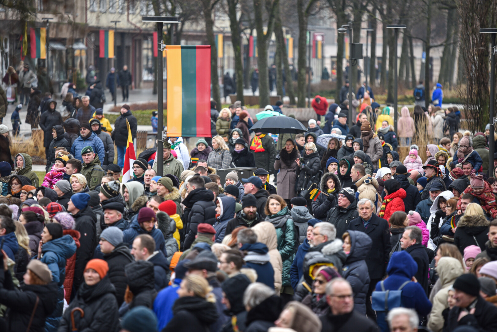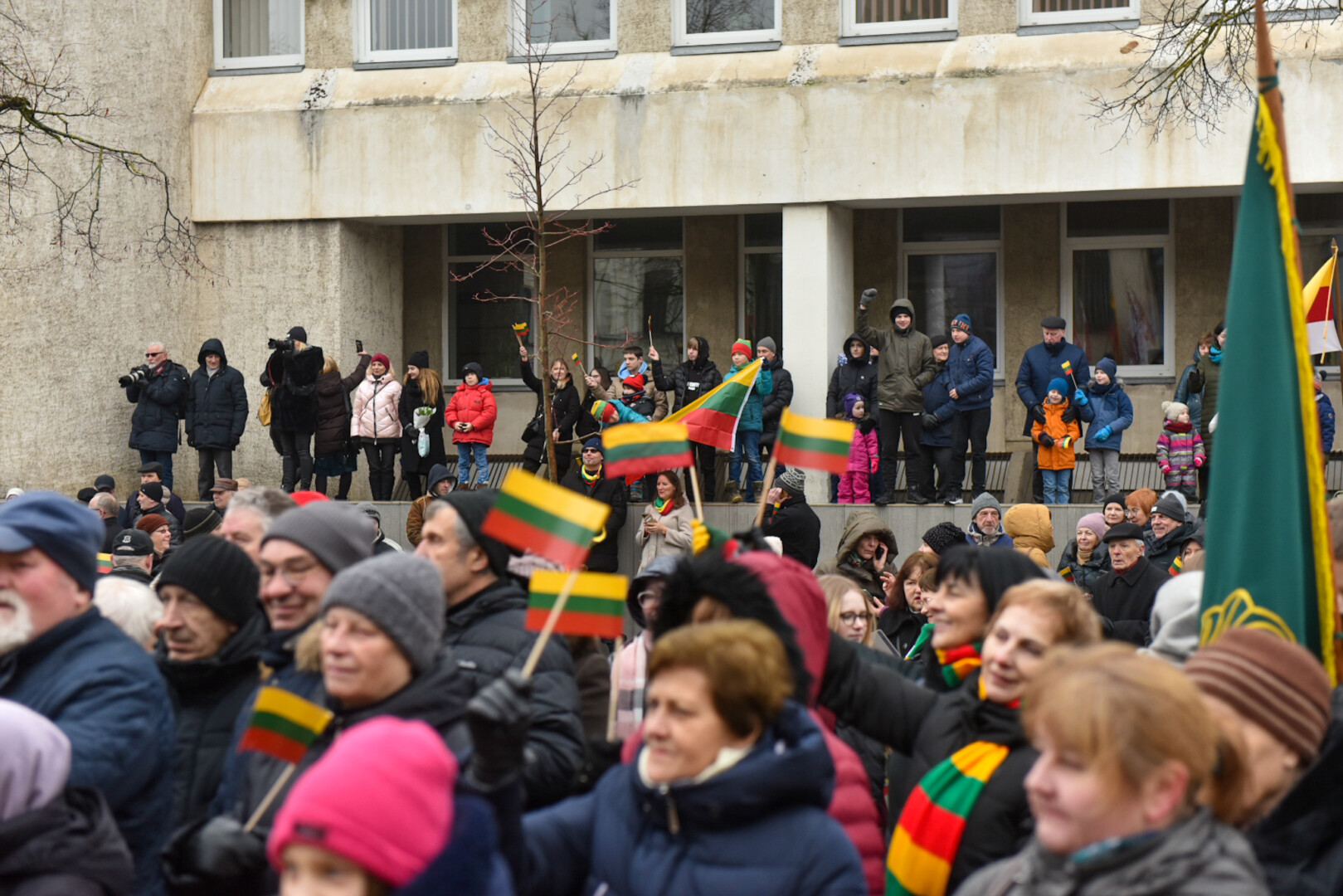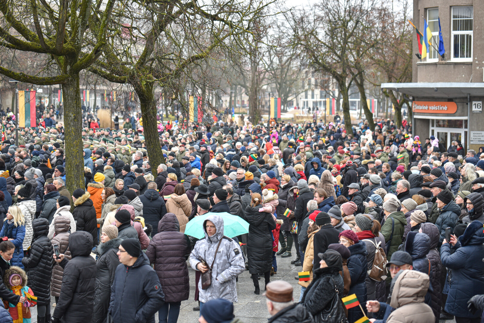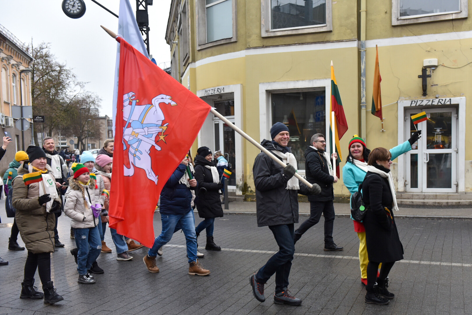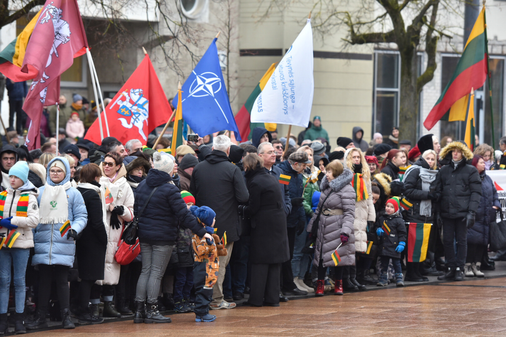 Po vėliavos pakėlimo, palydėto šūvių salvėmis, ceremonijos žmonių upė ištvino Vasario 16-osios gatvę – šventinė eisena nusidriekė į Panevėžio areną.