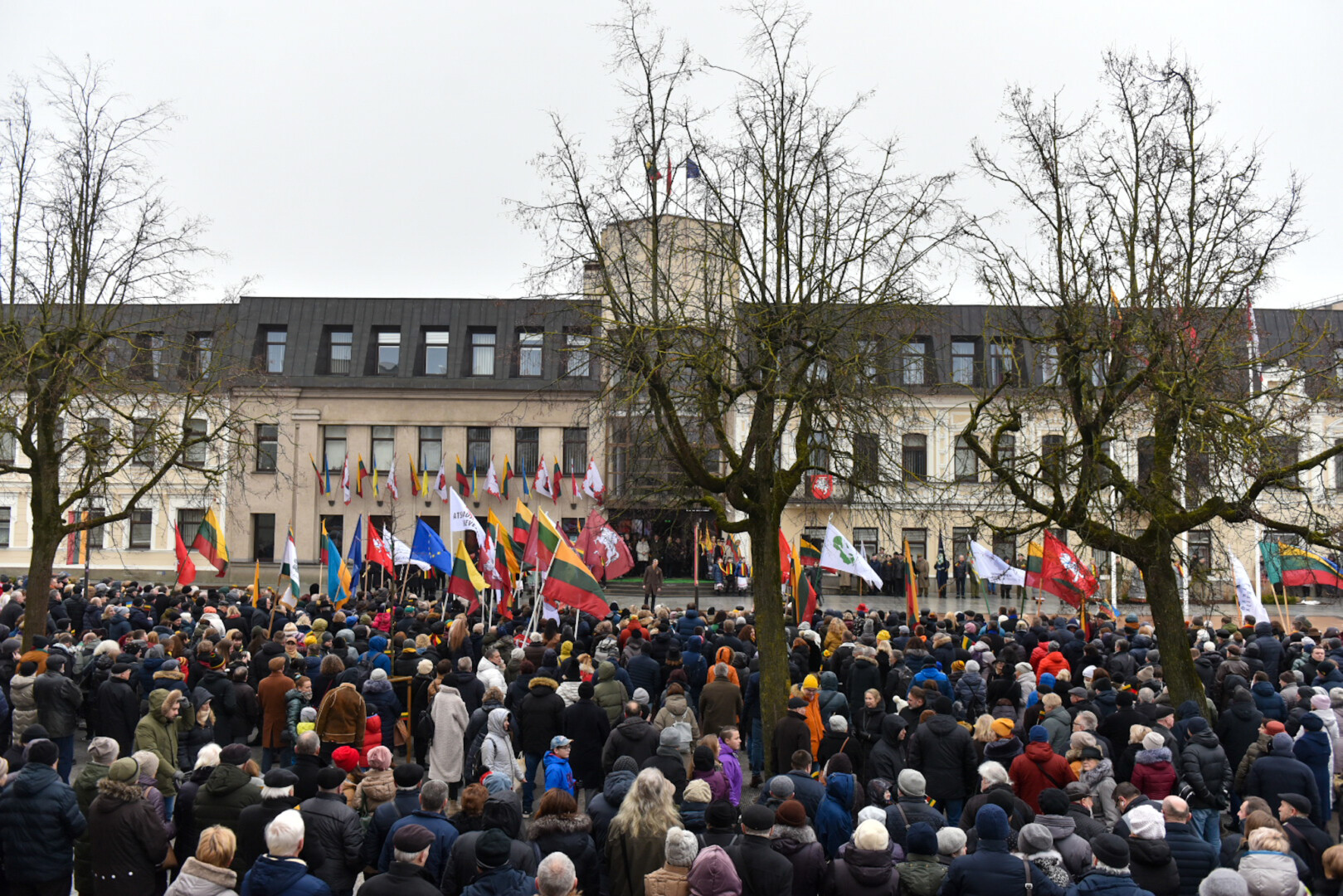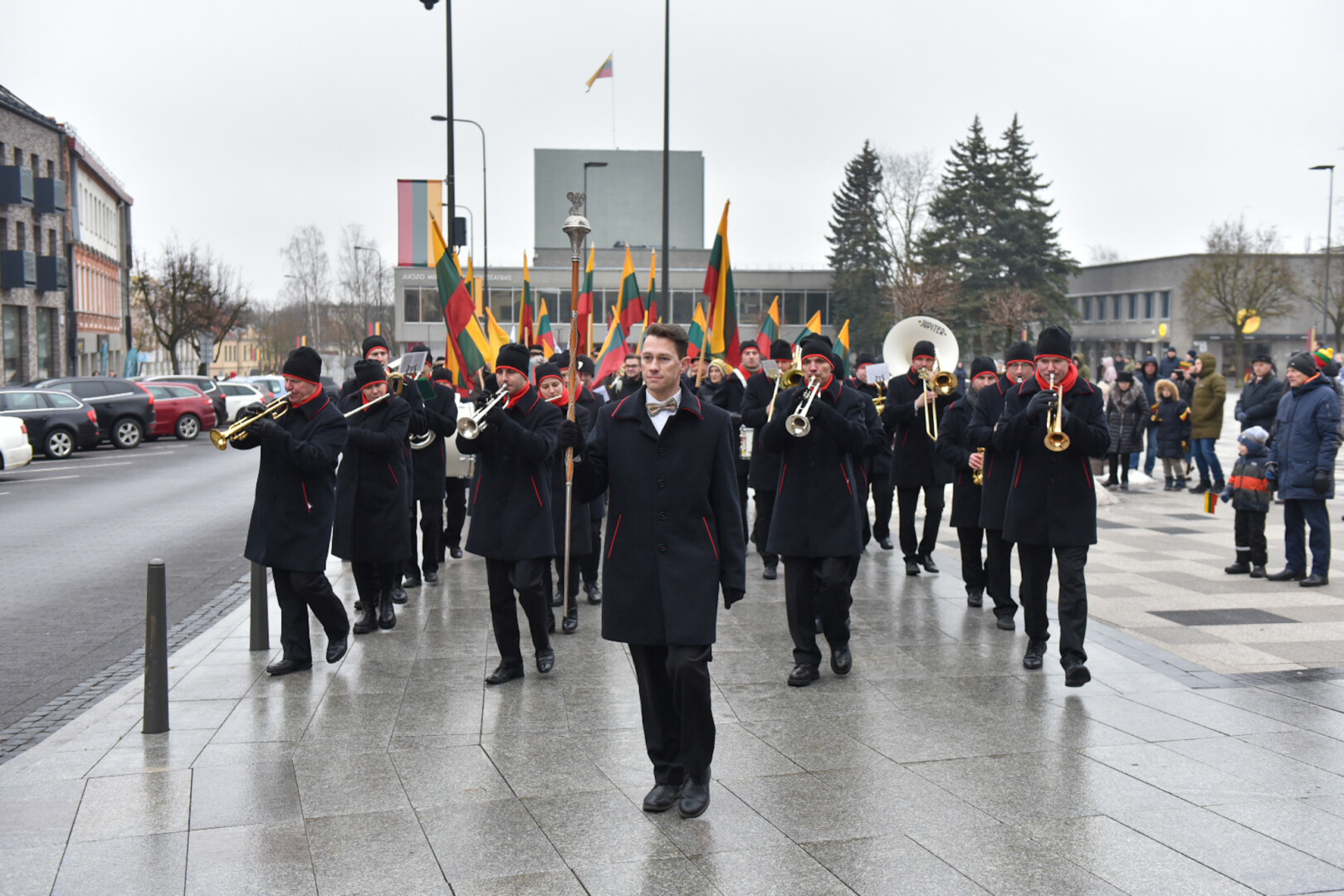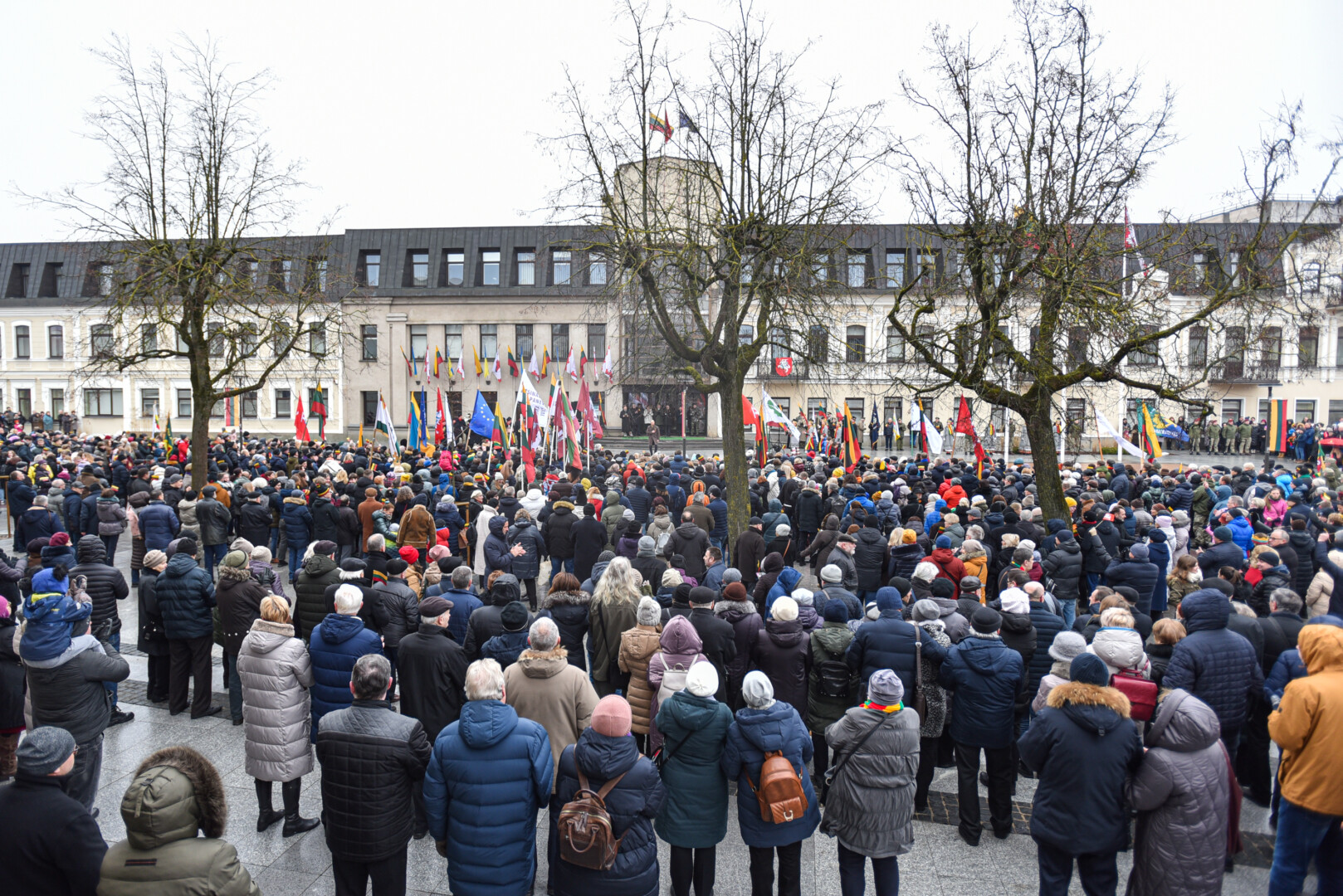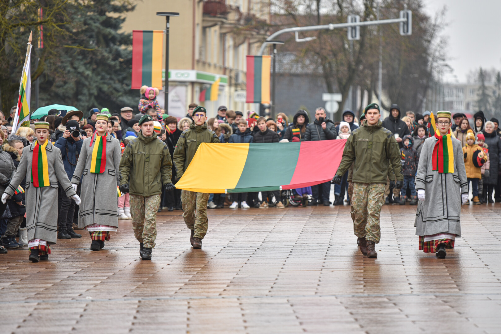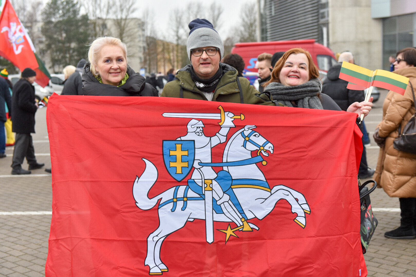 Po vėliavos pakėlimo, palydėto šūvių salvėmis, ceremonijos žmonių upė ištvino Vasario 16-osios gatvę – šventinė eisena nusidriekė į Panevėžio areną.