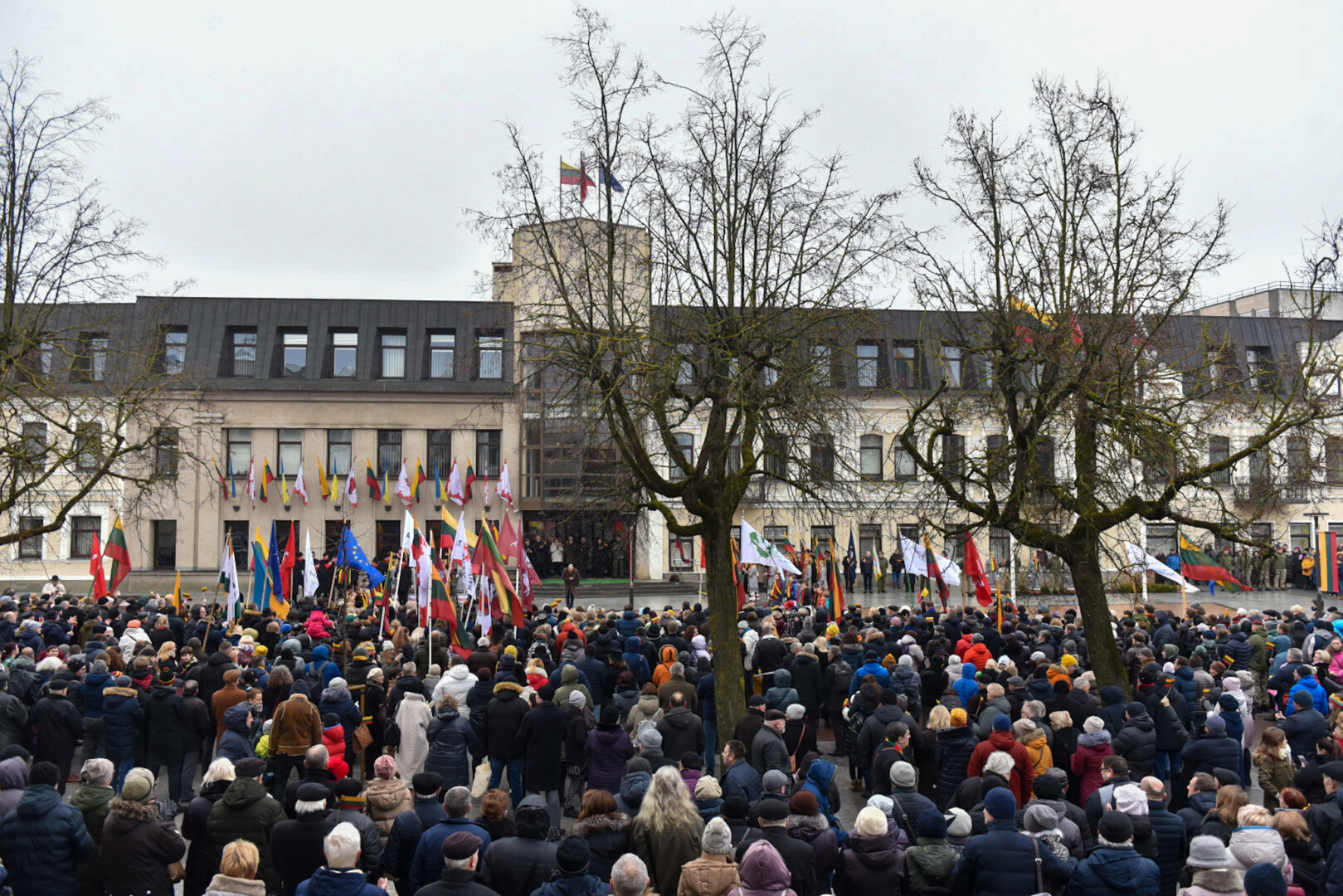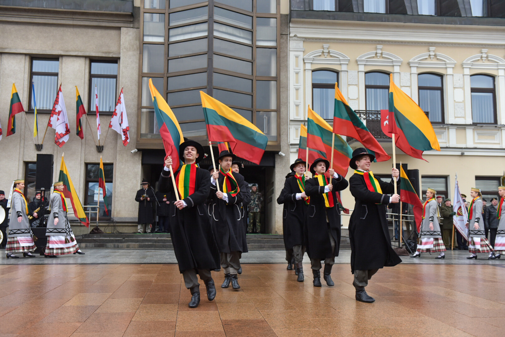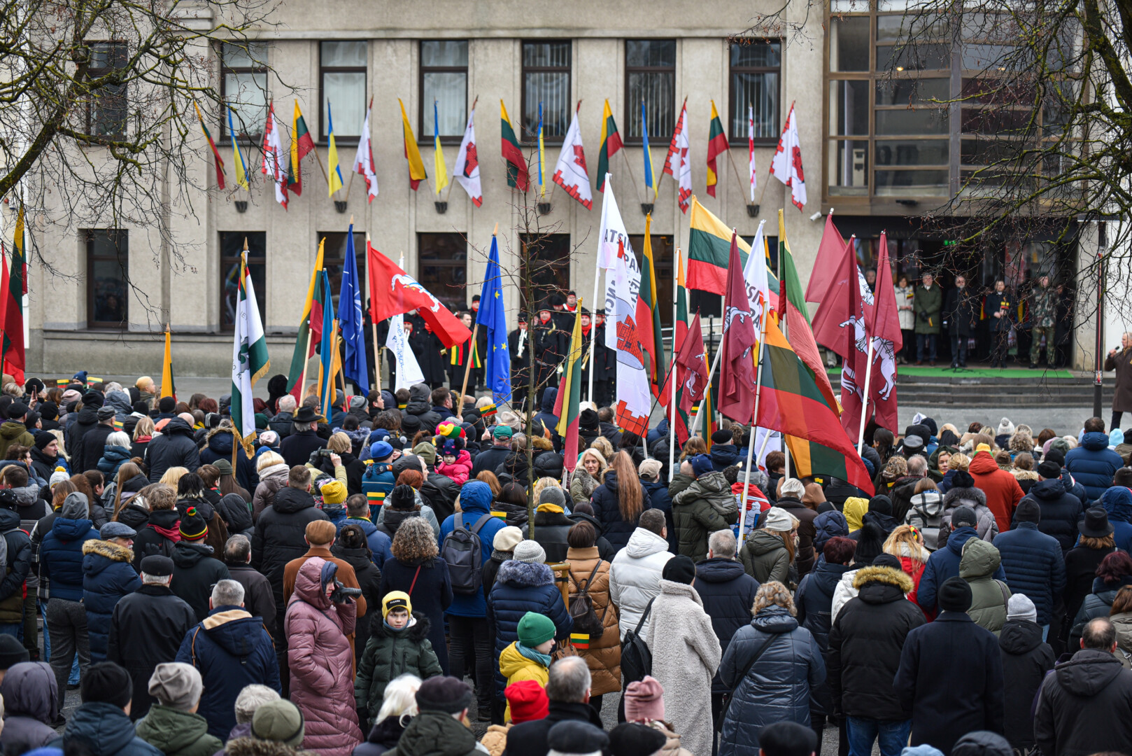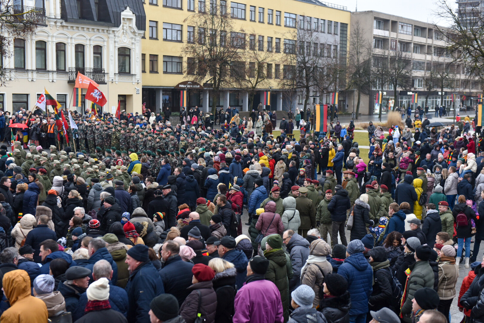 Po vėliavos pakėlimo, palydėto šūvių salvėmis, ceremonijos žmonių upė ištvino Vasario 16-osios gatvę – šventinė eisena nusidriekė į Panevėžio areną.