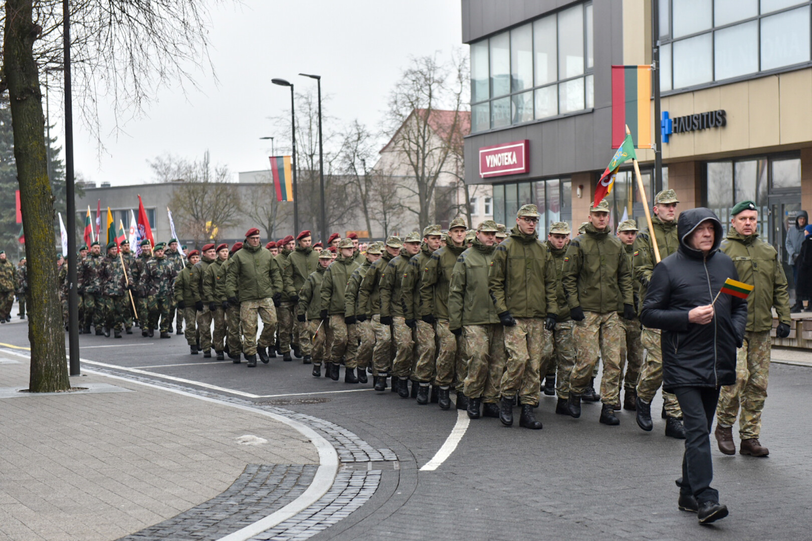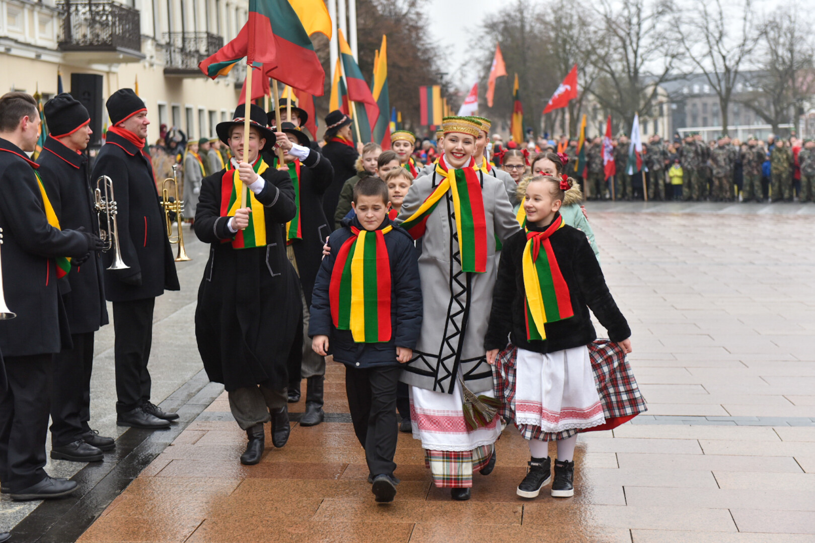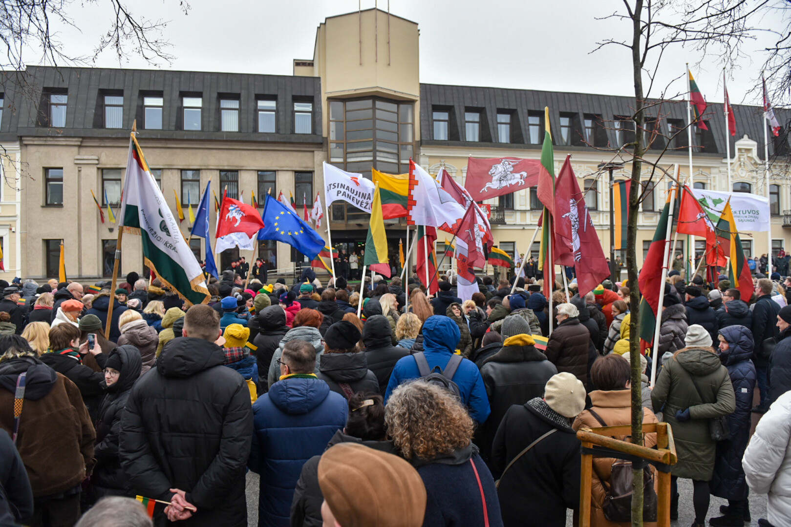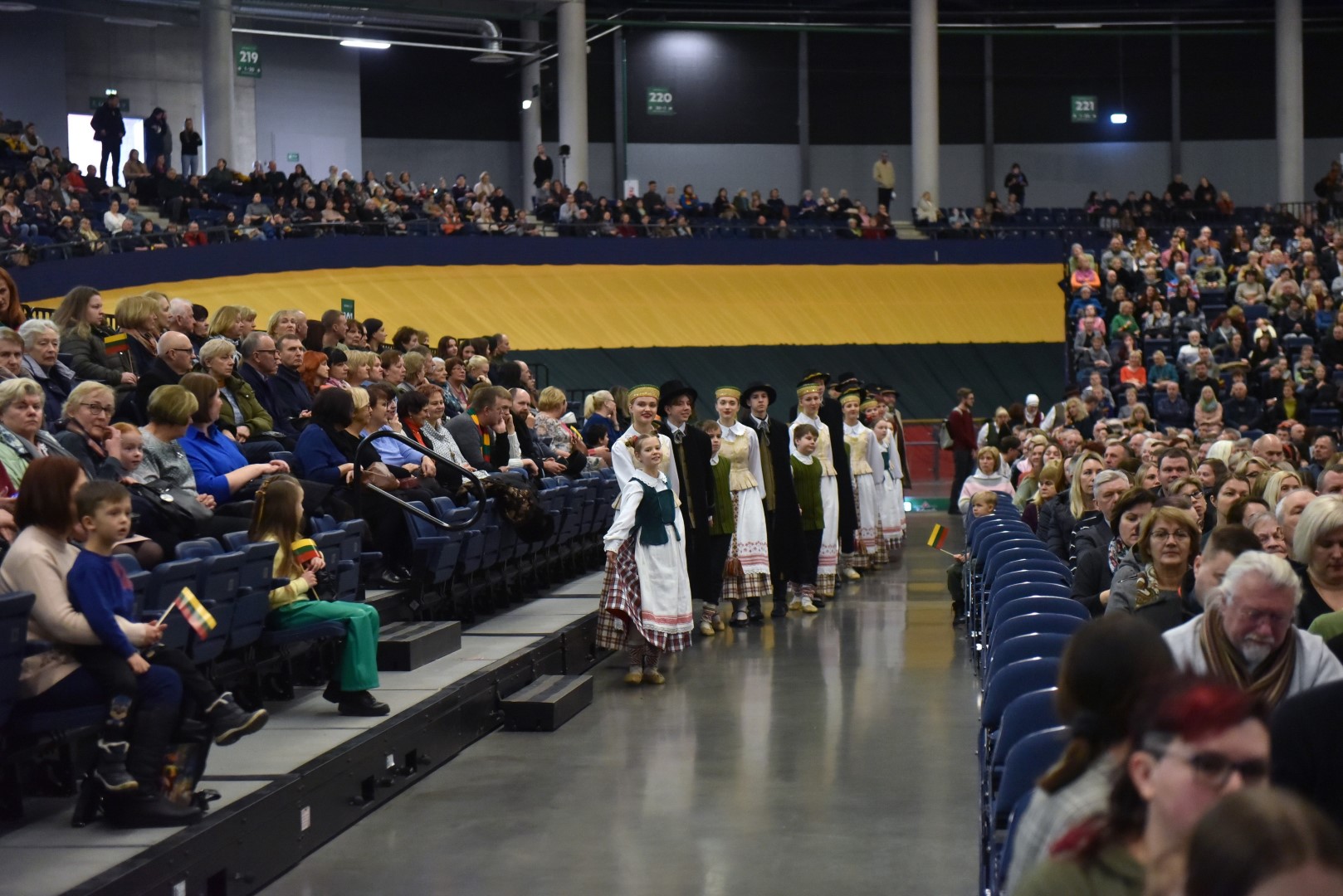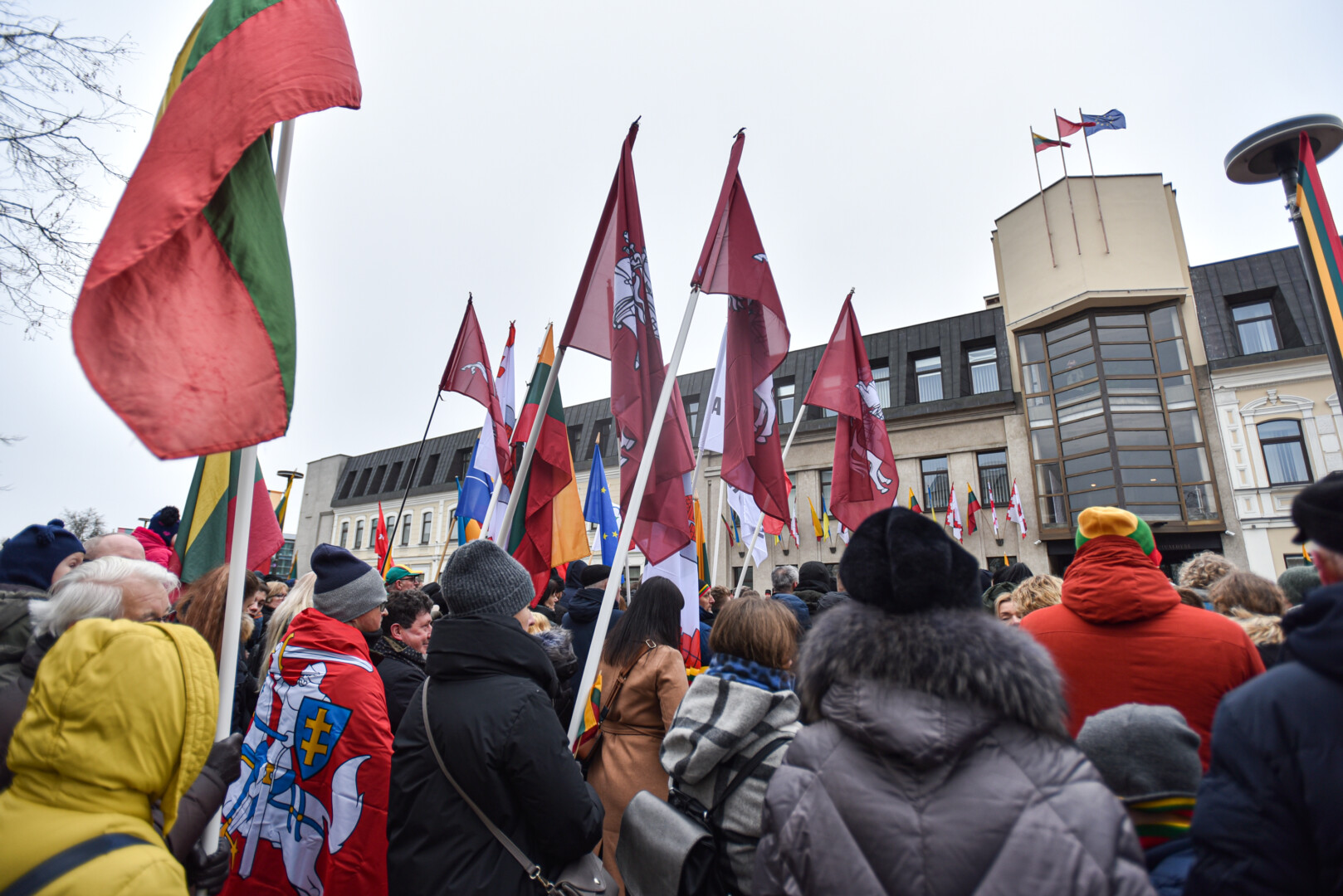 Po vėliavos pakėlimo, palydėto šūvių salvėmis, ceremonijos žmonių upė ištvino Vasario 16-osios gatvę – šventinė eisena nusidriekė į Panevėžio areną.