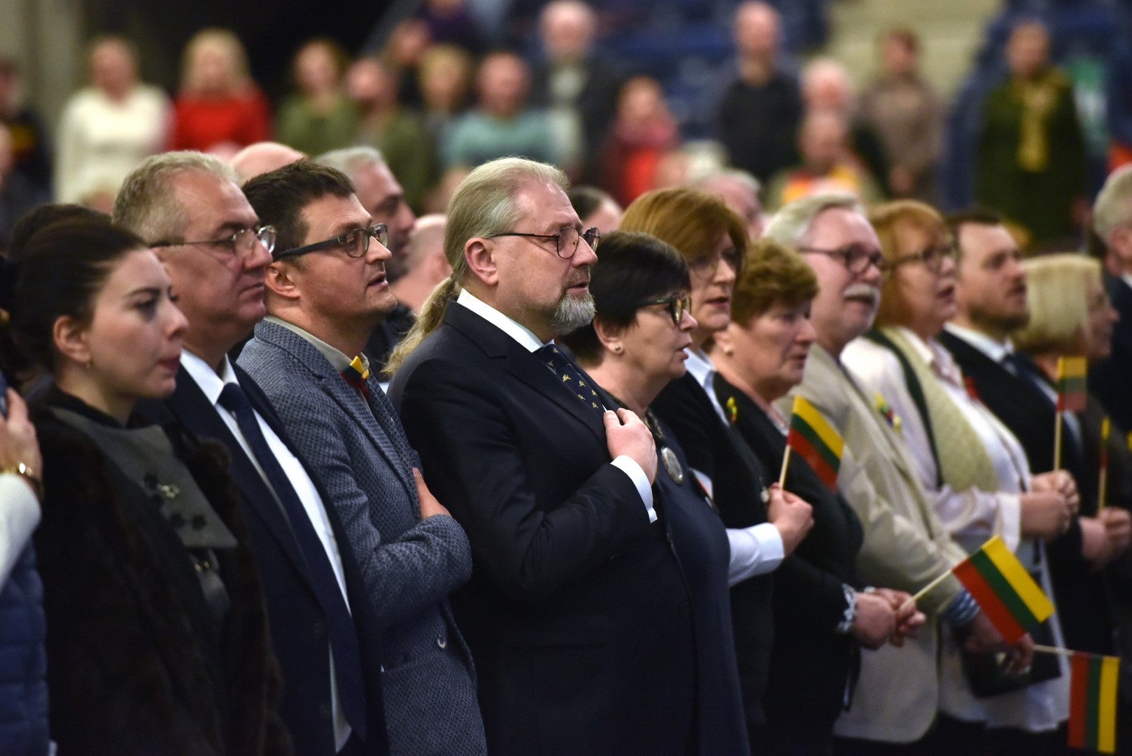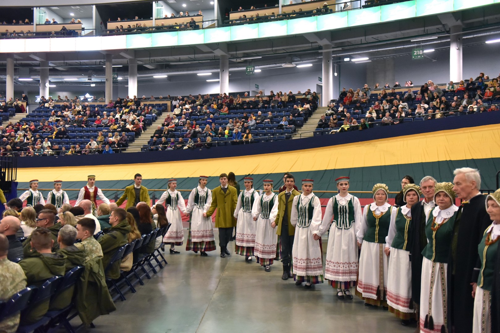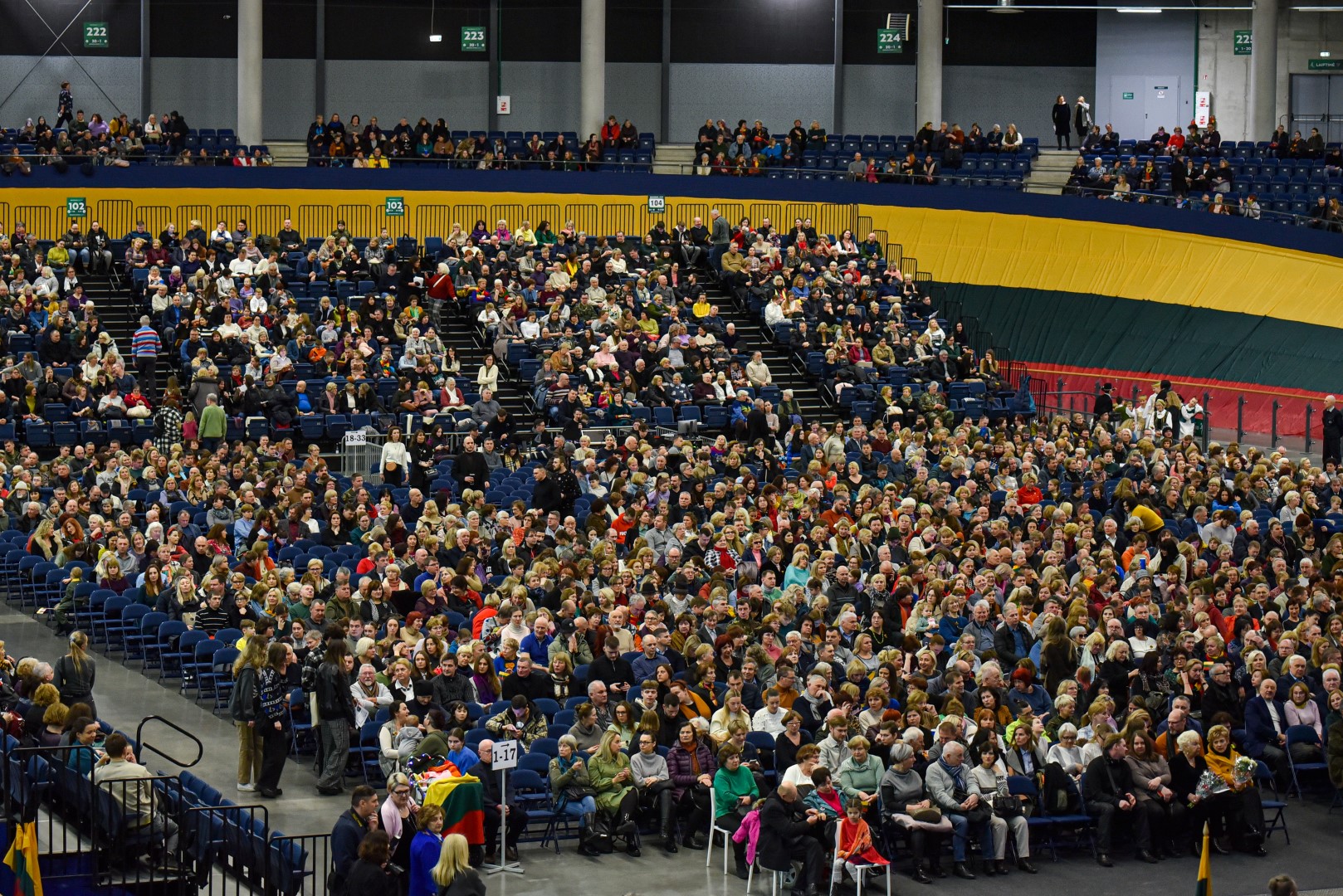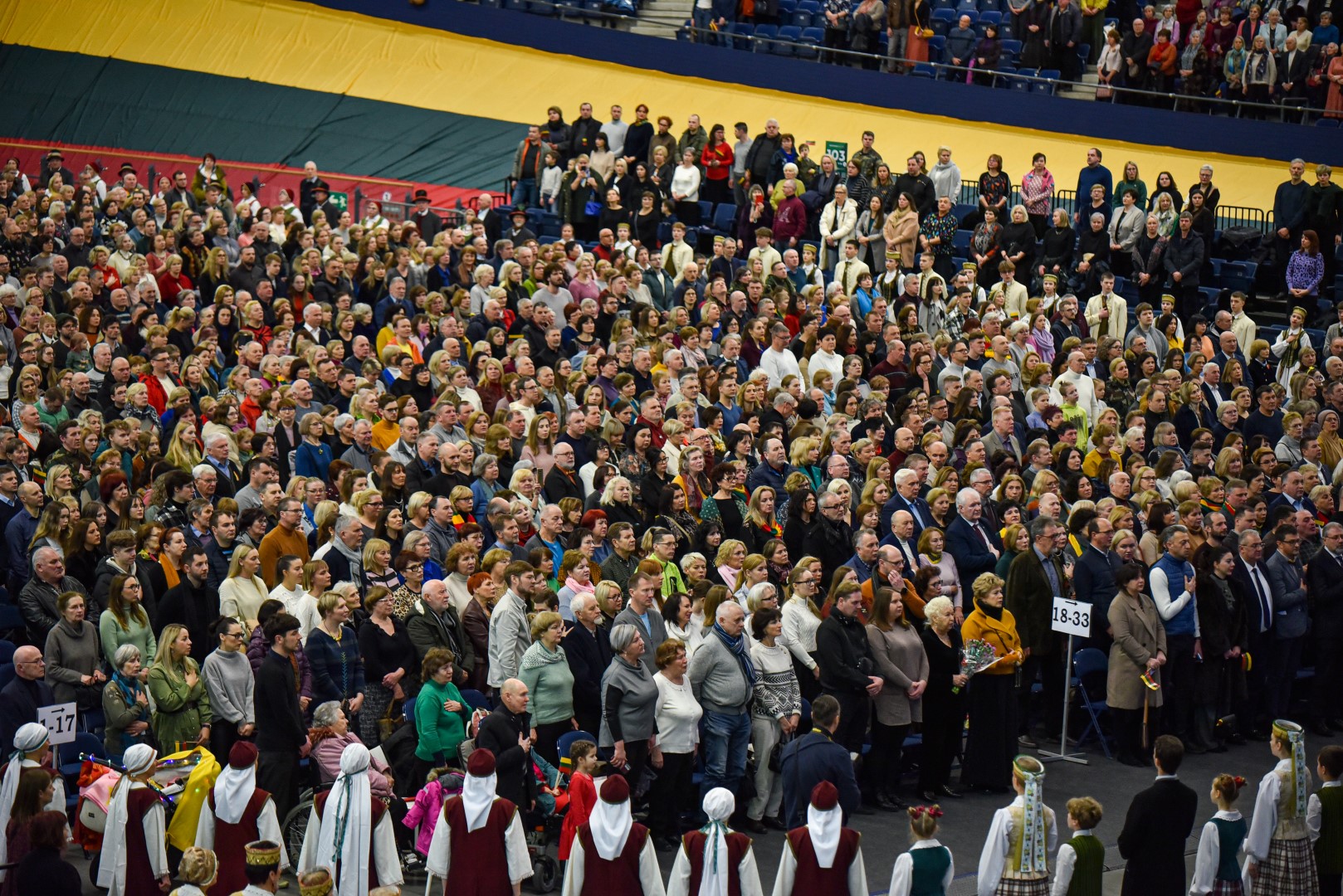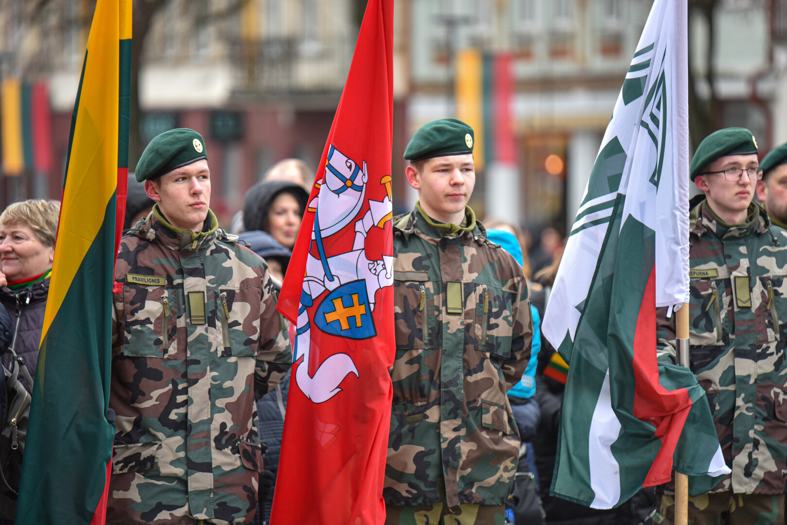 Po vėliavos pakėlimo, palydėto šūvių salvėmis, ceremonijos žmonių upė ištvino Vasario 16-osios gatvę – šventinė eisena nusidriekė į Panevėžio areną.
