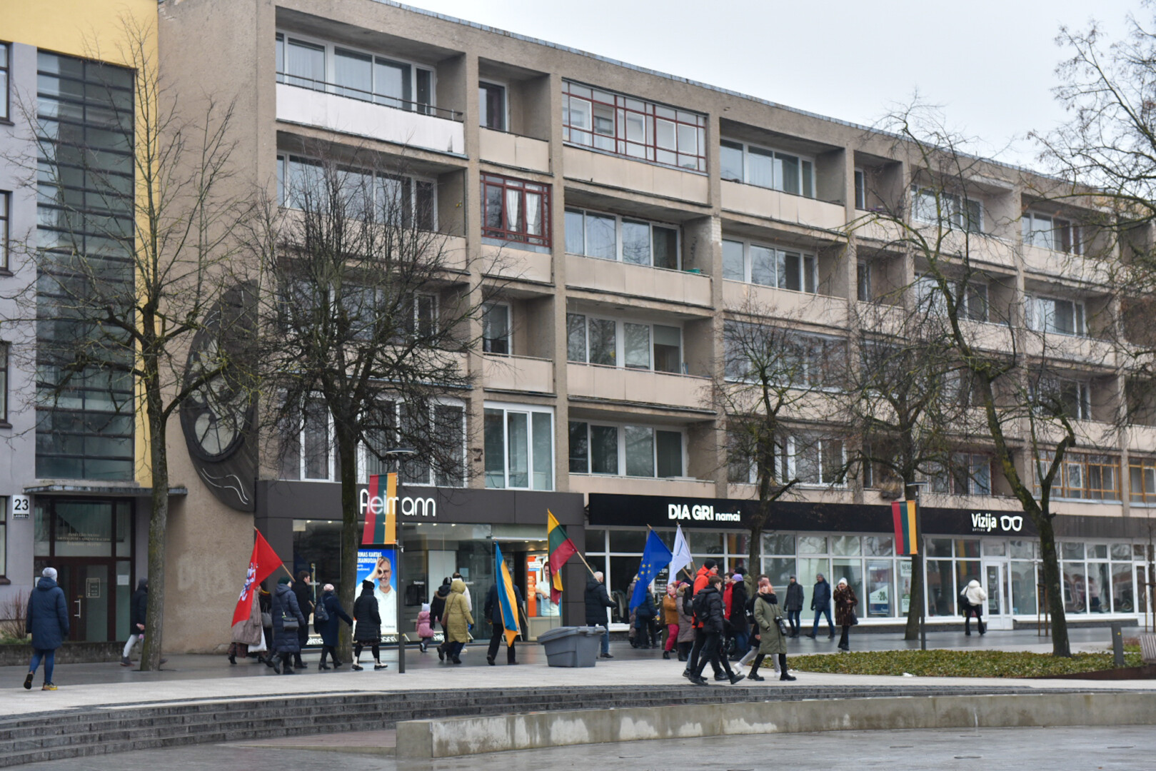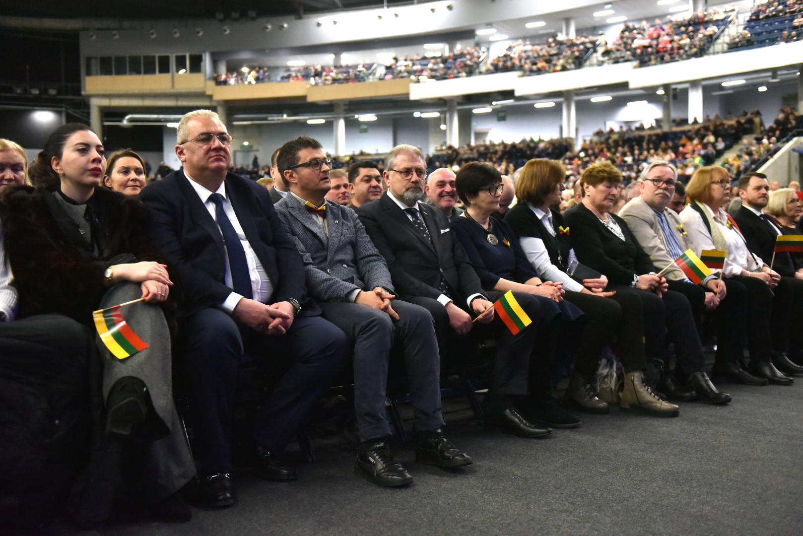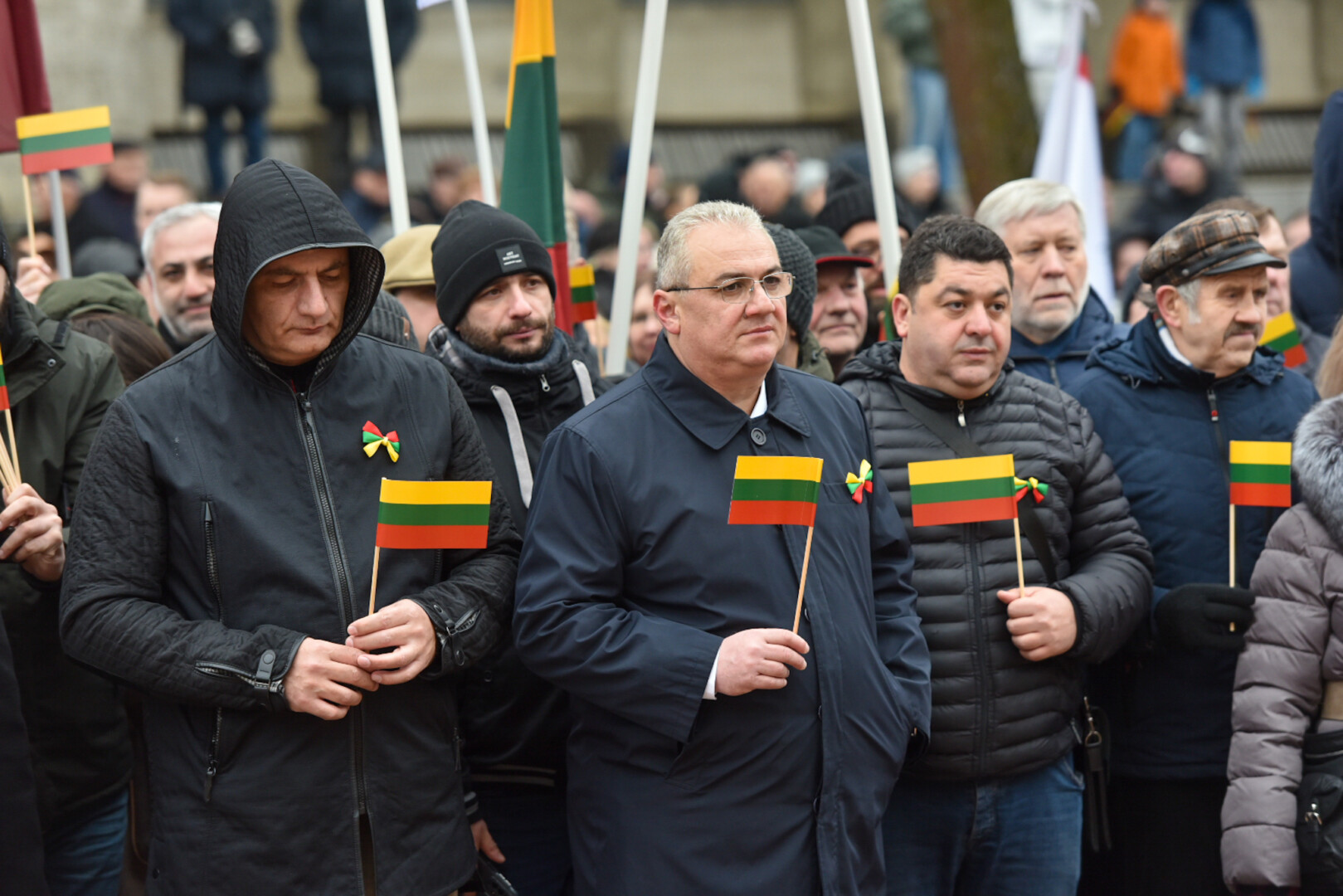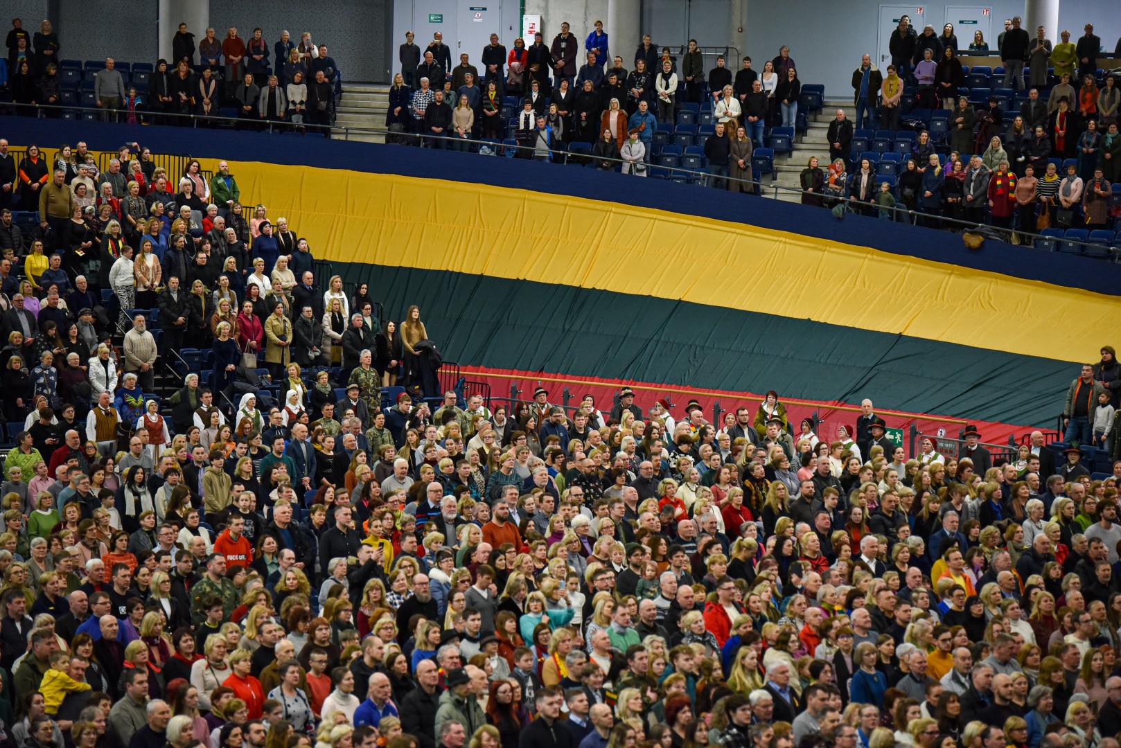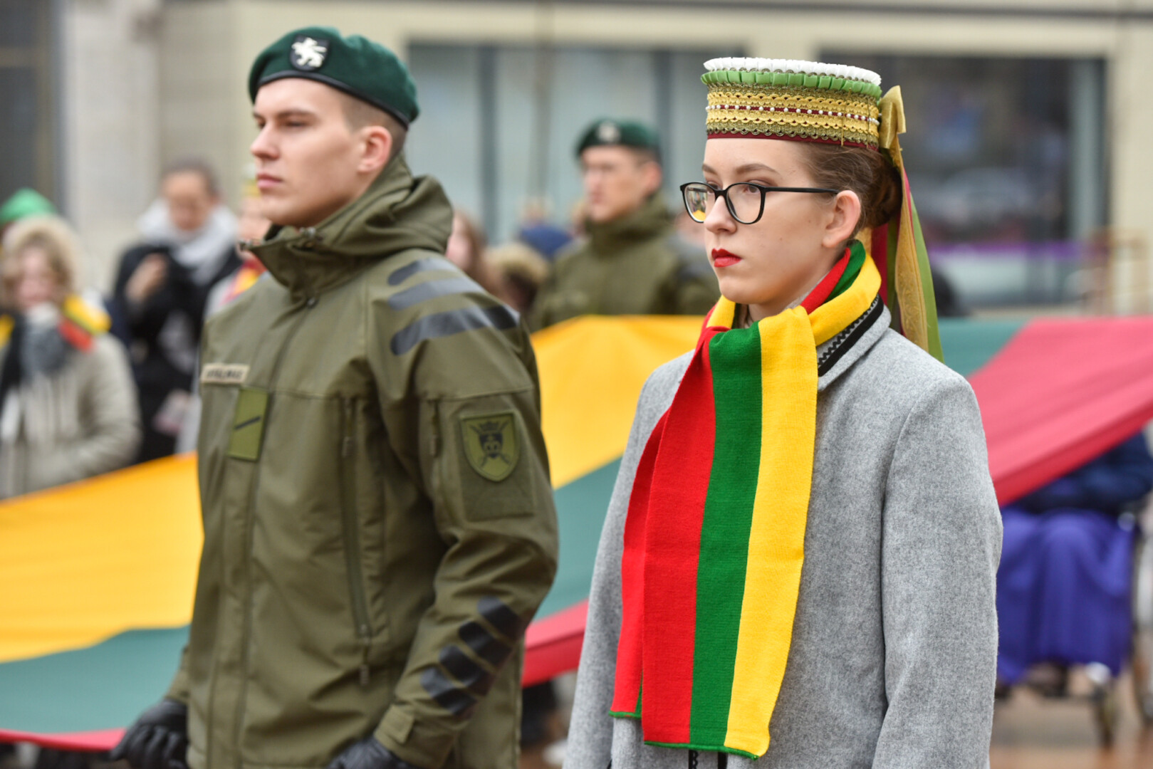 Po vėliavos pakėlimo, palydėto šūvių salvėmis, ceremonijos žmonių upė ištvino Vasario 16-osios gatvę – šventinė eisena nusidriekė į Panevėžio areną.