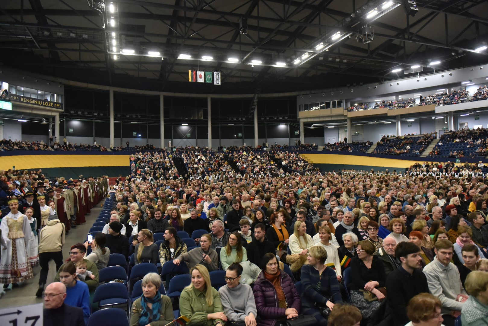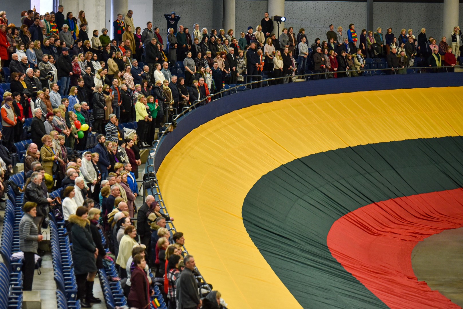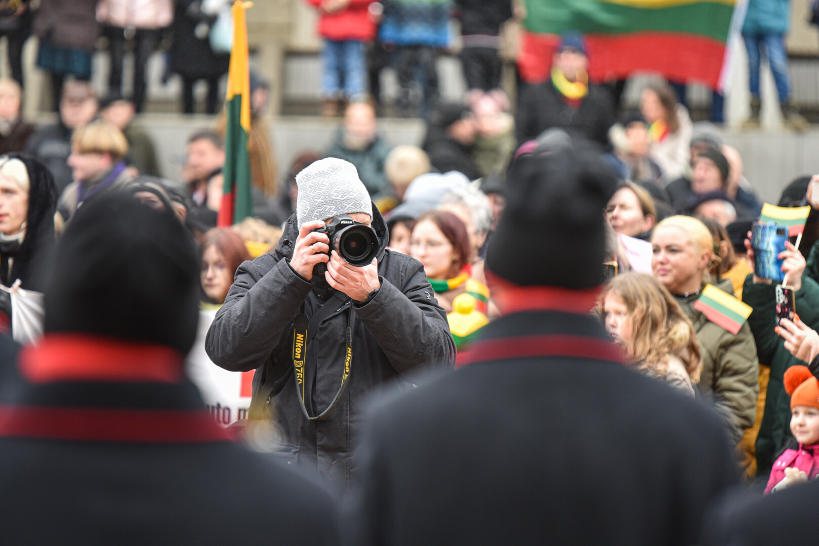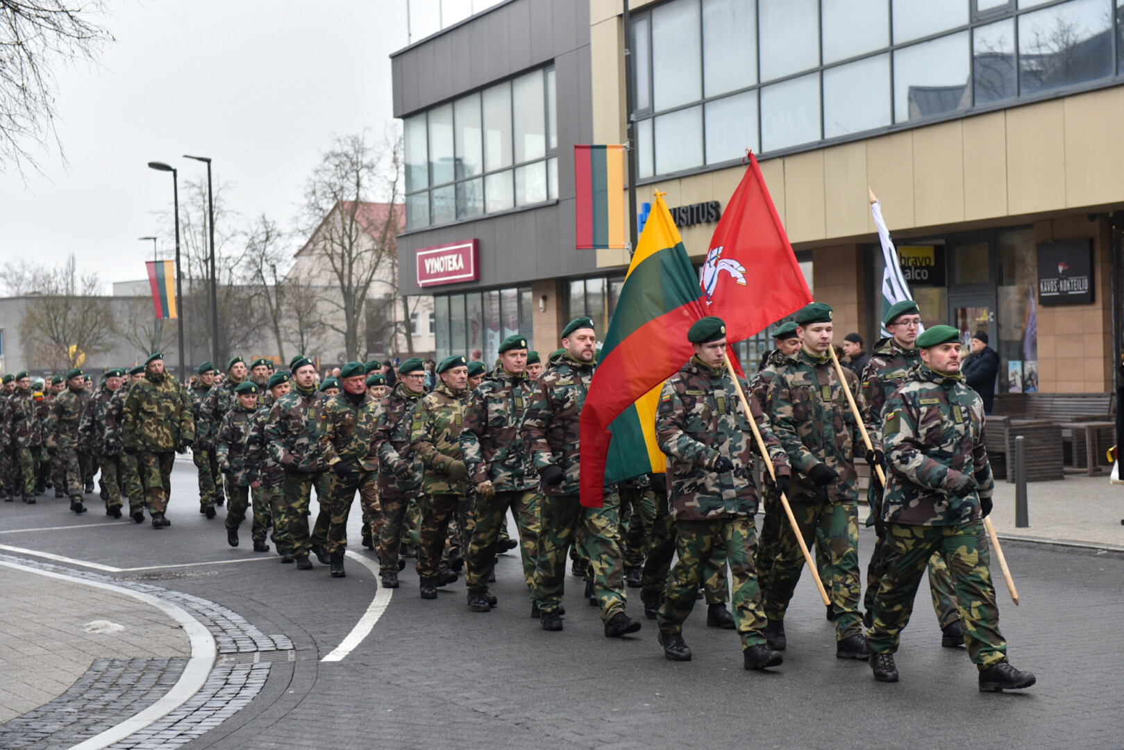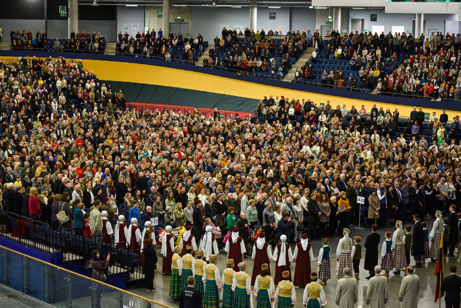 Po vėliavos pakėlimo, palydėto šūvių salvėmis, ceremonijos žmonių upė ištvino Vasario 16-osios gatvę – šventinė eisena nusidriekė į Panevėžio areną.