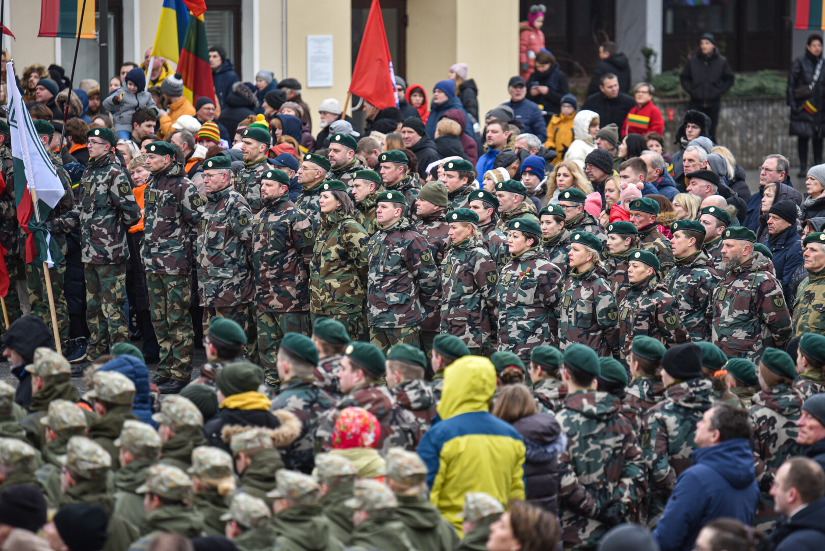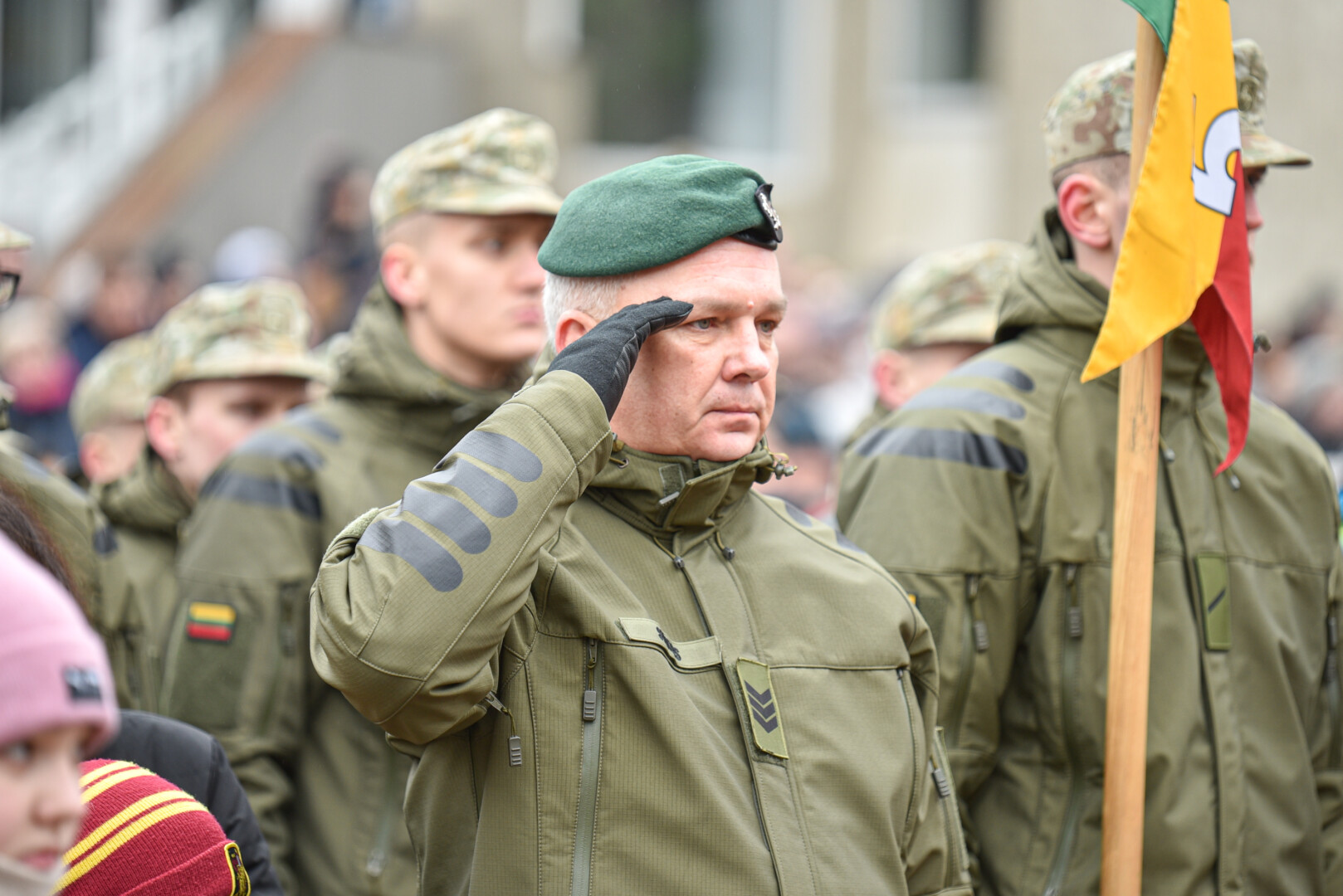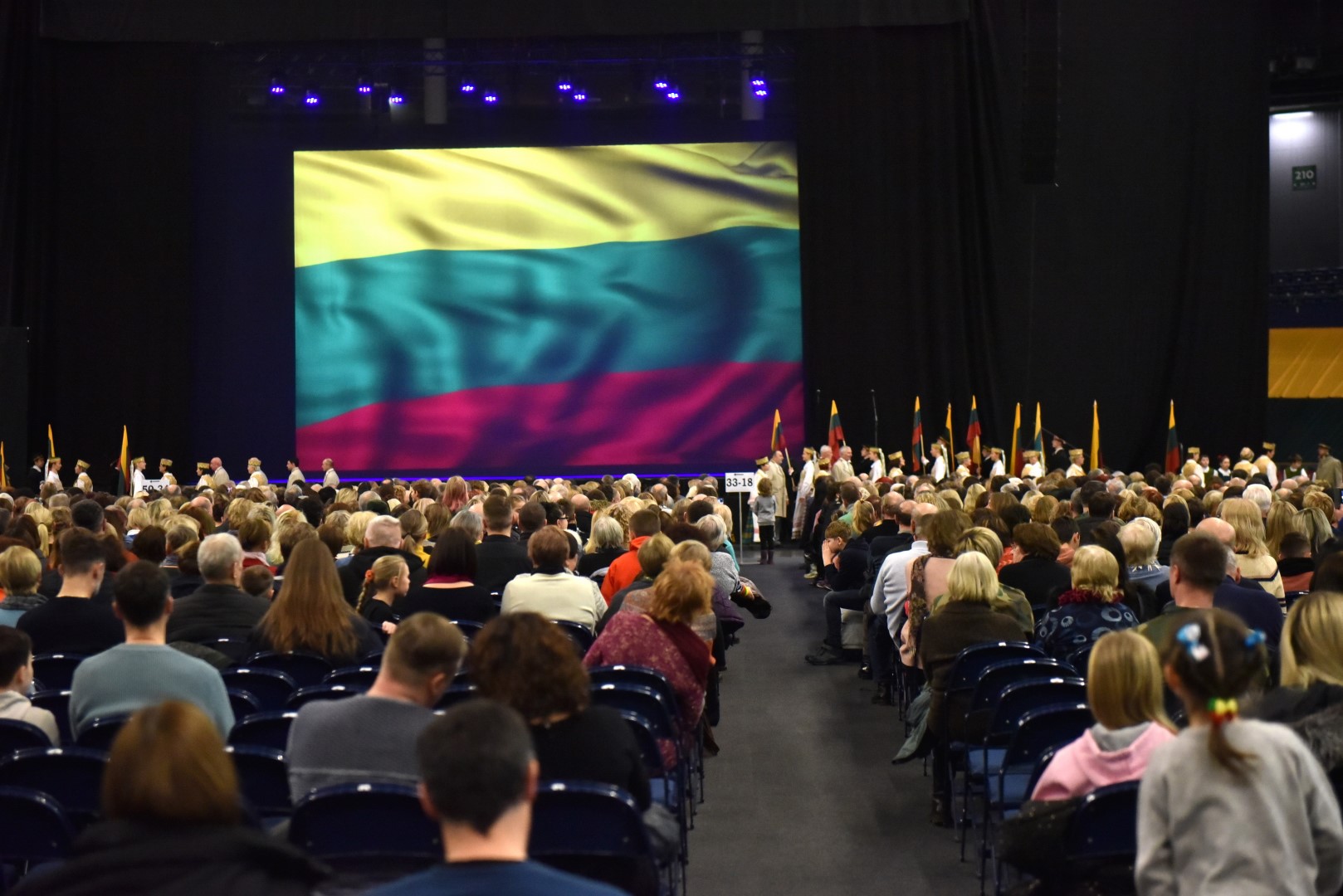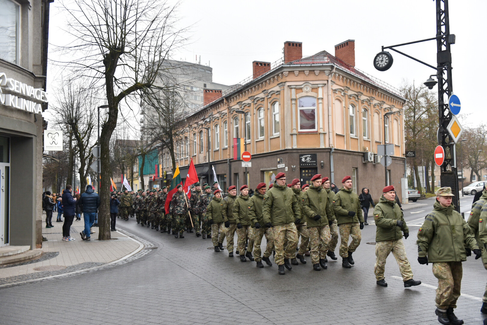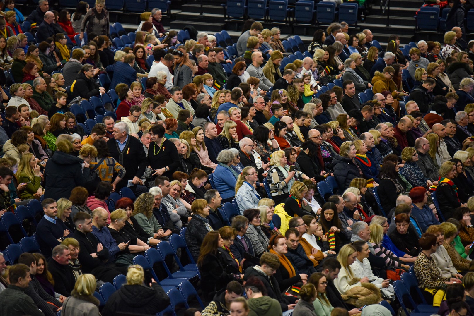Po vėliavos pakėlimo, palydėto šūvių salvėmis, ceremonijos žmonių upė ištvino Vasario 16-osios gatvę – šventinė eisena nusidriekė į Panevėžio areną.