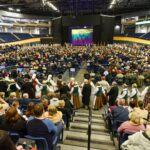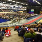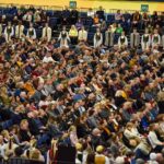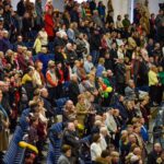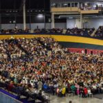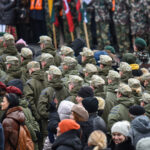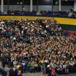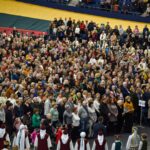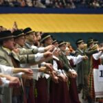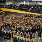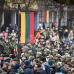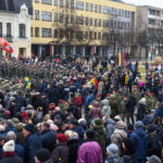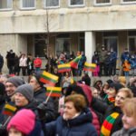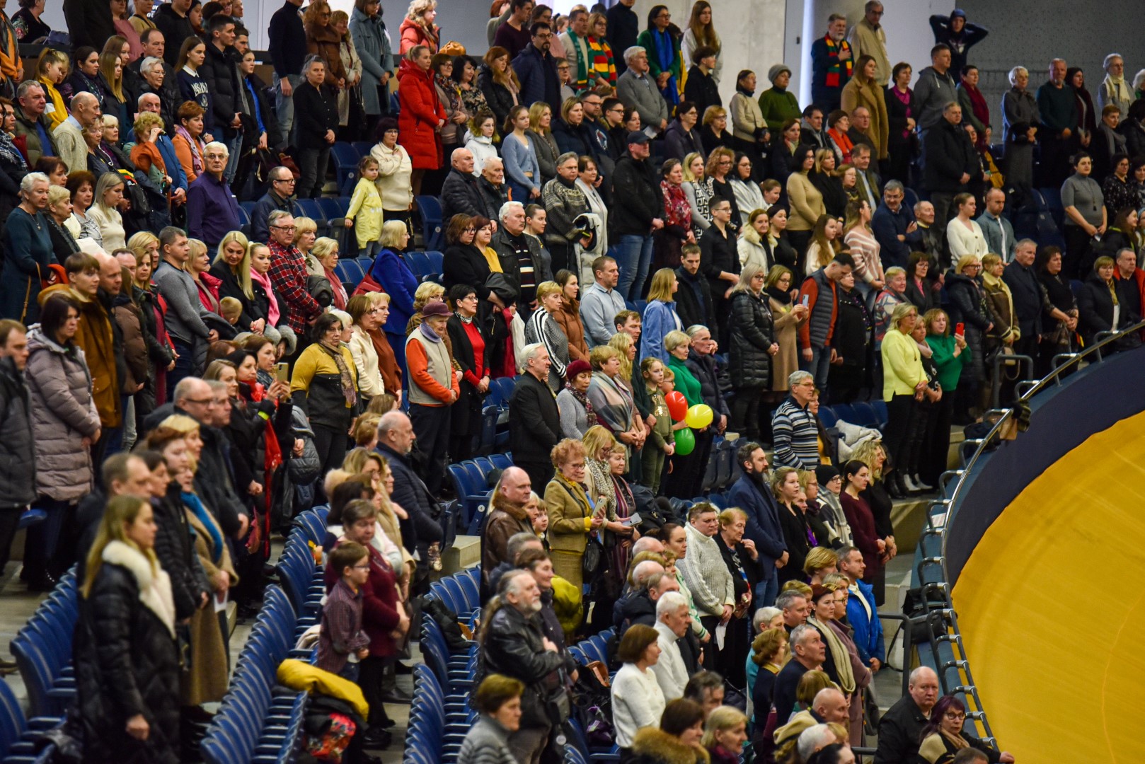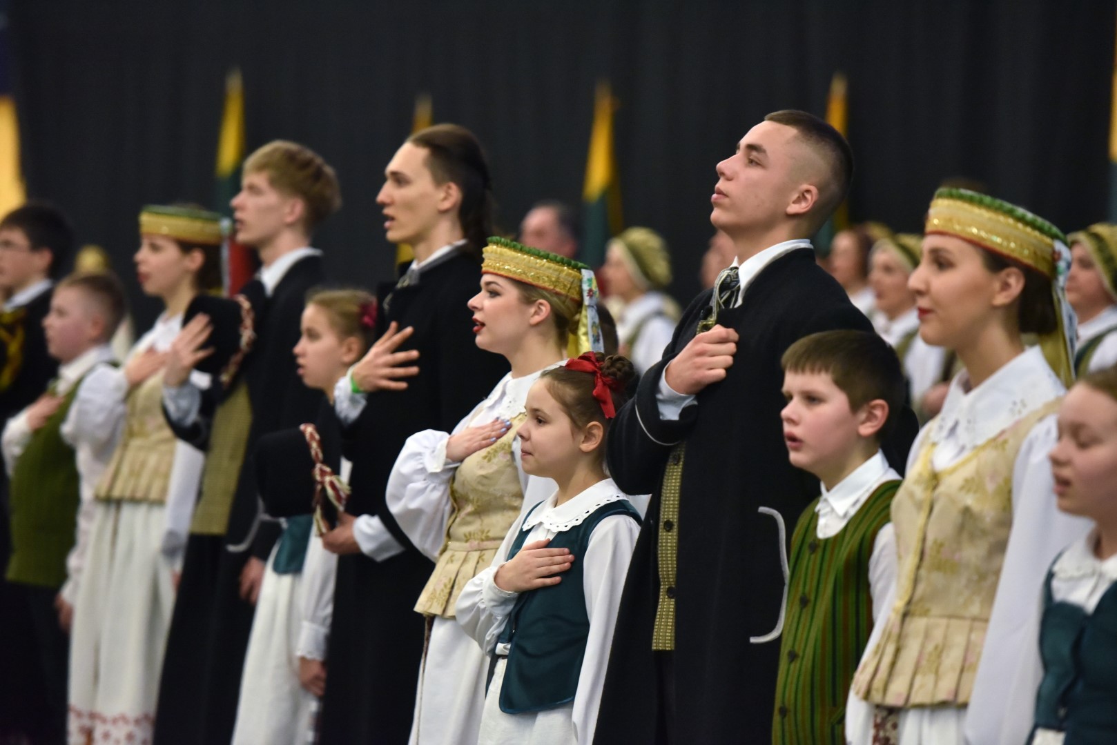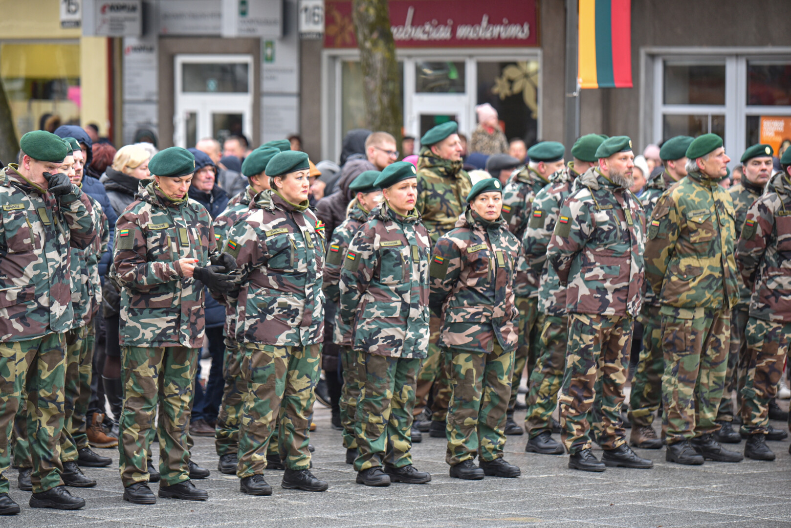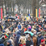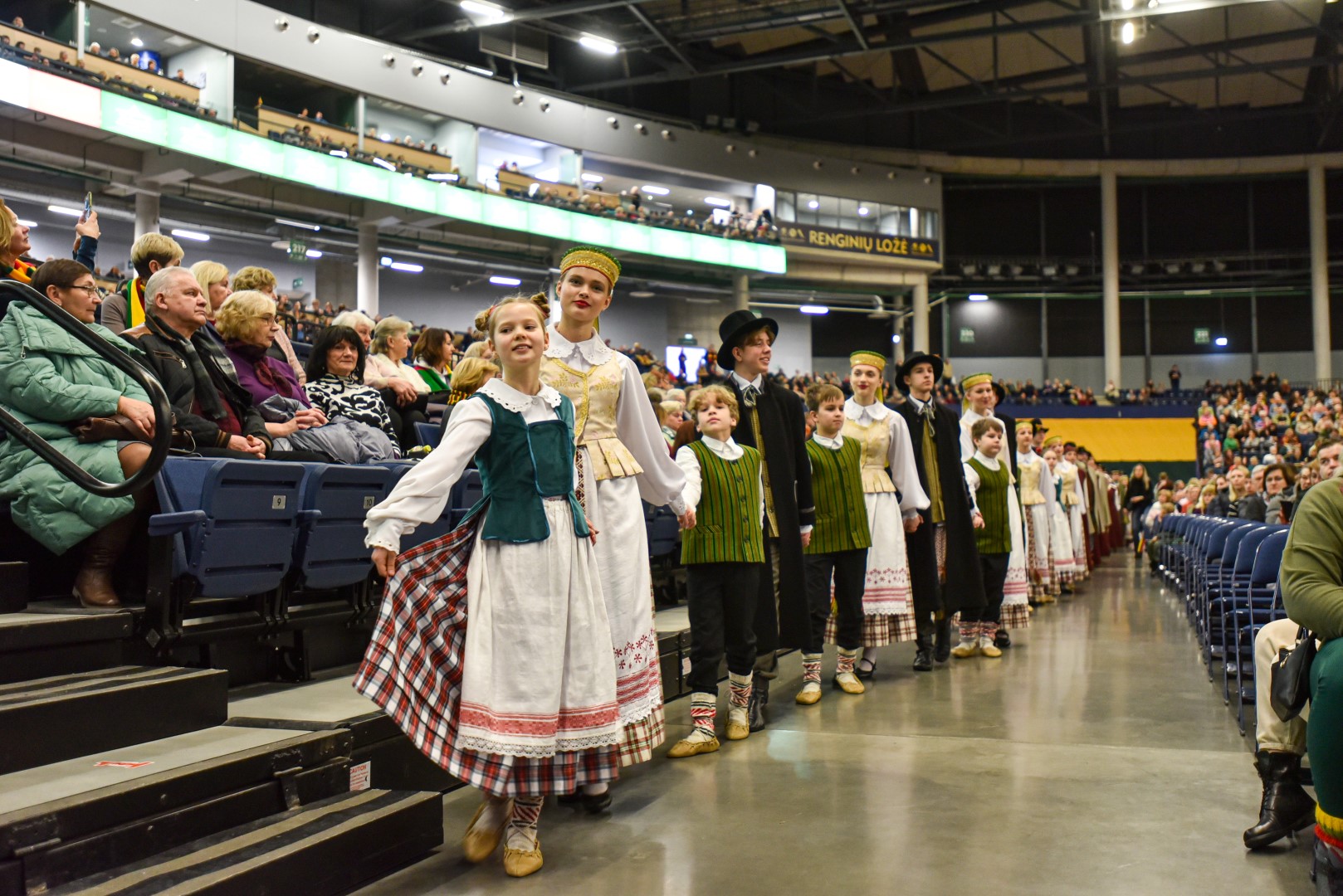 Po vėliavos pakėlimo, palydėto šūvių salvėmis, ceremonijos žmonių upė ištvino Vasario 16-osios gatvę – šventinė eisena nusidriekė į Panevėžio areną.