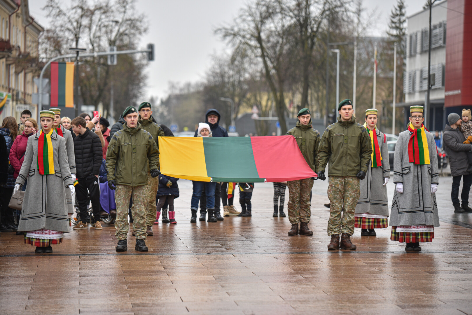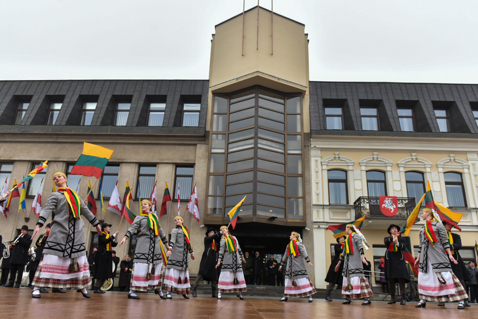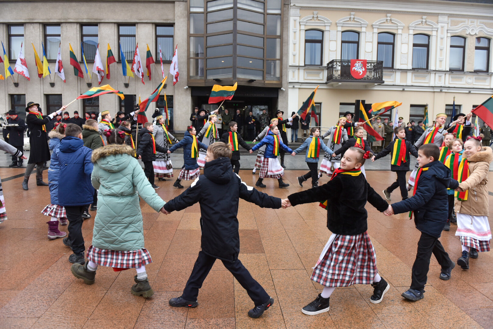Trispalvėmis pasipuošusi Aukštaitijos sostinė švenčia Vasario 16-ąją – Lietuvos valstybės atkūrimo dieną.