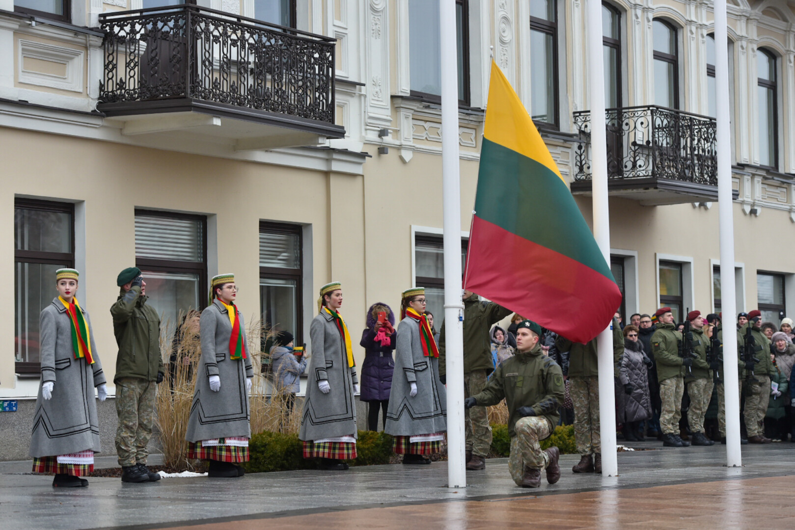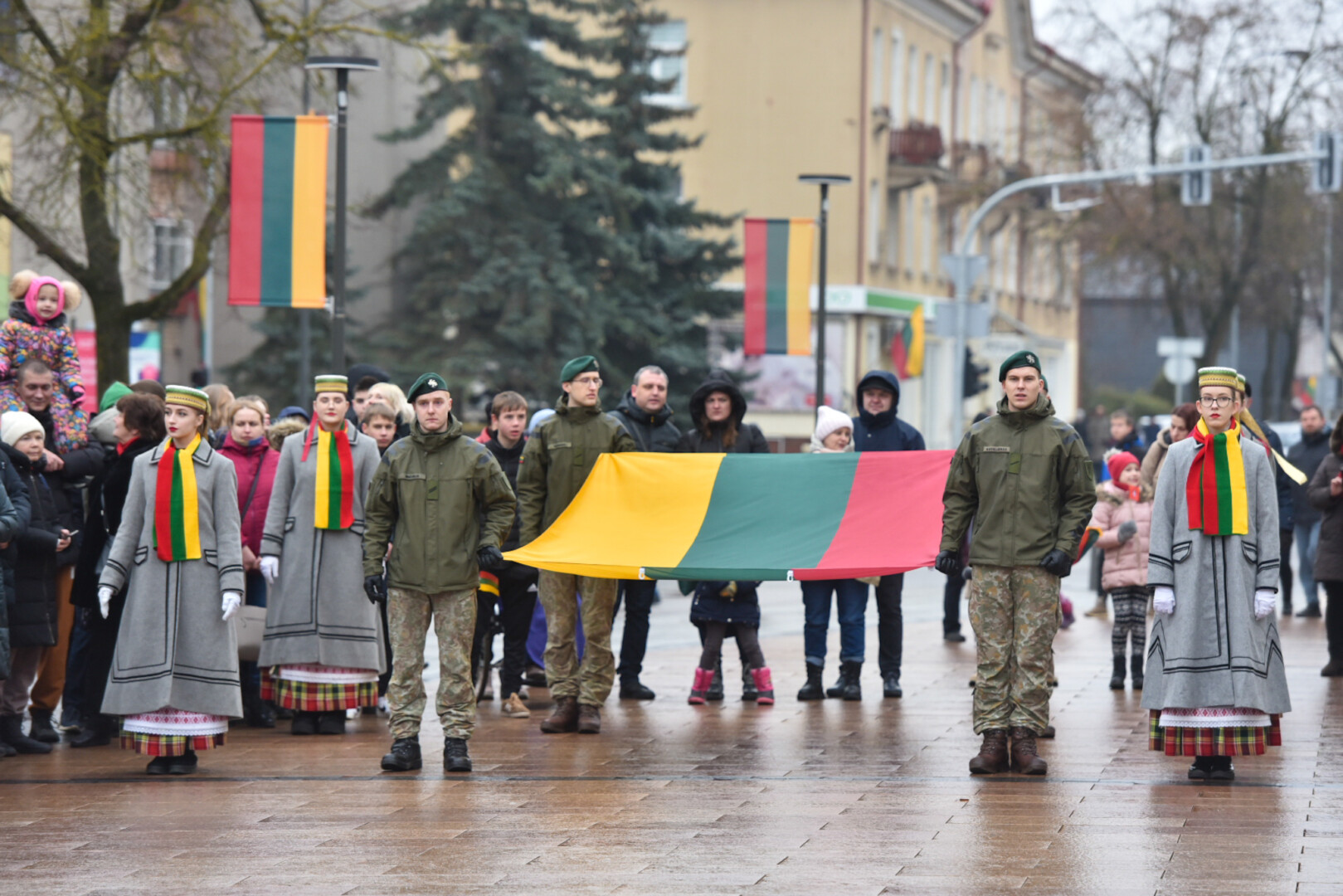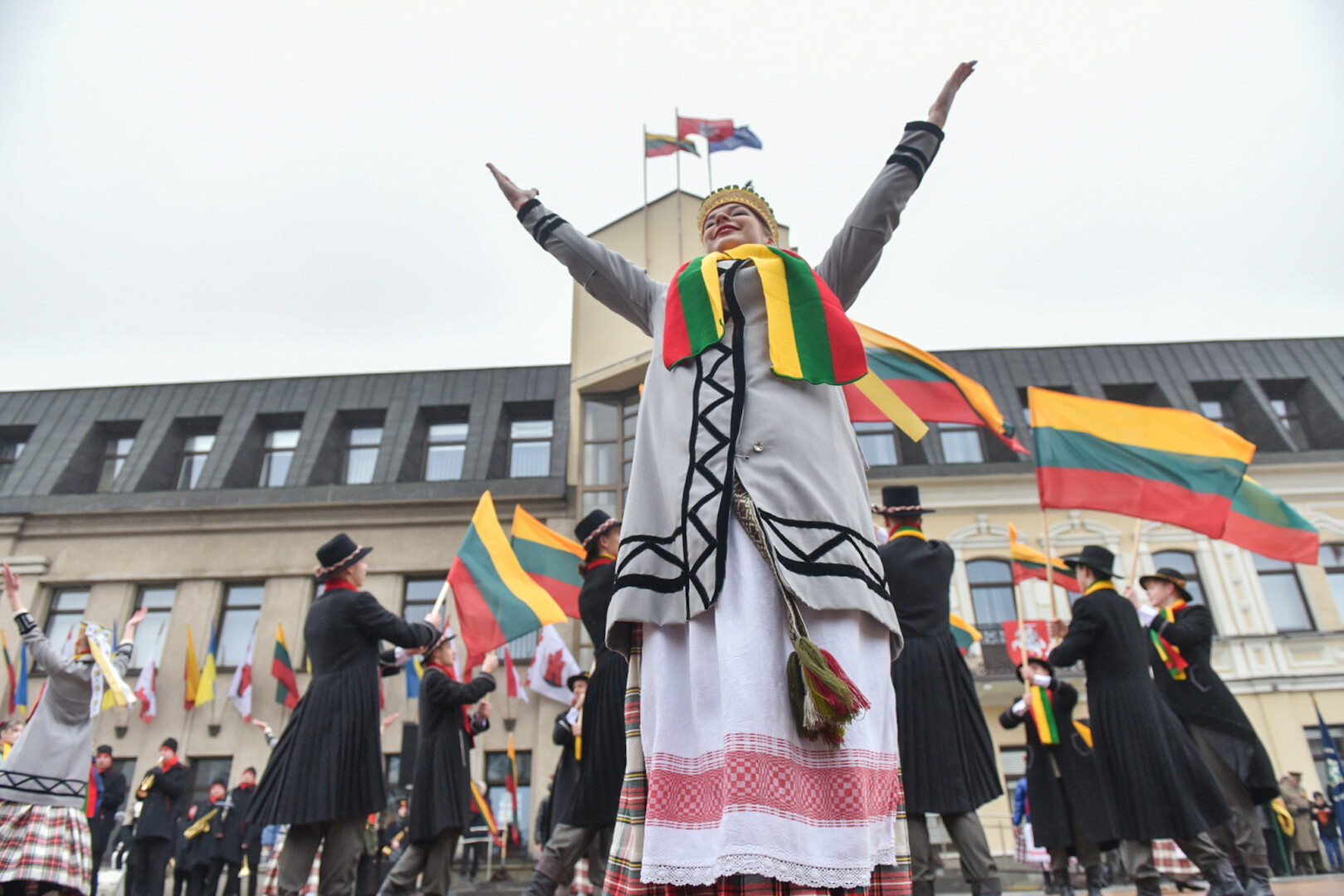 Trispalvėmis pasipuošusi Aukštaitijos sostinė švenčia Vasario 16-ąją – Lietuvos valstybės atkūrimo dieną.