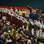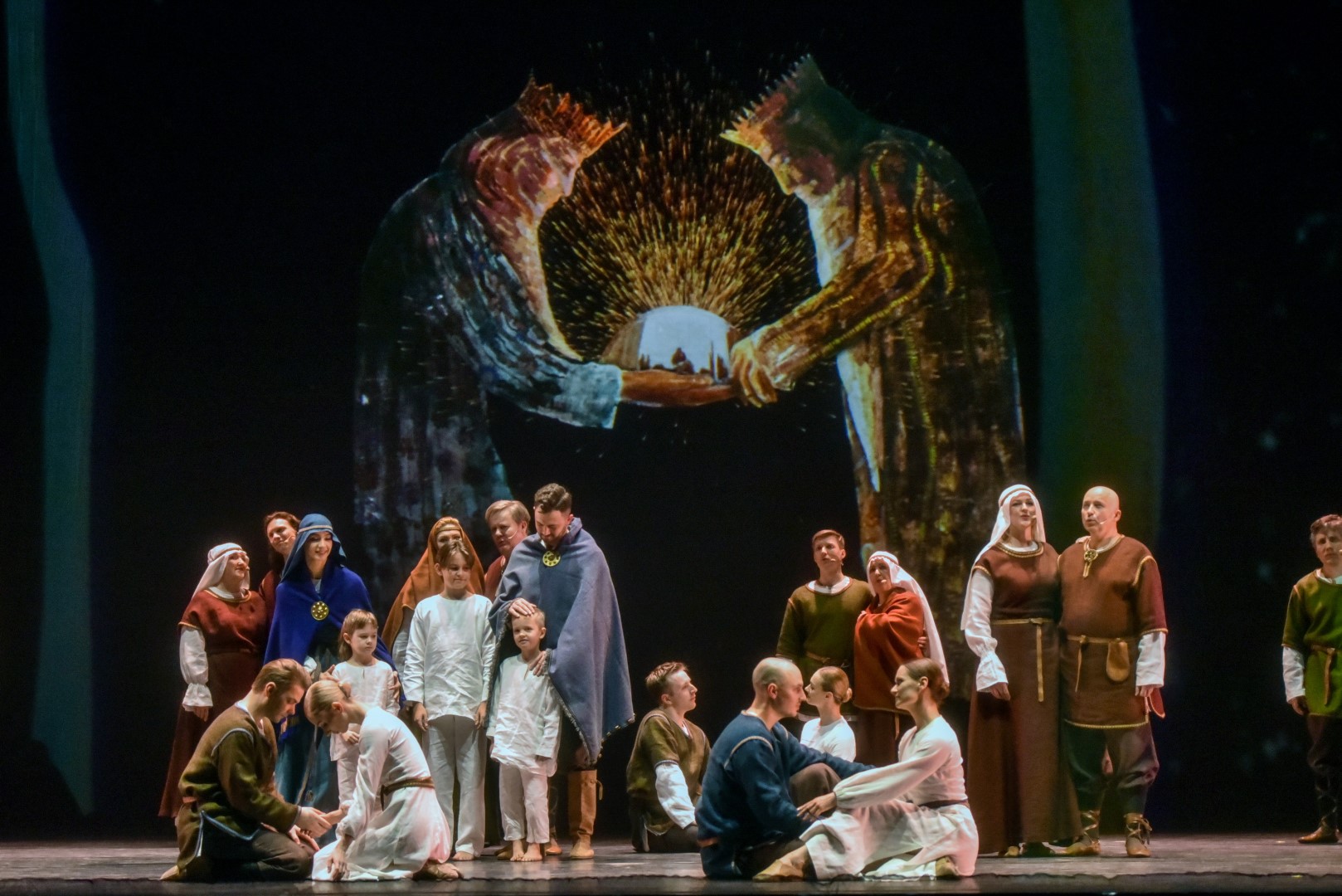 Keli tūkstančiai žiūrovų susirinko į nemokamą ansamblio „Lietuva“ misteriją „Dievai ir žmonės“.