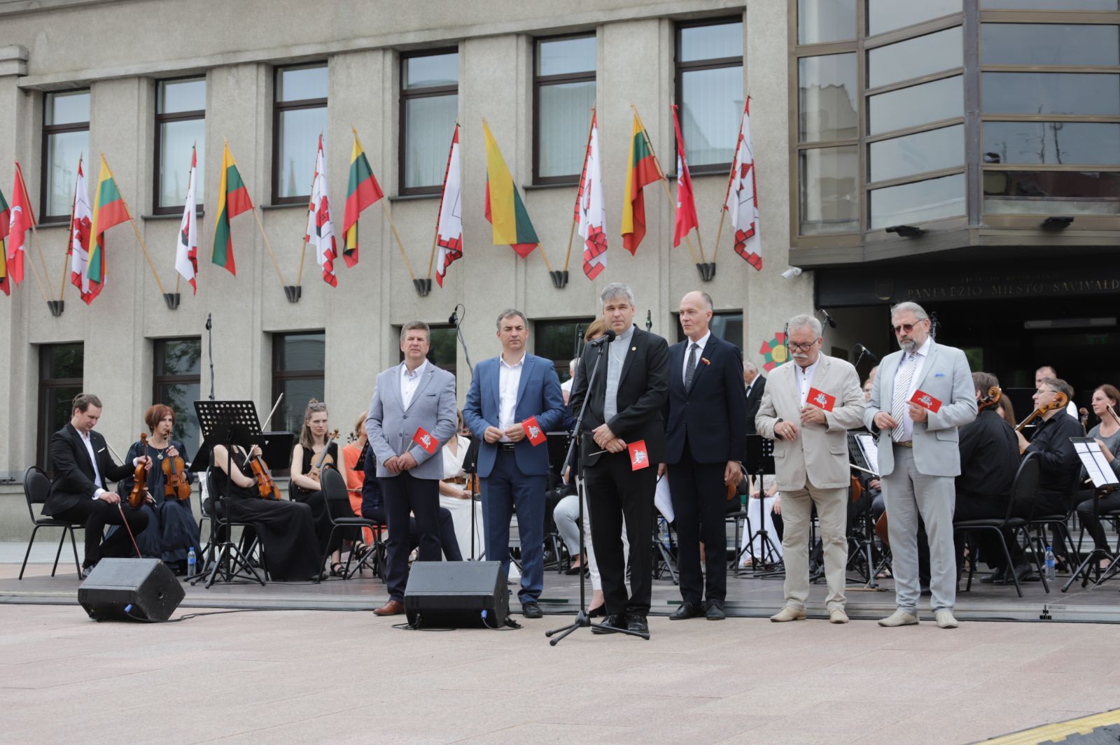 Maldomis už Lietuvą Kristaus Karaliaus katedroje ir iškilmingu vėliavos pakėlimu prie Savivaldybės, grojant Panevėžio muzikinio teatro simfoninis orkestrui, Panevėžys pradėjo švęsti Valstybės arba Karaliaus Mindaugo karūnavimo dieną.