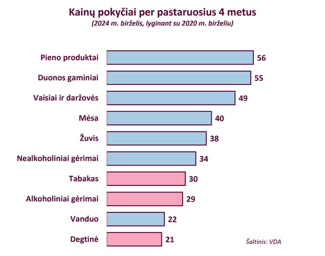 Pasak ekonomisto, per tą laiką Lietuvoje maisto produktai pabrango (48 proc.) labiau nei alkoholis (29 proc.) ir tabakas (30 proc.).