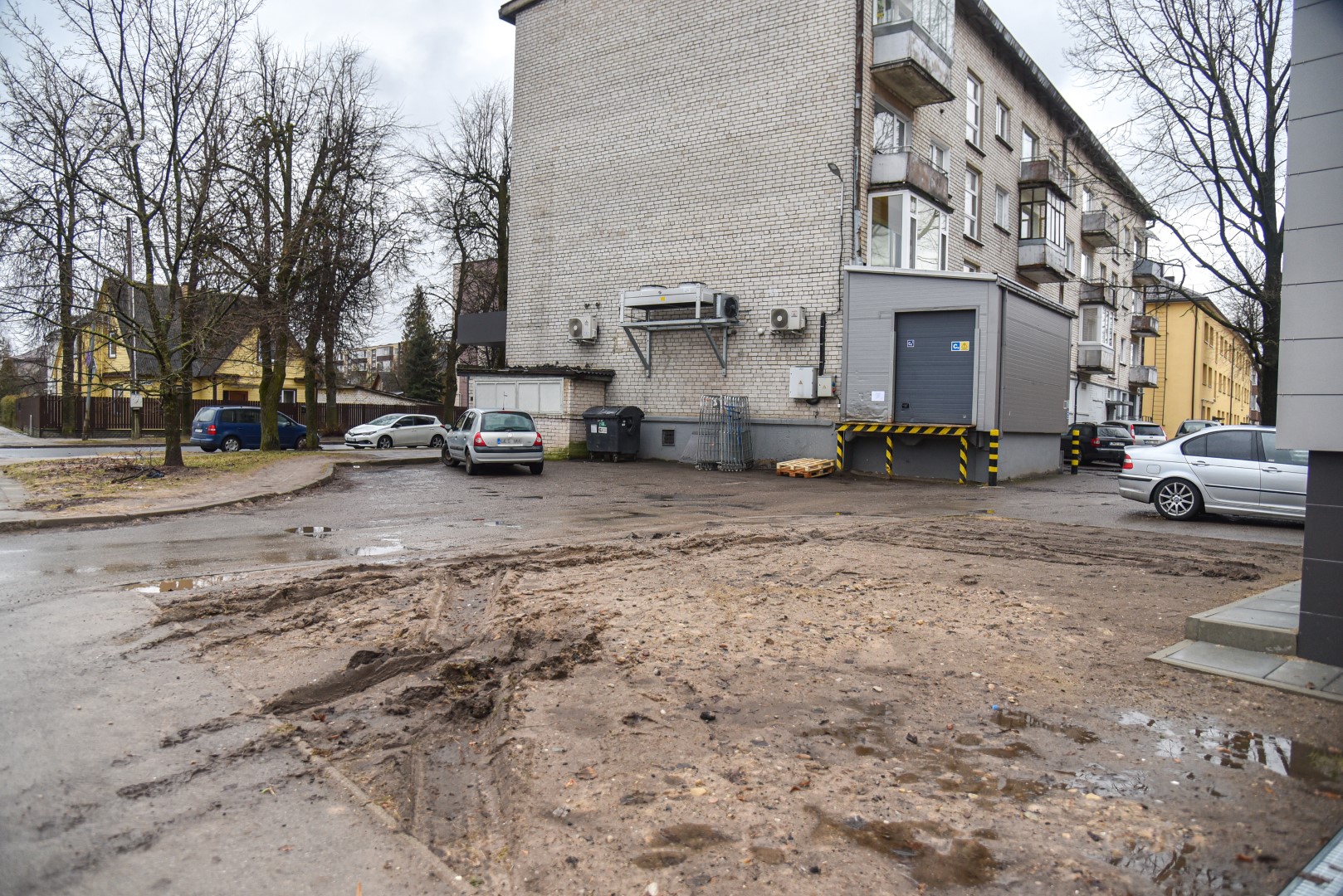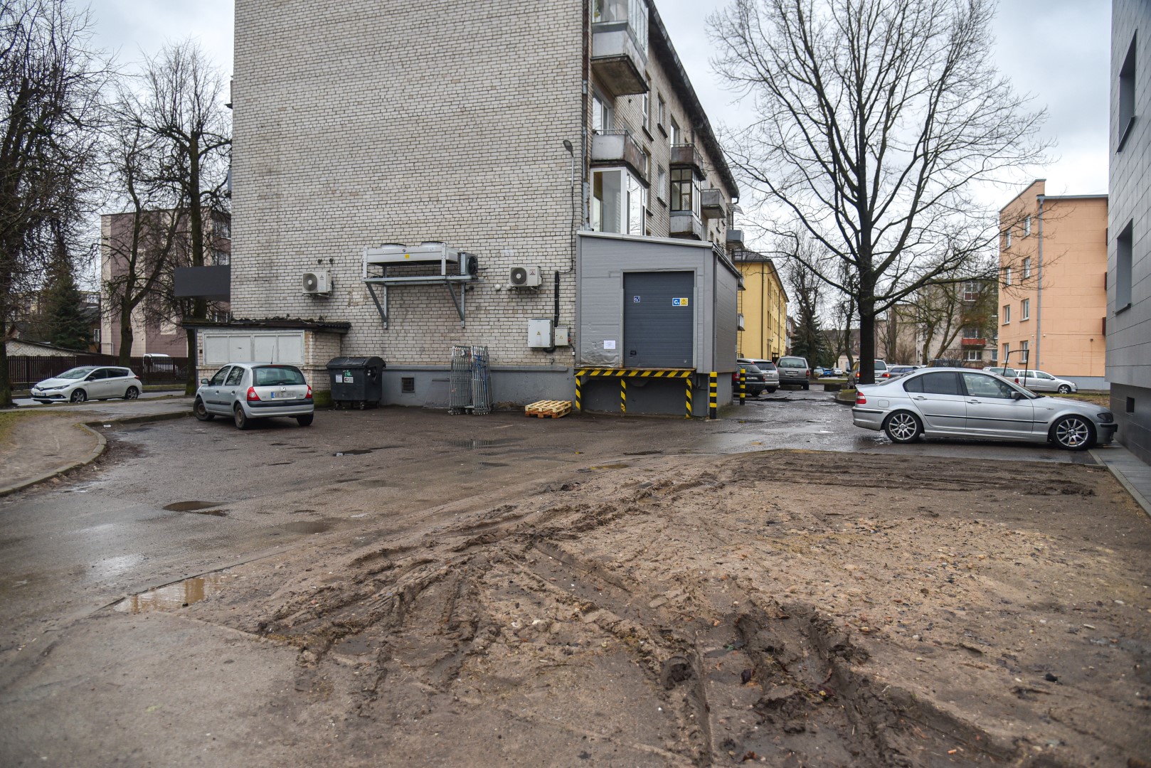 Dar viena bėda, anot V. Timochinos, kad prekybos centro darbuotojai savo automobilius rikiuoja daugiabučio aikštelėje. Sovietmečiu projektuoti daugiabučių kiemai nebeatitinka šiandienos poreikių. Jų 32 butų namui numatyta vos penkių vietų aikštelė. Nors nuo pernai lapkričio patys gyventojai už ją moka žemės nuomos mokestį, naudotis kaip sava vis tiek negali. Pasak V. Timochinos, parduotuvė atidaroma aštuntą ryto, tad vos tik daugiabučio gyventojai išvažiuoja į darbus, į atsilaisvinusią aikštelę savo automobilius pastato kaimynai. Pirmininkės teigimu, niekas dėl to nesipiktintų, jei būtų įmanoma gražiuoju sutarti, kad jie vietas atlaisvins 17 val. Tačiau aikštelė ištuštėja tik po 22 val., kai parduotuvė baigia darbą.