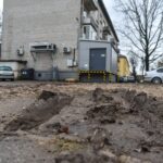 Kasdien prekes atvežančios sunkiasvorės mašinos, rėpliojančios per daugiabučio žaliąją zoną, net nespėjusią sudygti žaliąją veją pavertė melioracijos grioviais.