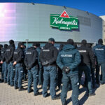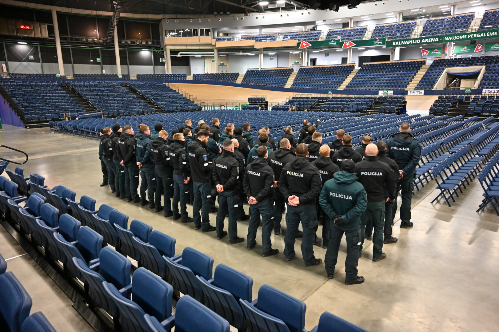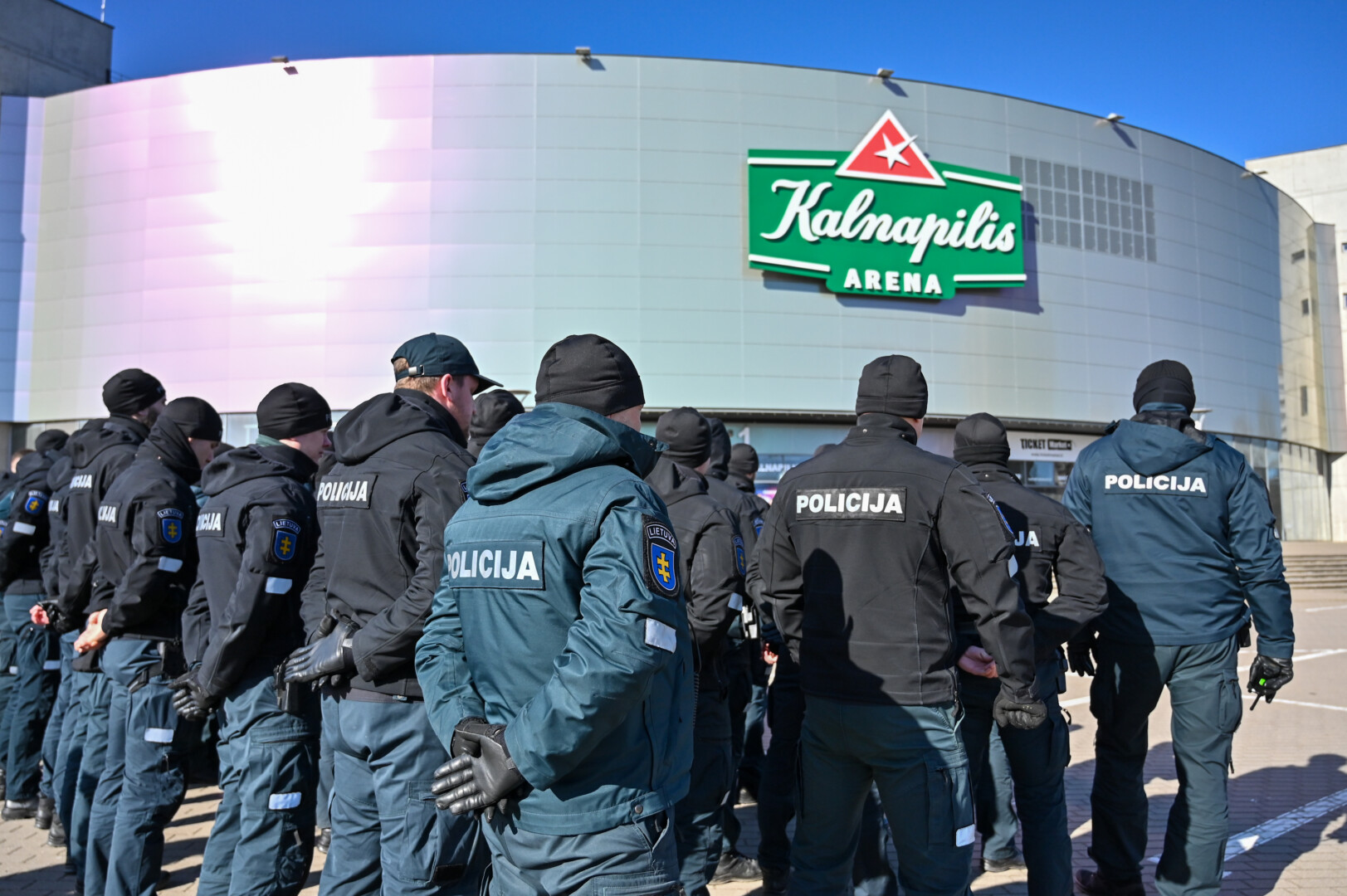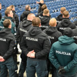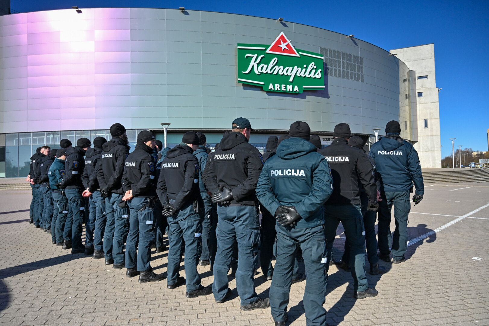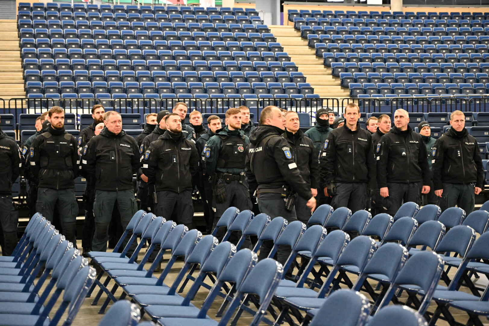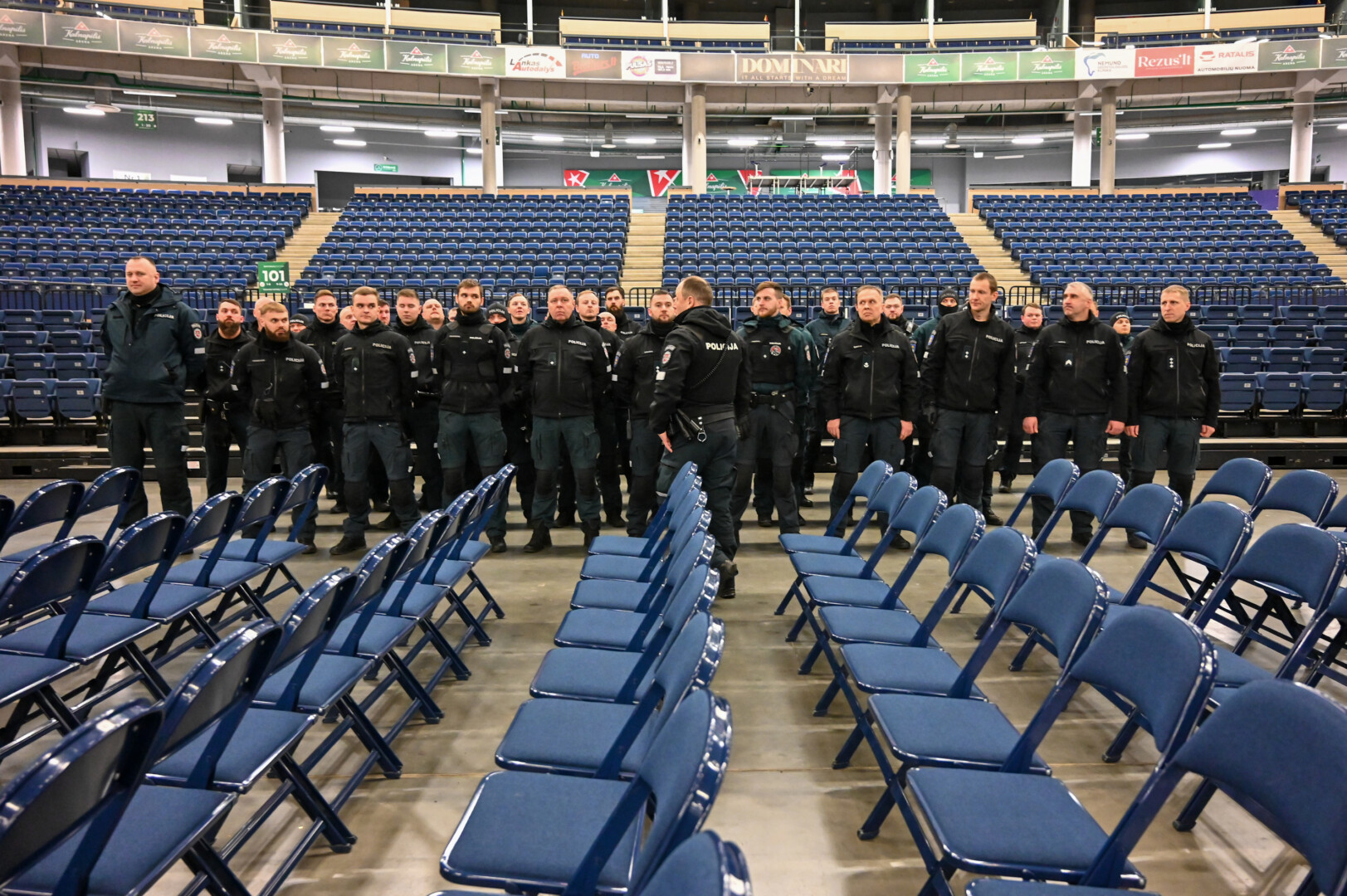 Gausios policijos pareigūnų pajėgos trečiadienio vidudienį suvažiavo į „Kalnapilio“ areną Panevėžyje treniruotis malšinti kilusių riaušių.