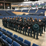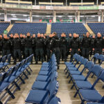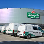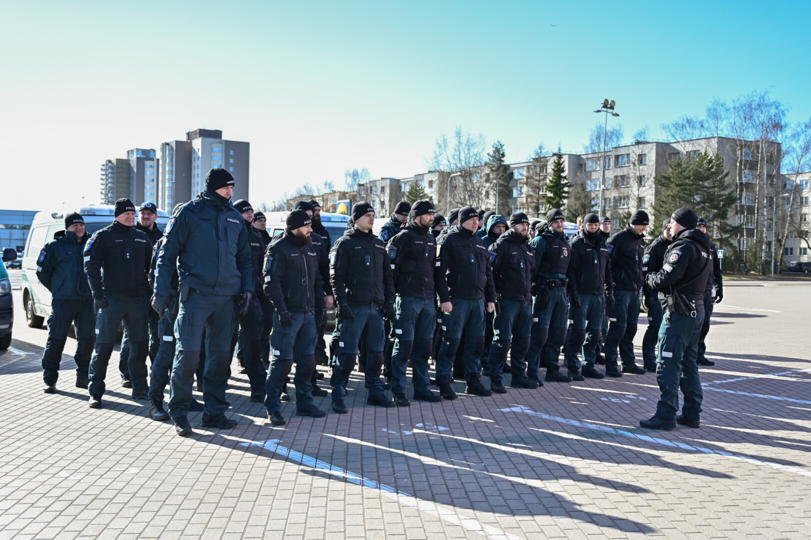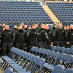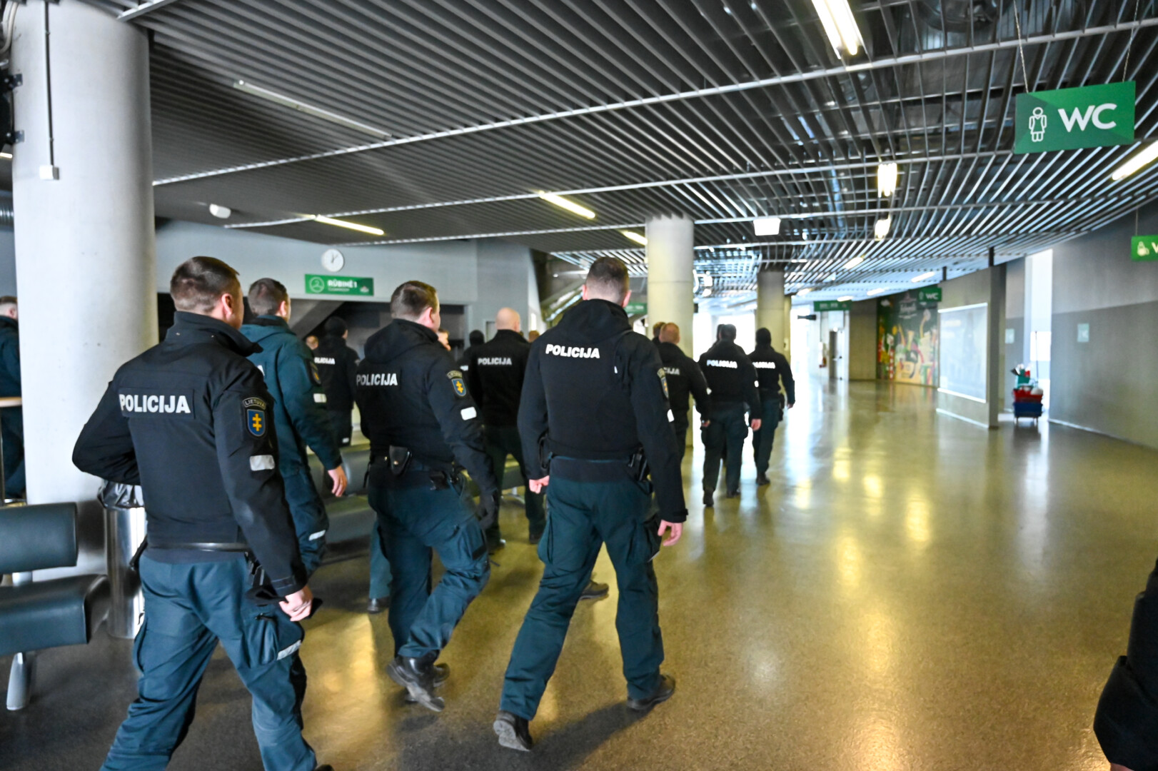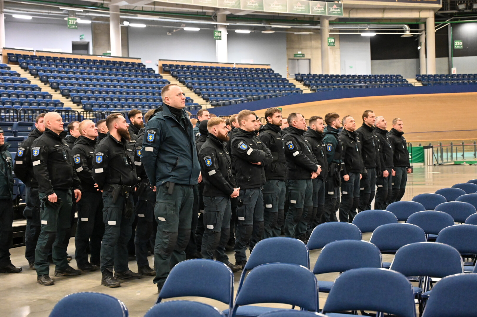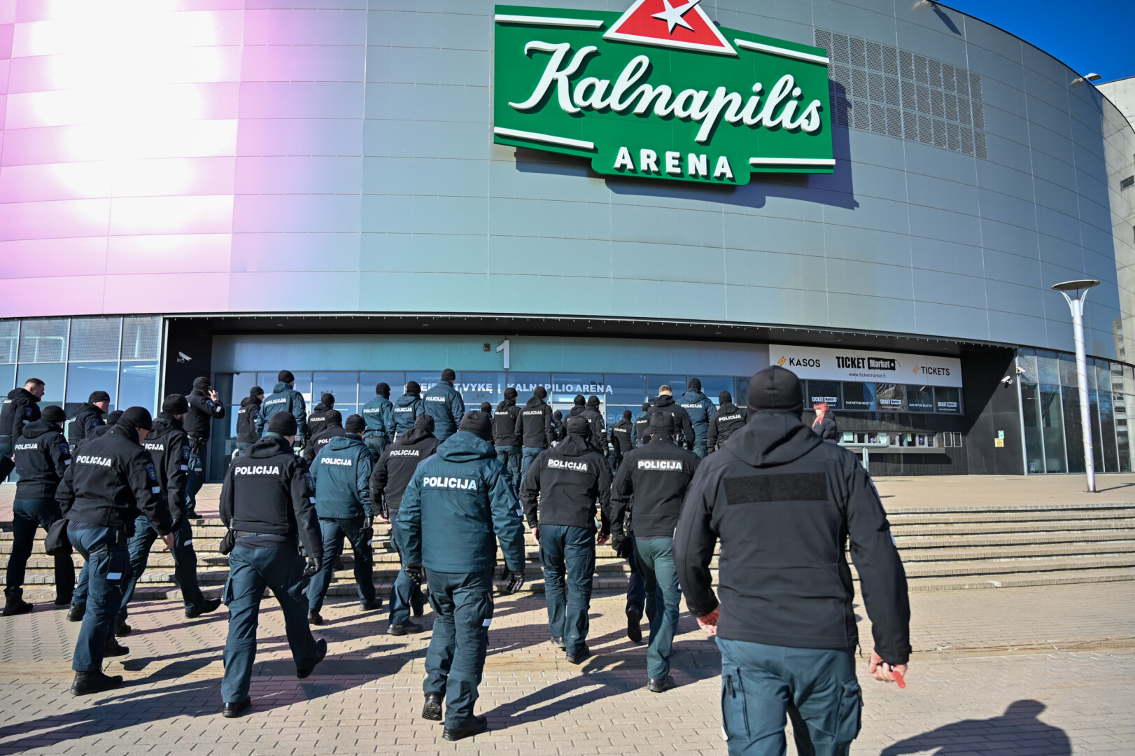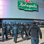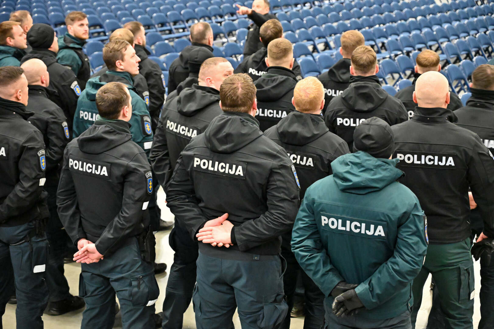 Gausios policijos pareigūnų pajėgos trečiadienio vidudienį suvažiavo į „Kalnapilio“ areną Panevėžyje treniruotis malšinti kilusių riaušių.