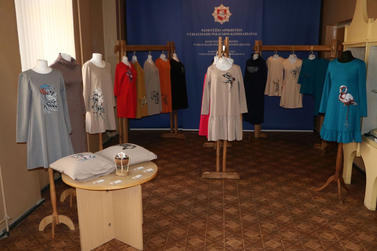 Šiandien Panevėžio apskrities vyriausiajame policijos komisariate vyko išskirtinių piešinių paroda. Tai ant drabužių atgyjantys paveikslai, sukurti policijos pareigūno Vytauto Kartano. Komisariate eksponuojamos suknelės, dekoratyvinės pagalvės, puoštos autoriaus darbais.