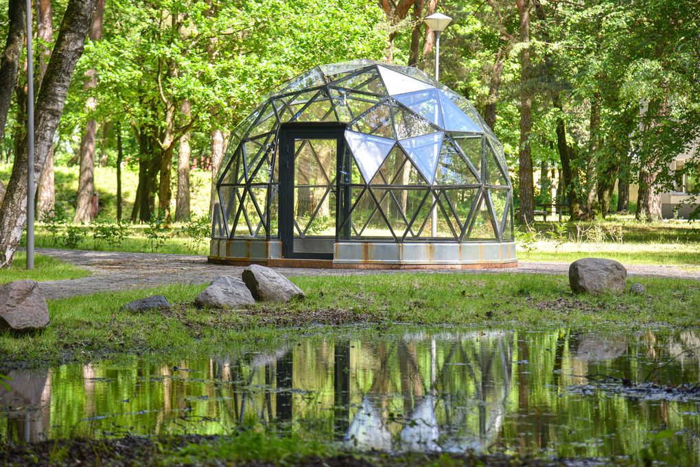 Trijų metrų aukščio, 20 kvadratinių metrų pločio, aliumininių konstrukcijų, laikančių grūdinto stiklo lakštus, kupolas vadinamas ateities statiniu.