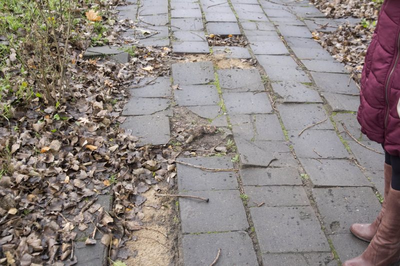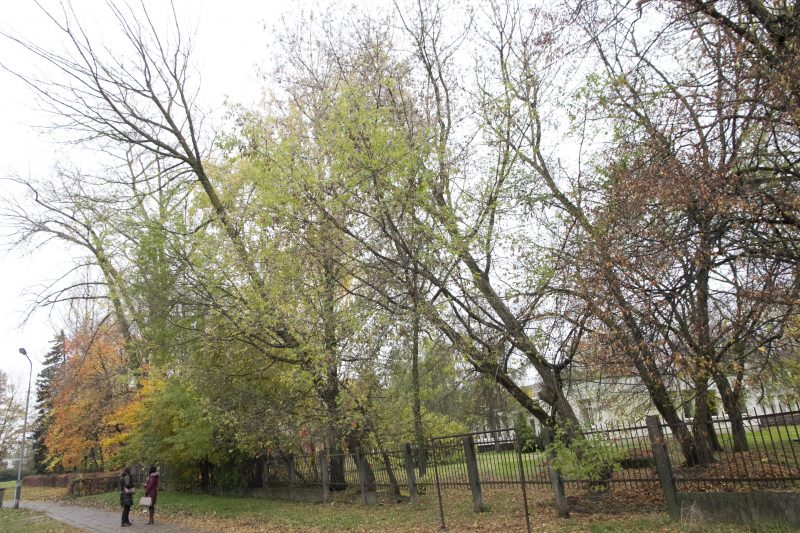 Nuo jų esą krenta ne tik lapai, bet ir šakos, šaknys iškiloja šaligatvius. Lankantis žurnalistams minėtoje teritorijoje grėbliais darbavosi vaikų namų darbuotojai.