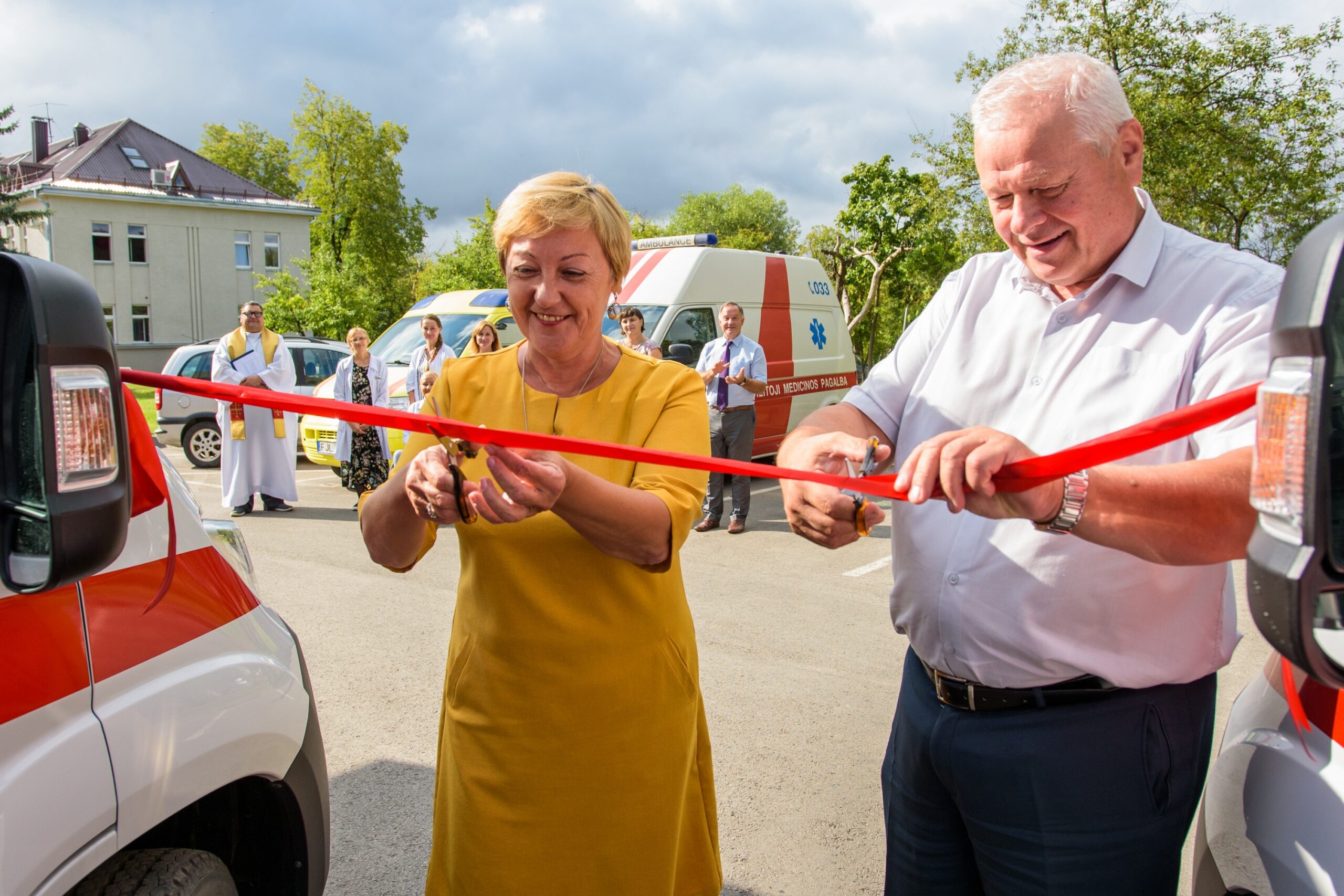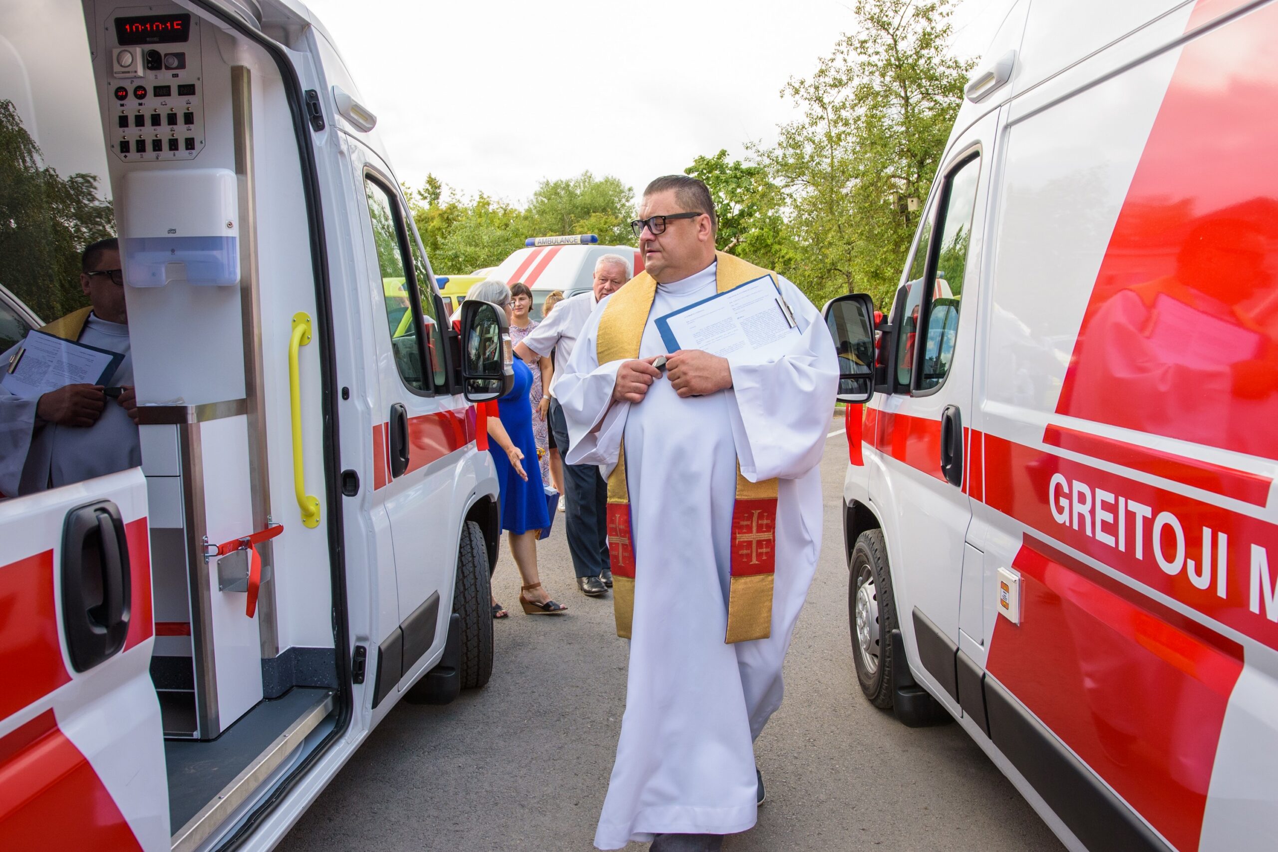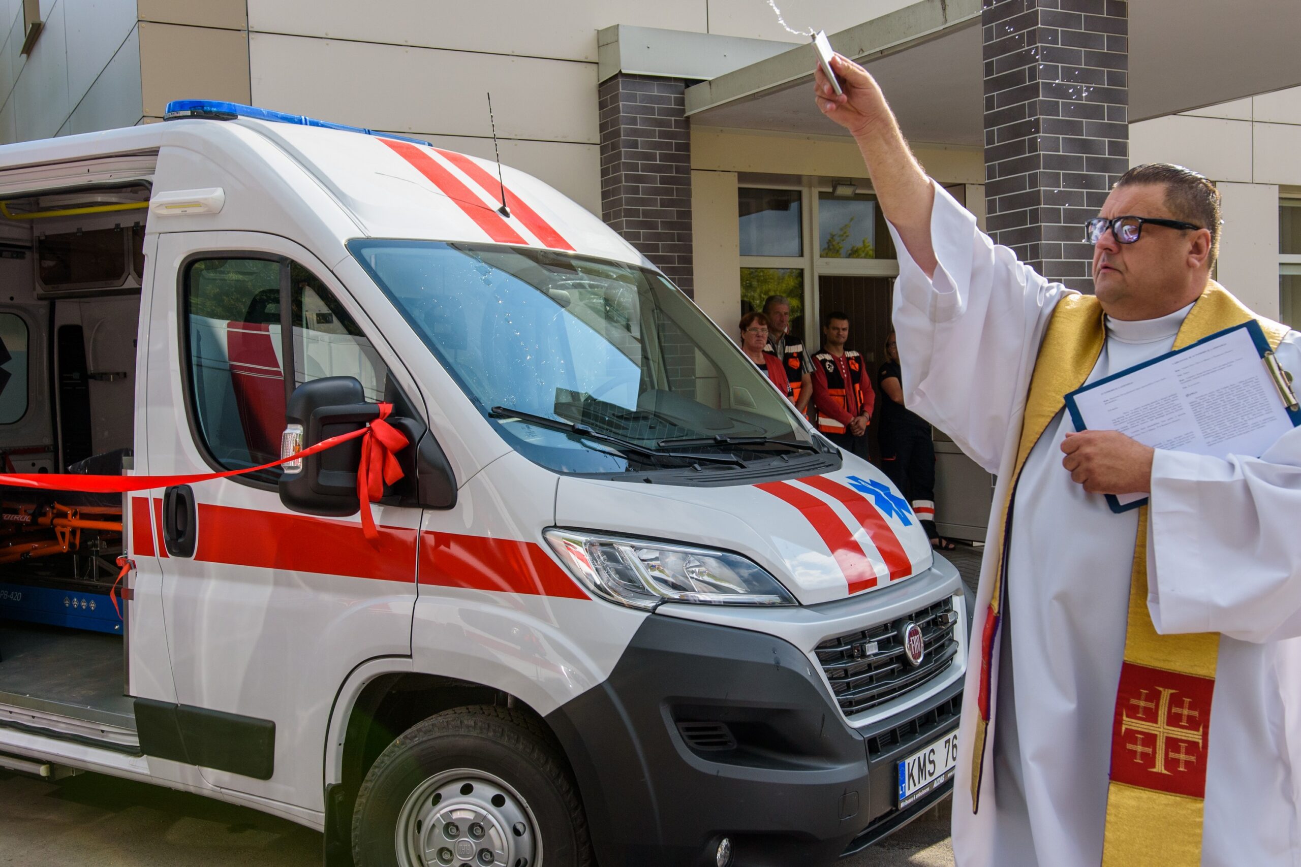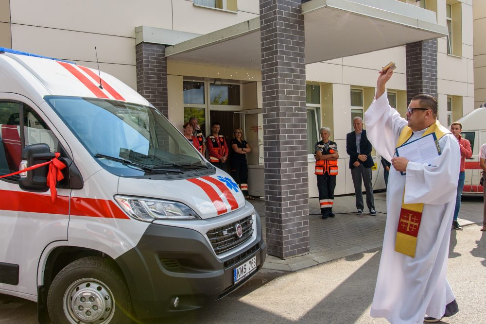 Kad greitosioms kelyje pavyktų išvengti kliūčių, naujuosius automobilius pašventino Naujamiesčio Šv. apaštalo Mato bažnyčios klebonas Raimondas Kazlauskas. Jis medikams linkėjo stiprybės bei dėkojo už jų darbą. Dvasininkas pasakojo pats prieš keletą metų patekęs į avariją ir sulaukęs pagalbos.