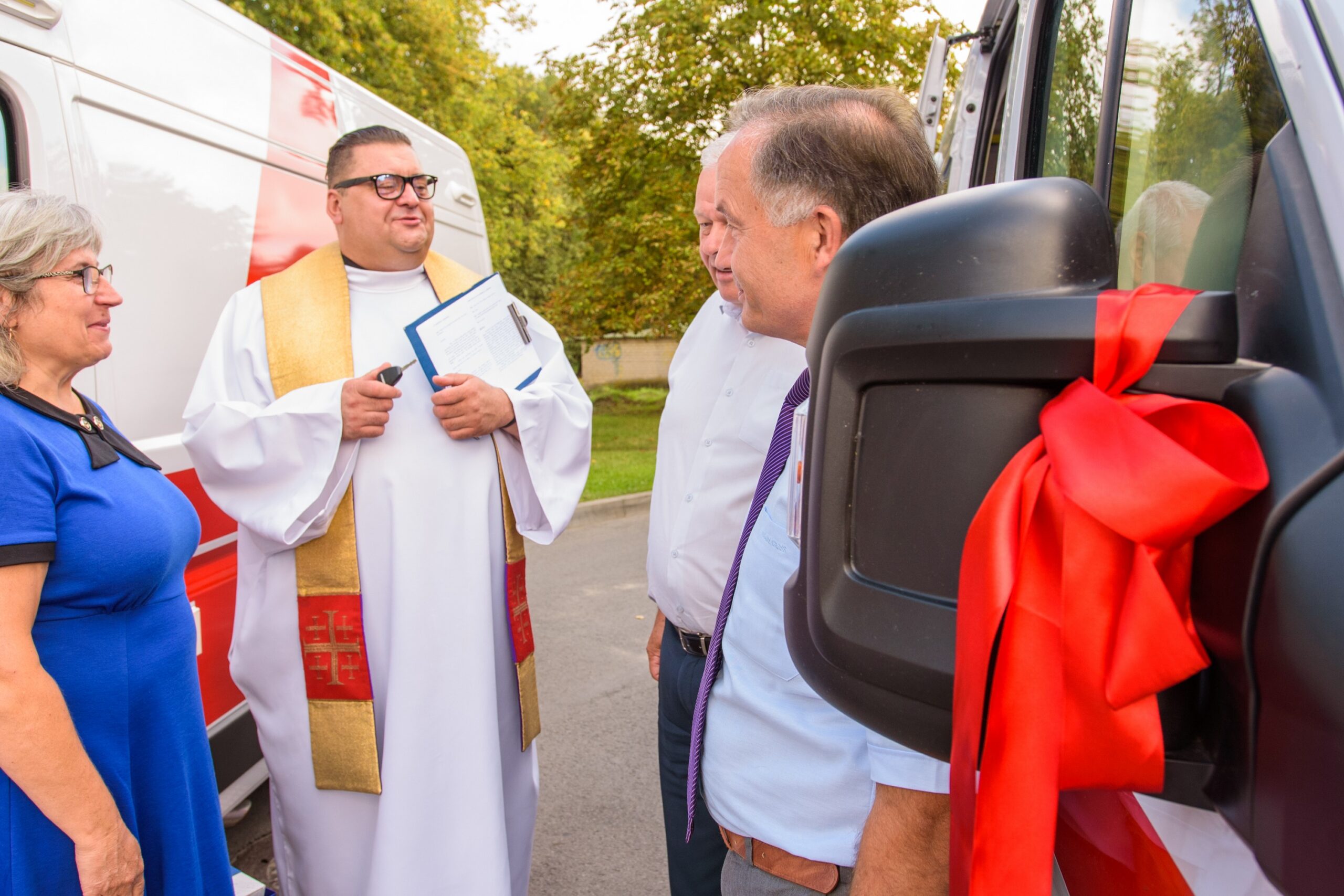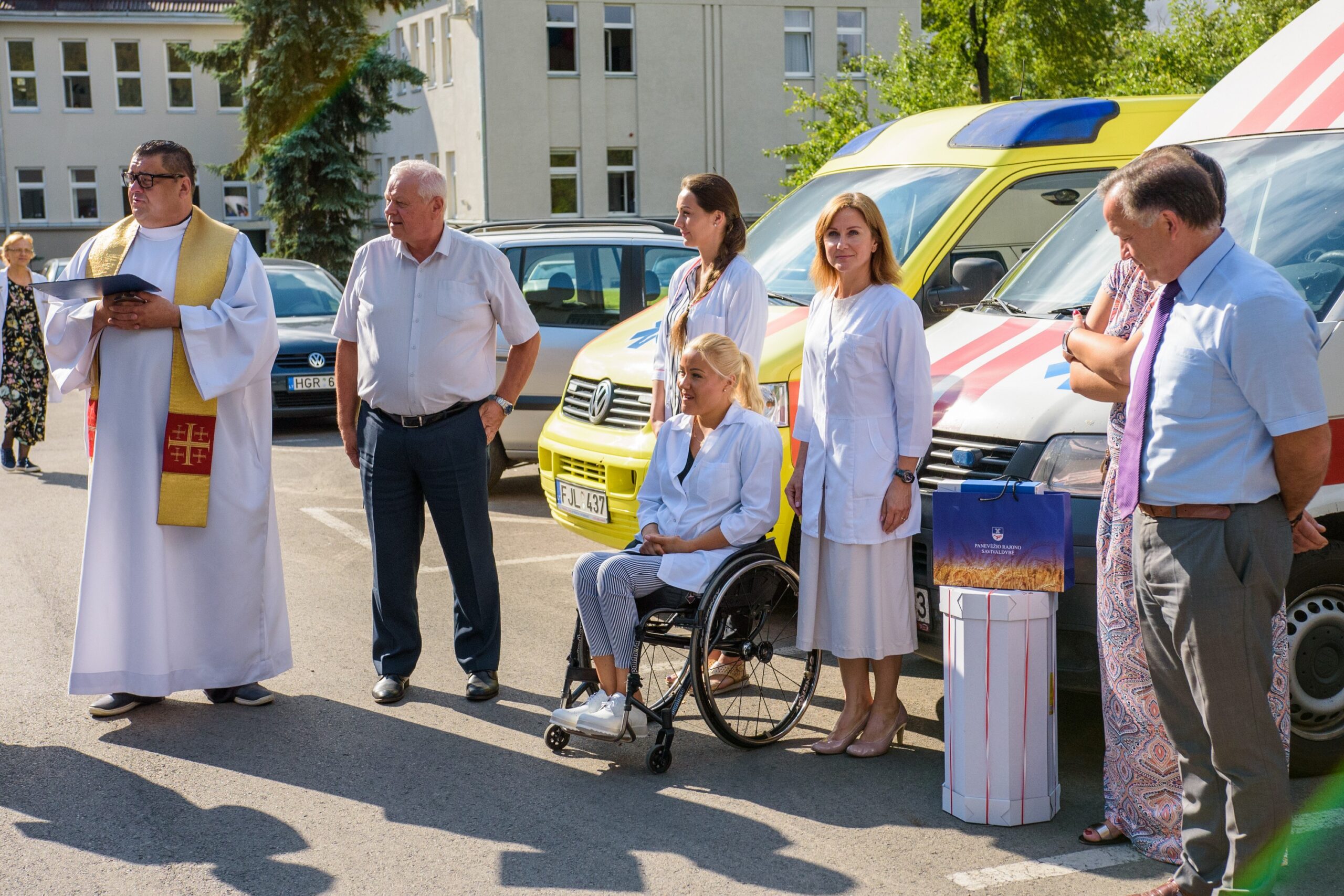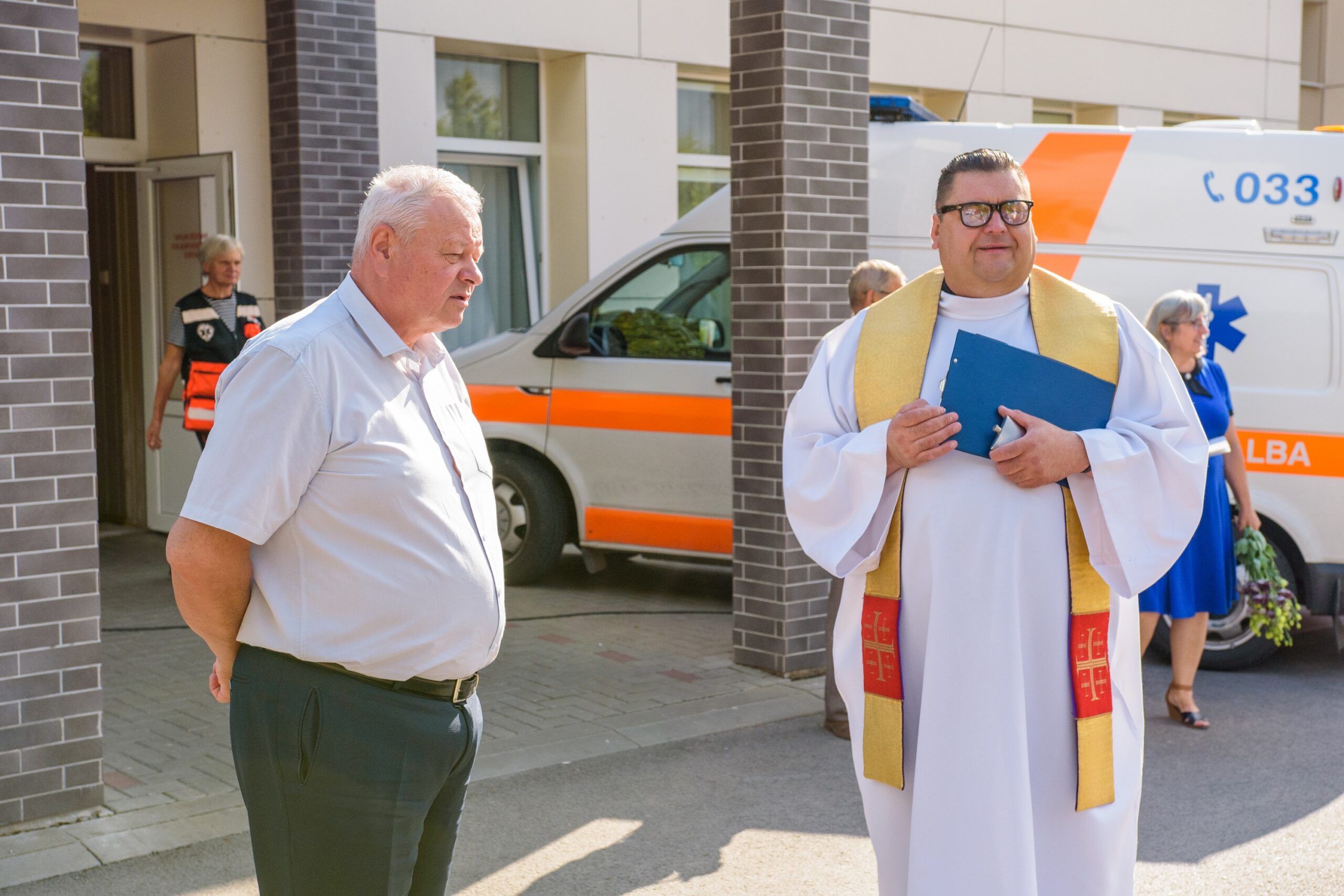 Kad greitosioms kelyje pavyktų išvengti kliūčių, naujuosius automobilius pašventino Naujamiesčio Šv. apaštalo Mato bažnyčios klebonas Raimondas Kazlauskas. Jis medikams linkėjo stiprybės bei dėkojo už jų darbą. Dvasininkas pasakojo pats prieš keletą metų patekęs į avariją ir sulaukęs pagalbos.