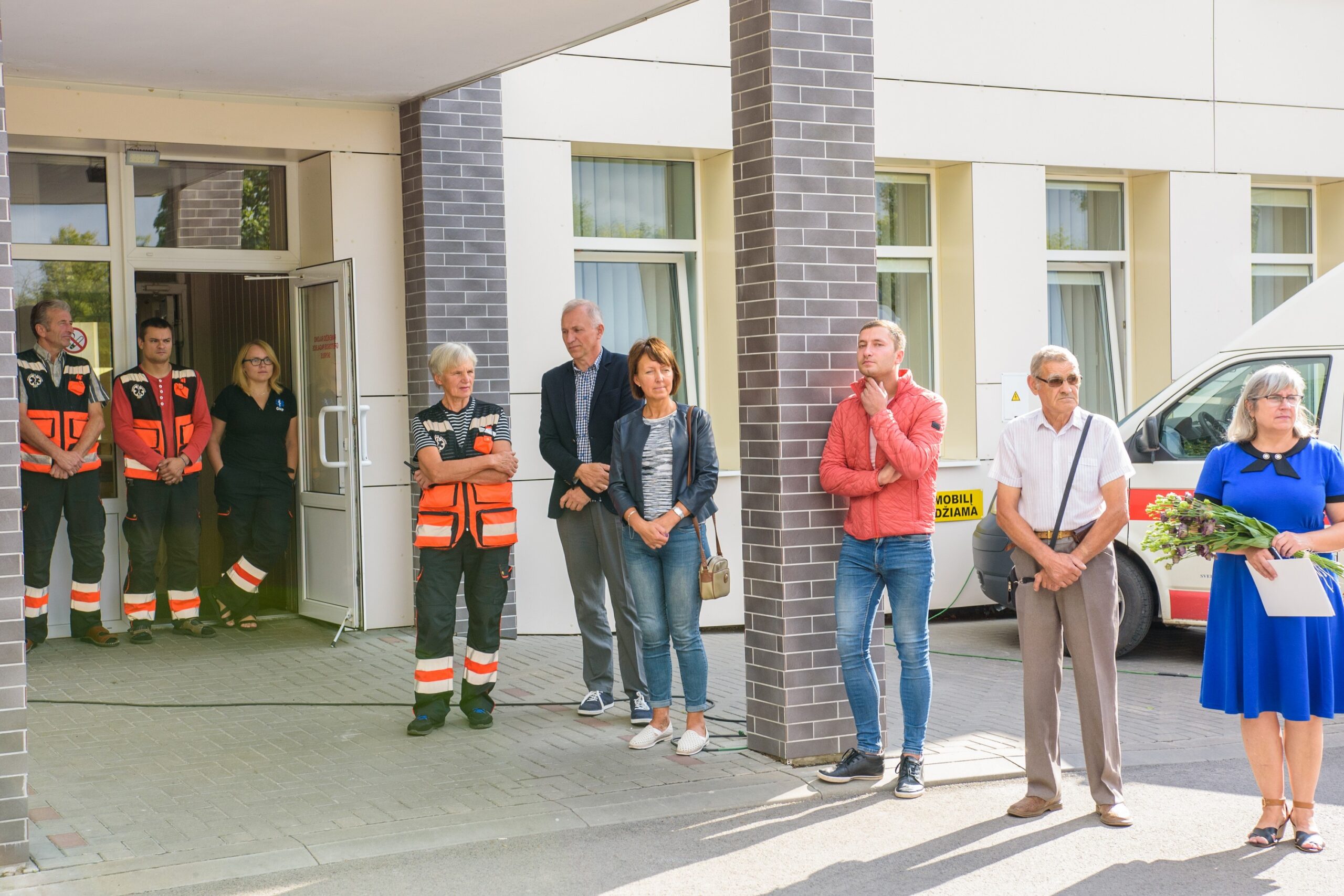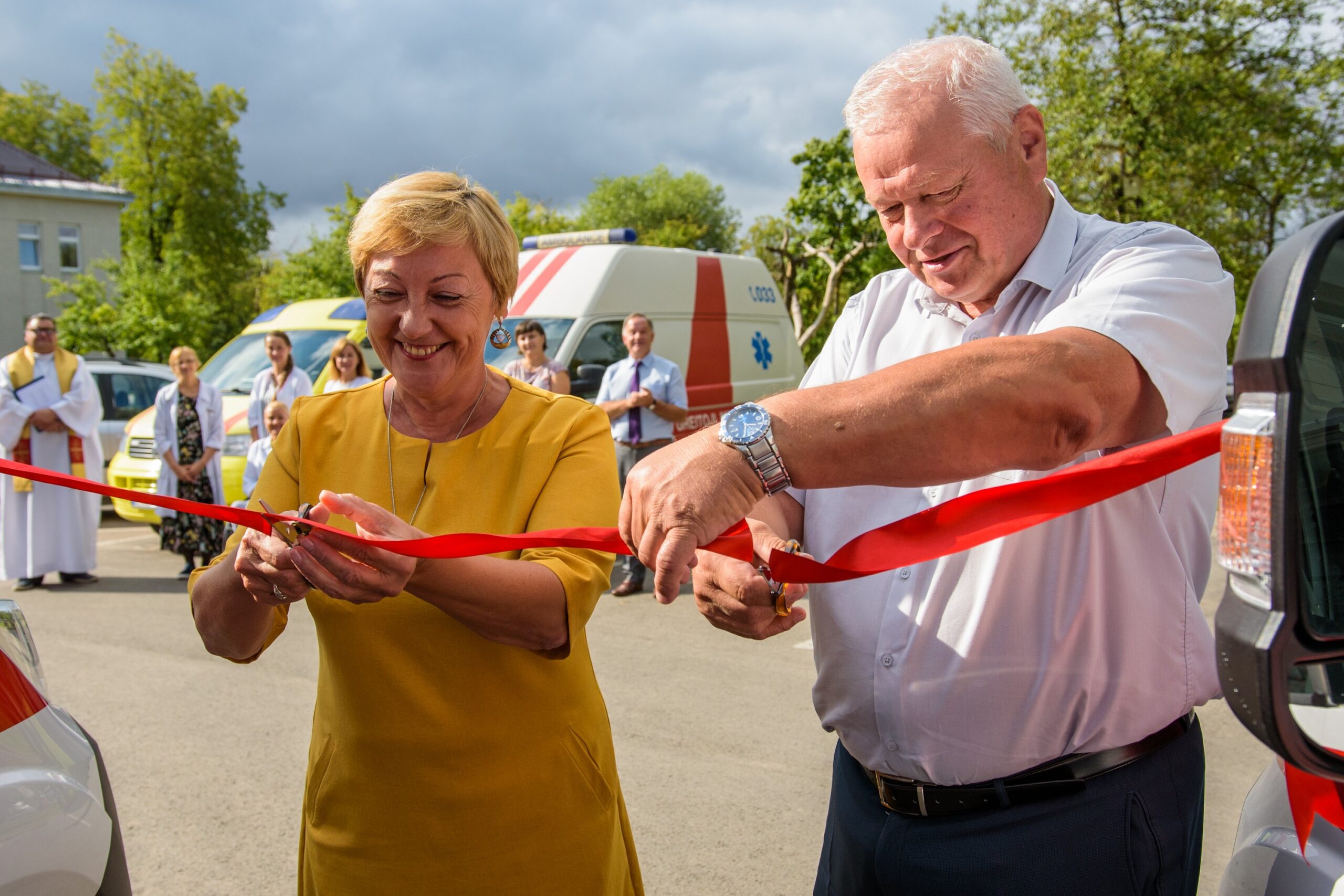 Naujųjų greitosios pagalbos automobilių šventinimas rajono poliklinikos kieme atsitiktinai palydėtas sirenų gausmo. Prieš pat šventinimo ceremonijos pradžią gautas iškvietimas, tad dalis medikų išskubėjo pas ligonį.