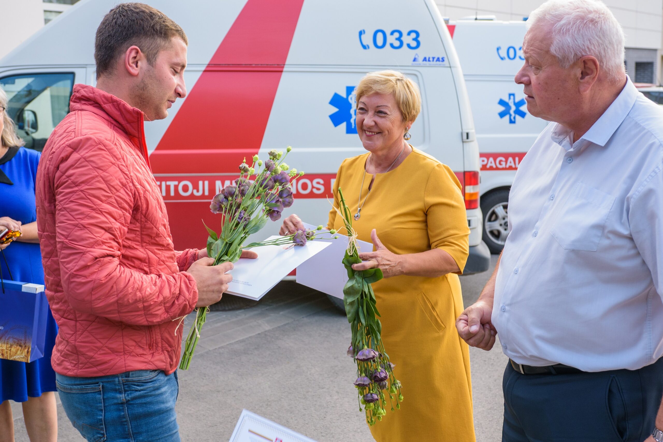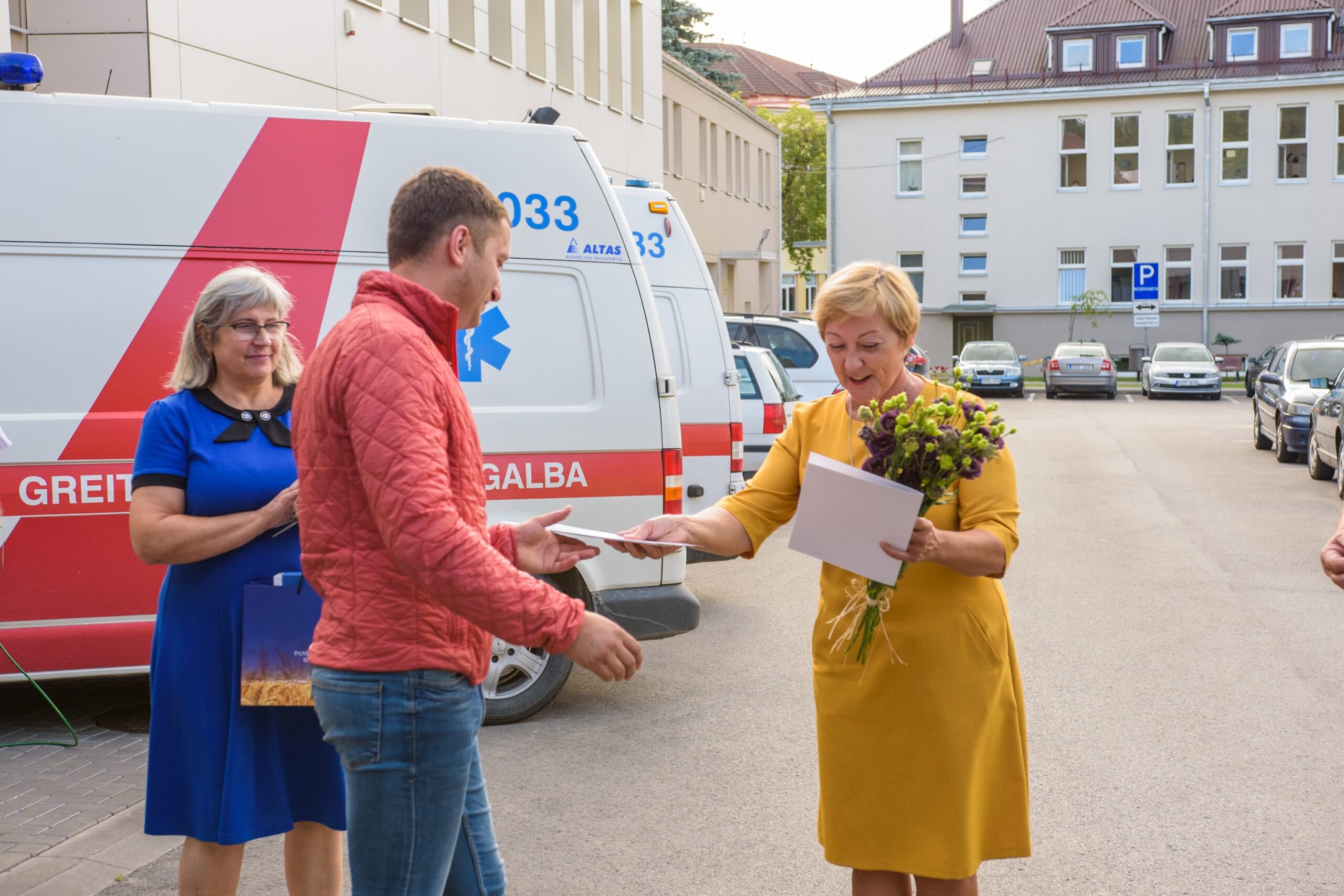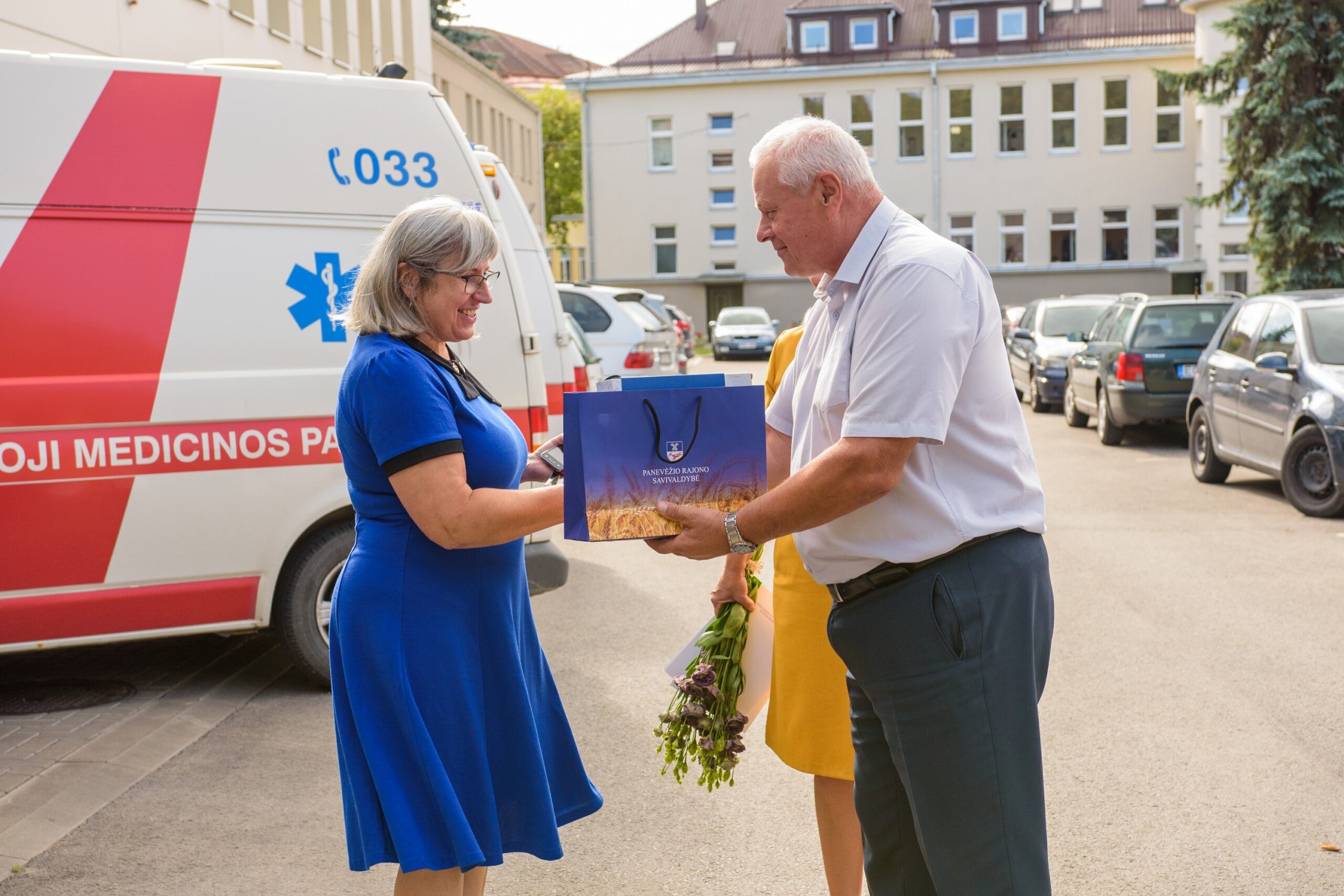 Poliklinikos direktorė pripažino gaunanti daug padėkų už rajono greitosios medikų darbą. Pašventinus naujuosius automobilius, šį kartą ji įteikė sveikatos apsaugos ministro Aurelijaus Verygos padėkas dviem darbuotojams – skubios pagalbos specialistei Aistei Abraškevičiūtei ir paramedikui Justinui Stašiui – už darbą šiųmetėje Dainų šventėje „Vardan tos…“